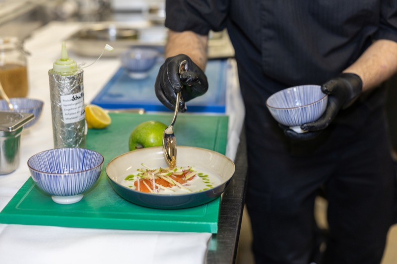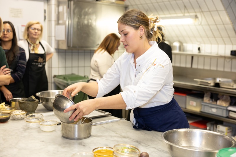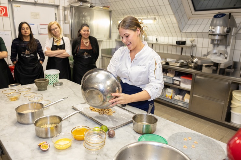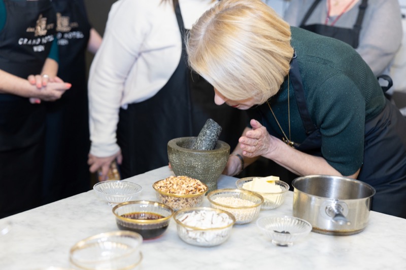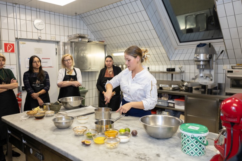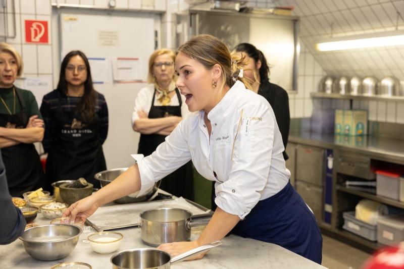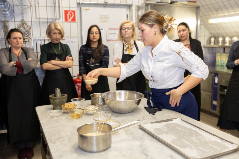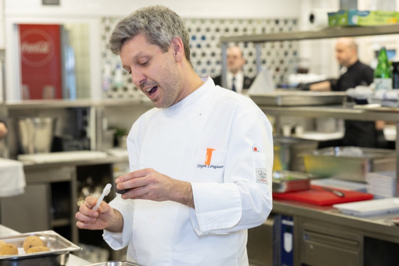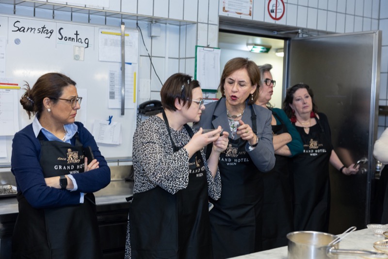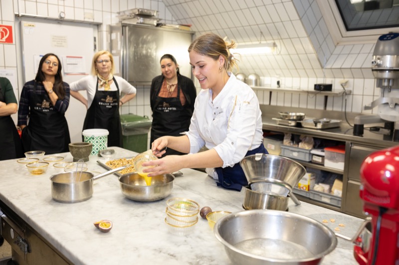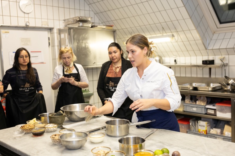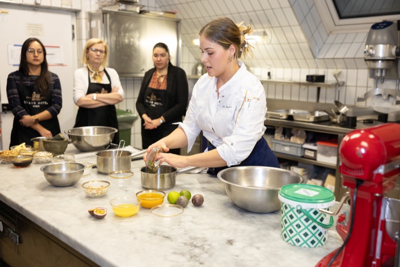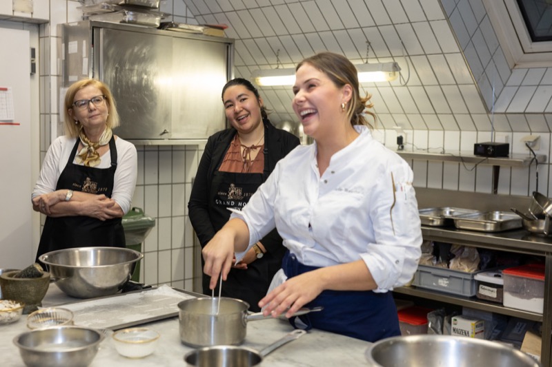 In einem kleinen und intimen Kreis konnten die Damen hinter die Kulissen schauen und wurden von dem preisgekrönten Chefkoch des Grand Hotels, Jürgen Lengauer, in die Geheimnisse eines Drei-Gänge-Valentinstagsmenüs eingeweiht, welches gemeinsam zubereitet und dann auch gemeinsam genossen wurde.