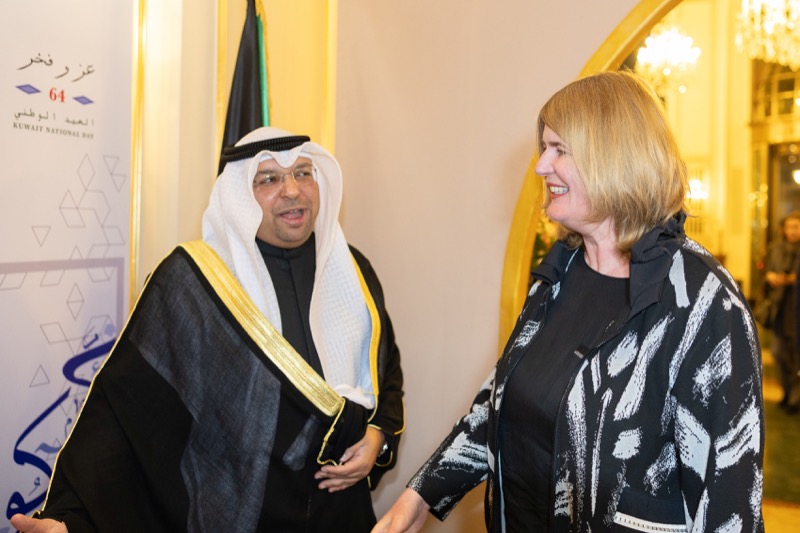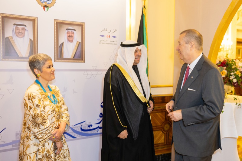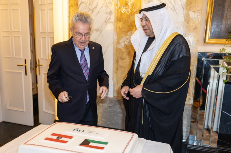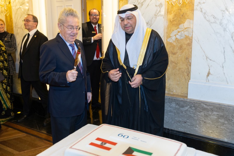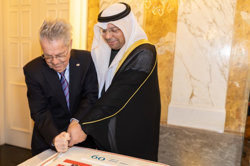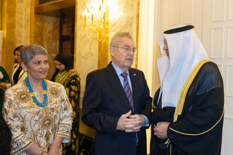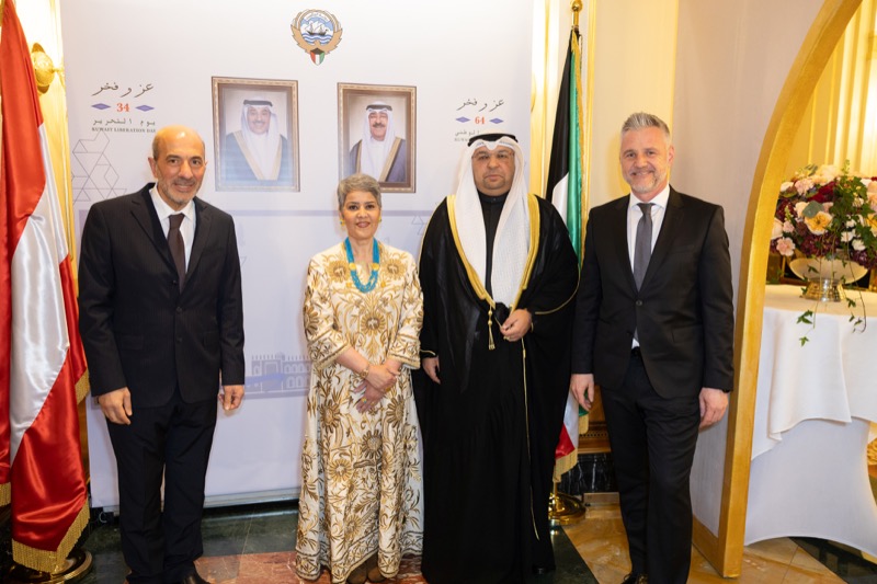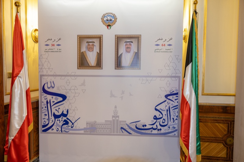 Anlässlich des 64. Jahrestags der Unabhängigkeit und des 34. Jahrestags der Befreiung des Staates Kuwait sowie 60 Jahre Aufnahme der diplomatischen Beziehungen zwischen Kuwait und Österreich luden der Botschafter des Staates Kuwait in Österreich und Ständiger Vertreter bei den Vereinten Nationen und Internationalen Organisationen, S.E. Talal Alfassam, und Frau Halah Alshayeji zu einem Empfang in das Hotel Imperial.