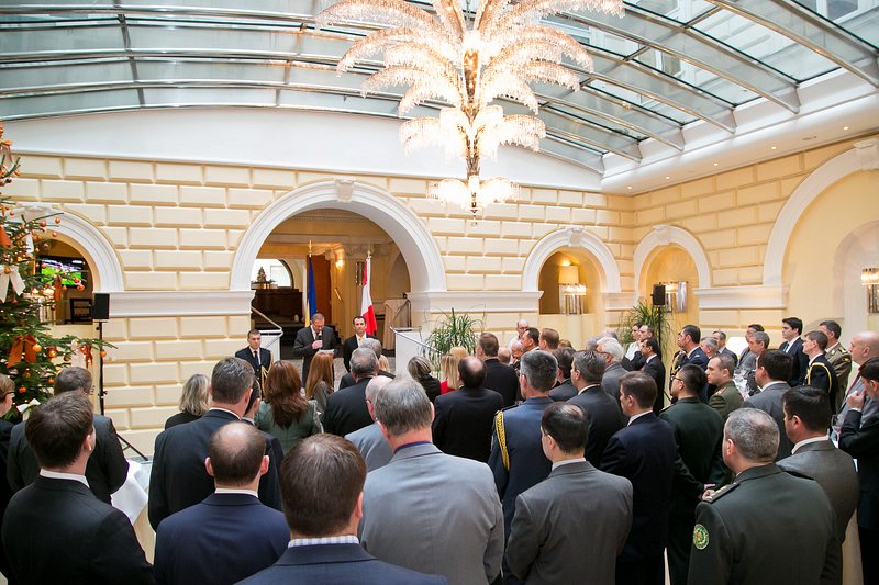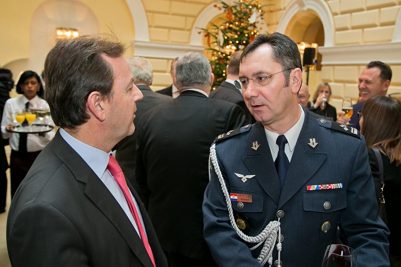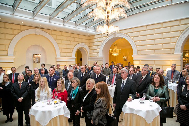 Anlässlich des Tages der Streitkräfte luden S.E. Tomislav Leko, Botschafter von Bosnien-Herzegowina in Österreich, S.E. Sanjin Halimovic, ständiger Vertreter bei der OSCE, UN und anderer internationaler Organisationen sowie Col. Slobodan Tanasilovic, militärischer Berater bei der OSCE, UN und anderer int. Organisationen sowie Militärattaché von Bosnien-Herzegowina in Österreich, zu einem Empfang in das Hotel De France.