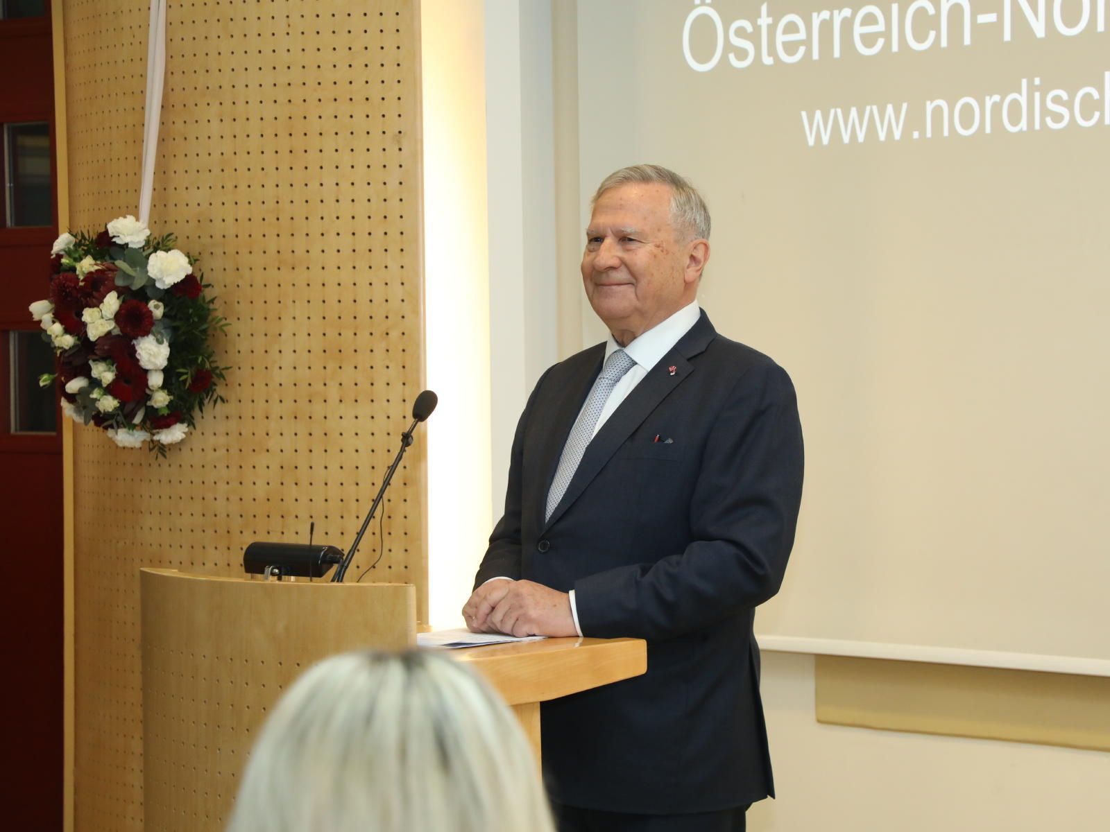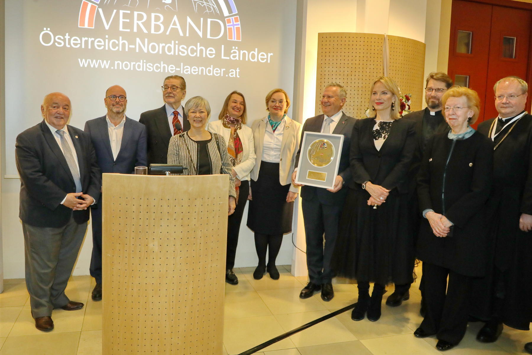 Der Präsident der Österreichisch-Nordischen Gesellschaft, Botschafter a.D. Dr. Dr.h.c. Michael Schwarzinger, begrüßte die Gäste und betonte in seiner Eröffnungsrede: „Die Österreichisch-Nordische Gesellschaft ist die Dachorganisation der bilateralen Freundschaftsgesellschaften mit den nordischen und baltischen Ländern. Zum ersten Mal verleihen wir diesen Preis an eine herausragende Persönlichkeit, die sich um die Förderung dieser Freundschaft verdient gemacht hat“.