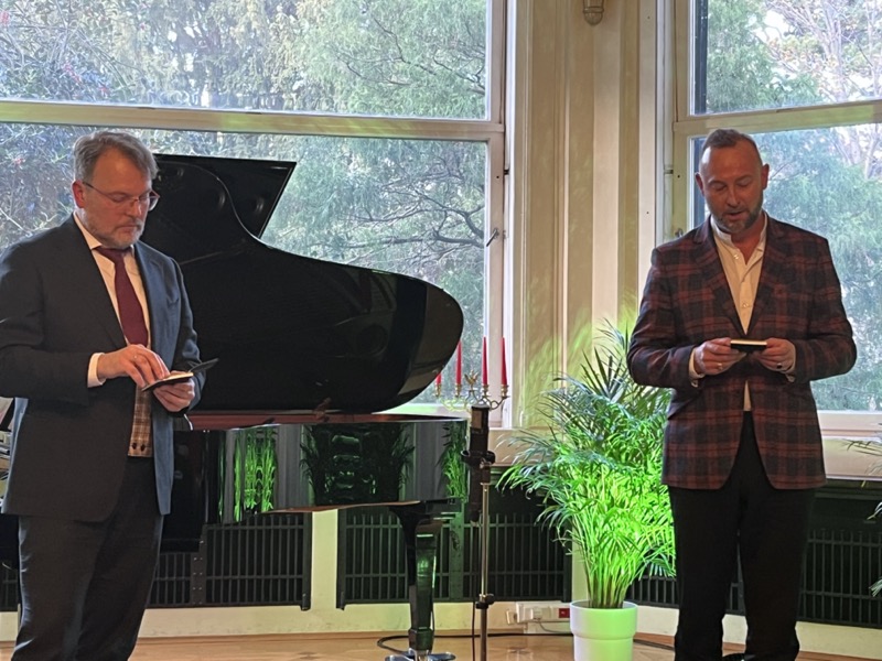 Zenon Kosiniak-Kamysz, Missionsleiter der Republik Polen in der Republik Österreich, Tomasz Konieczny, Initiator und Künstlerischer Leiter des Baltic Opera Festivals, Rafał Kokot, Direktor des Baltic Opera Festivals und Romuald Wicza-Pokojski, Direktor der Baltischen Oper in Danzig, luden zur Präsentation und Ankündigung des Baltic Opera Festivals 2025 in die Botschaft der Republik Polen ein.