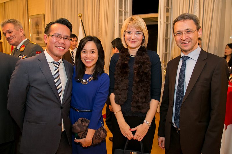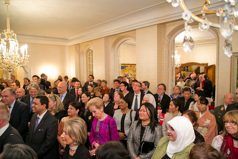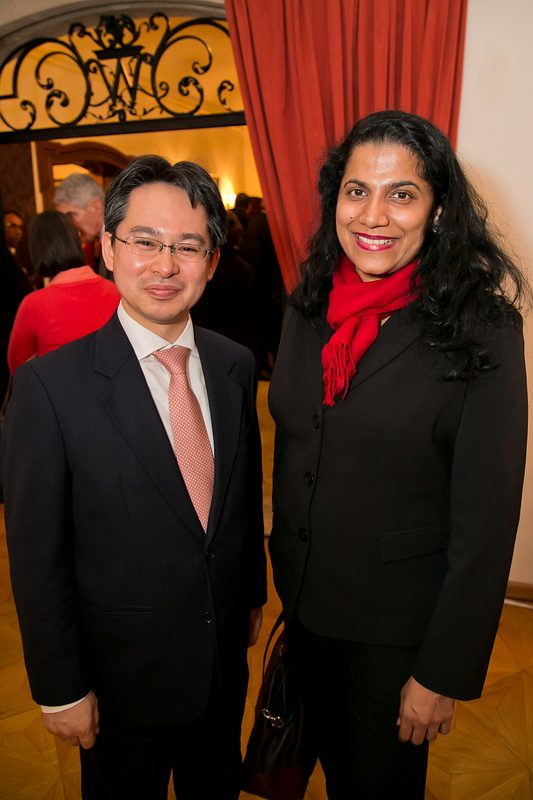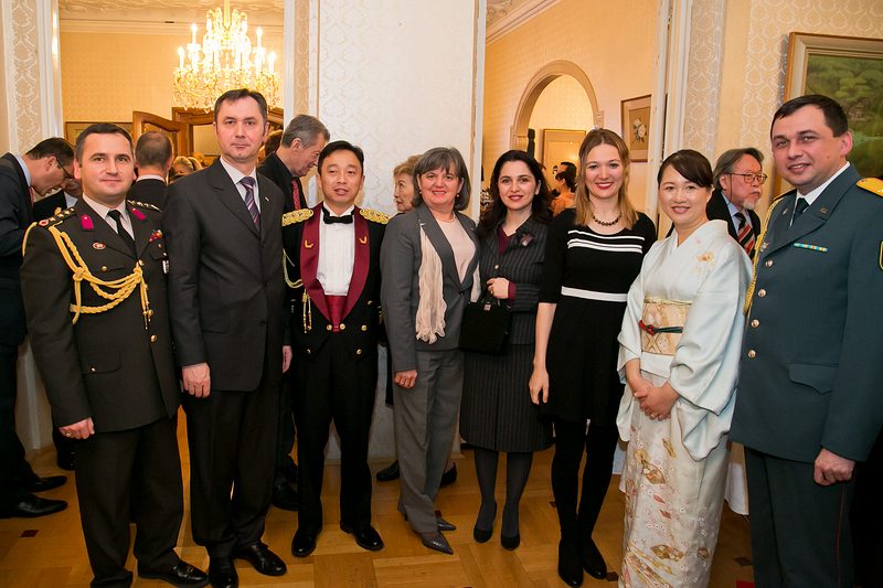 Anlässlich des Geburtstages Seiner Majestät des Kaisers luden der Botschafter von Japan, S.E. Makoto Taketoshi, und Frau Hitomi Teketoshi sowie der ständige Vertreter von Japan bei den internationalen Organisationen, S.E. Botschafter Mitsuru Kitano, und Frau Yoshie Kitano zu einem Empfang in die Residenz des Botschafters.