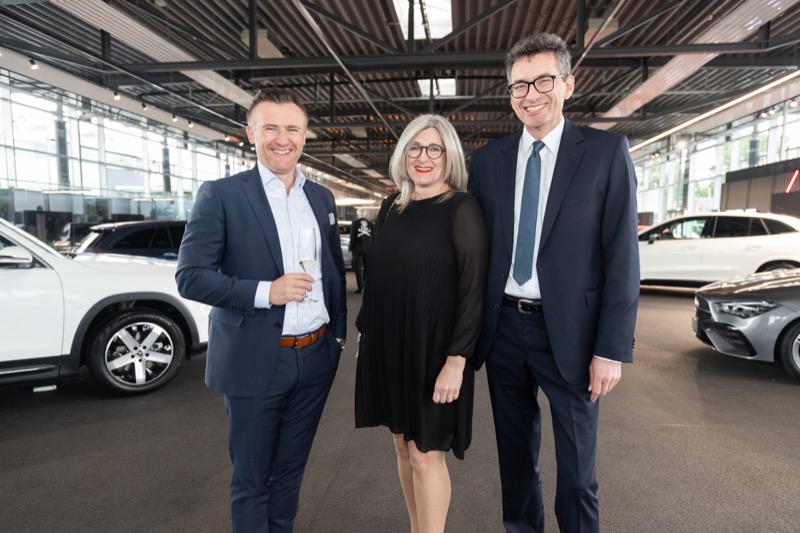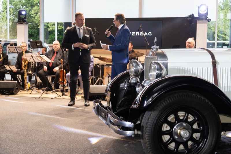 Niels Kowollik, CEO und Managing Director Mercedes-Benz Österreich Cars, und Martin Heger, Geschäftsführer von Merbag, konnten am Eröffnungsabend nicht nur viele Gäste begrüssen, sondern auch den heimlichen Stargast des abends, den neuen Mercedes-Maybach SL 680 Monogram Series.