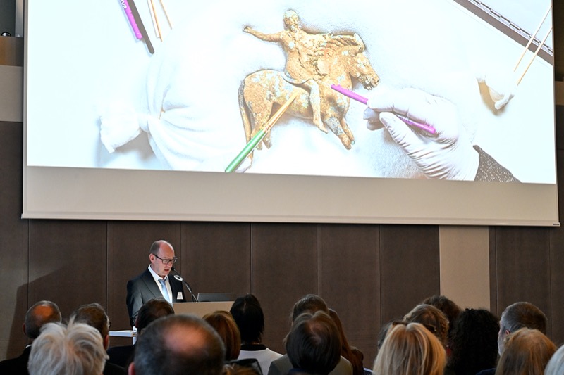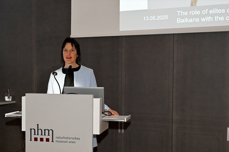 Katrin Vohland, Generaldirektorin des Naturhistorischen Museums, und S.E. Fate Velaj, Botschafter der Republik Albanien in Wien, begrüßten die Gäste und Karina Grömer, Direktorin der Prähistorischen Abteilung, informierte die Anwesenden über die Ausstellung. Die qualitätsvolle bronzene Statuette des sogenannten „Pferd und Reiter von Babunja“ aus der zweiten Hälfte des 6. Jh. v. Chr. wurde 2018 im Zuge albanisch-deutscher Ausgrabungen in der befestigten antiken illyrischen Kleinstadt Arnisa im Dorf Babunja im Hinterland der antiken Stadt