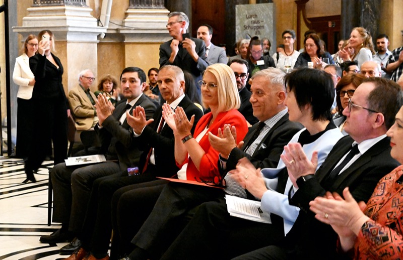 Im Anschluss lud die Botschaft der Republik Albanien zu einem Empfang in der oberen Kuppelhalle.