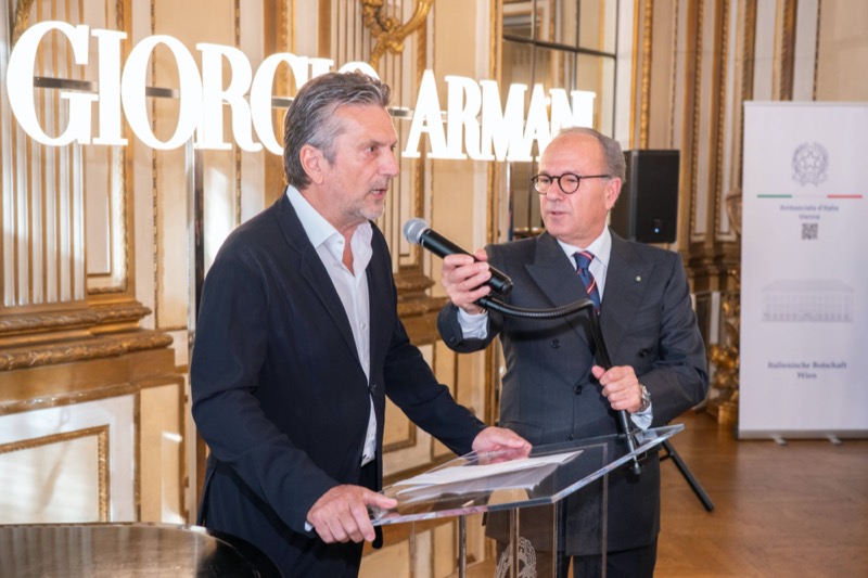 Der italienische Botschafter, S.E. Giovanni Pugliese, und der CEO von Giorgio Armini Österreich, Bortolo Venturelli, begrüßten etwa 170 Gäste aus Wirtschaft, Kultur und Gesellschaft zu diesem exklusiven Event.