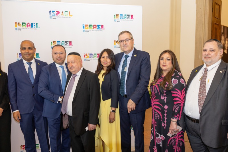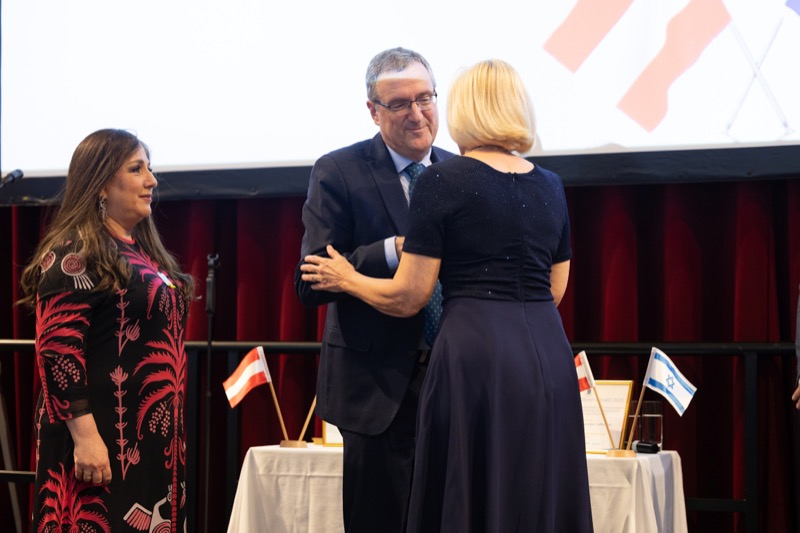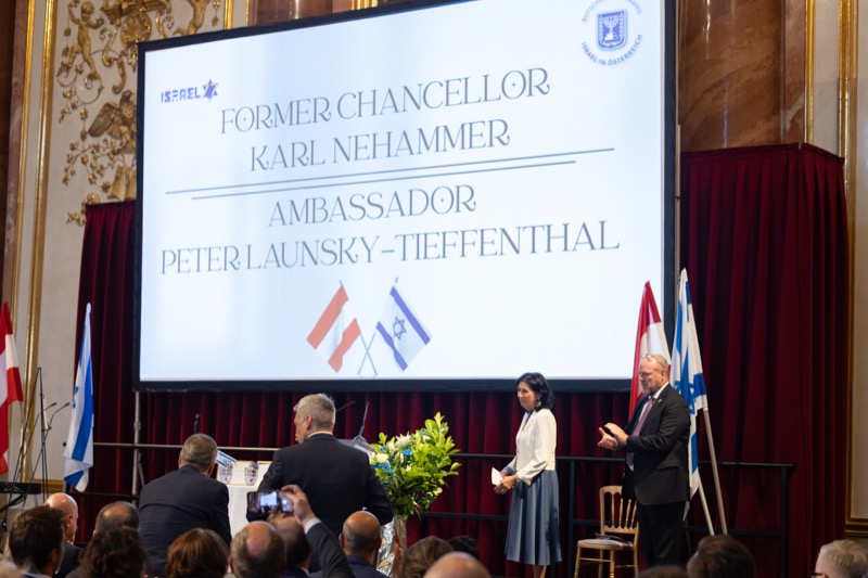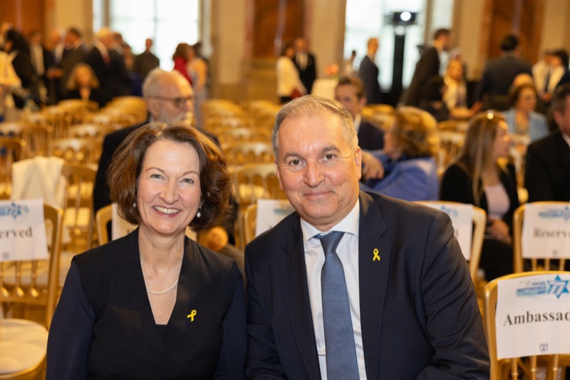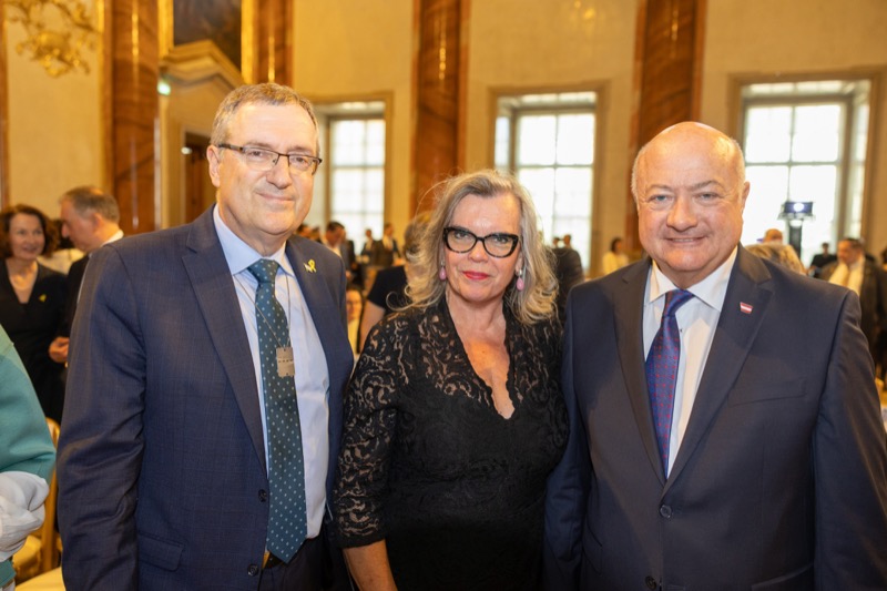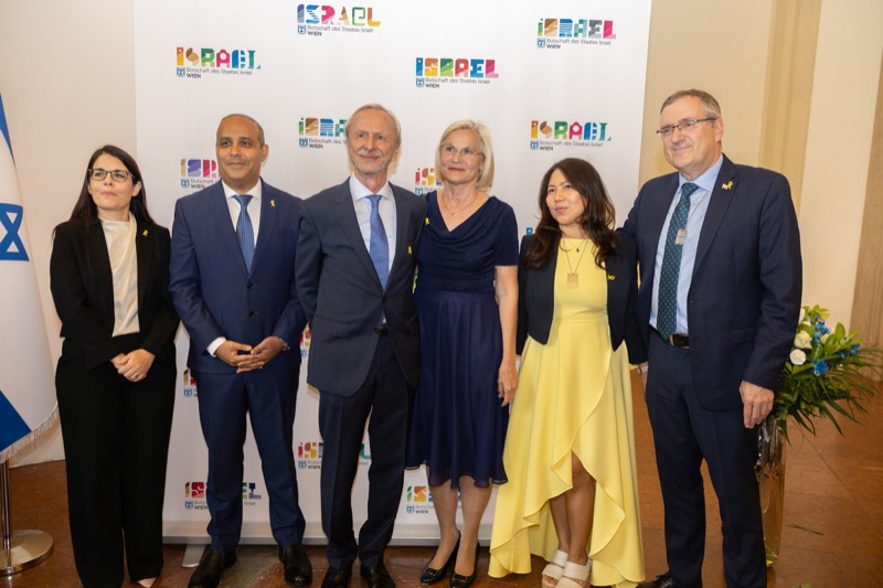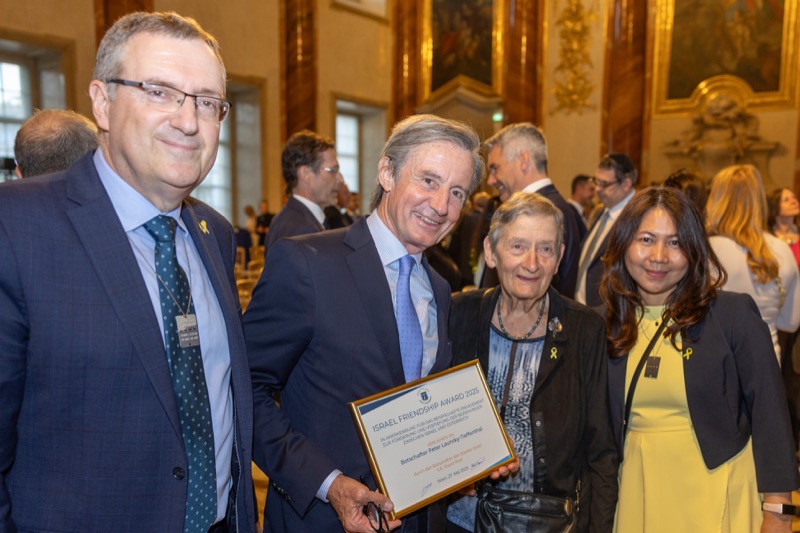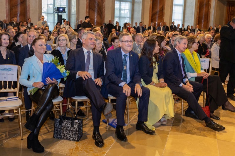 und Ständige Vertreter bei den Vereinten Nationen, der OSZE und internationalen Organisationen in Wien, S.E. David Roet und Frau Gemma Manalese und der Botschafter und Ständige Vertreter des Staates Israel bei der IAEO und CTBTO PrepCom, S.E. Ronen Shaul und Frau Yasmine Lawton Shaul luden zu einem Empfang anlässlich des 77. Unabhängigkeitstages des Staates Israel sowie zur Verleihung des 4. jährlichen Israel Friendship Awards an Bundeskanzler a.D. Karl Nehammer, Botschafter Peter Launsky-Tieffenthal und an Marie-Louise Weissenböck.