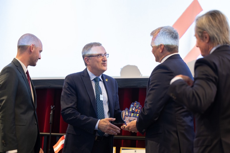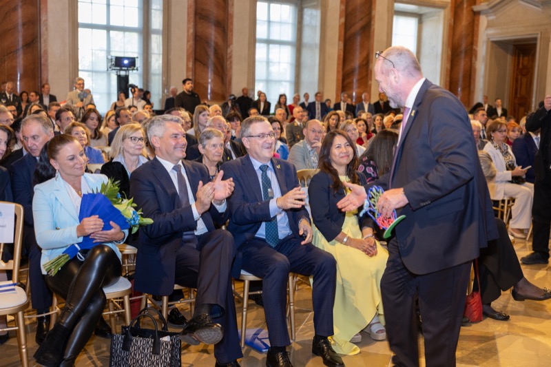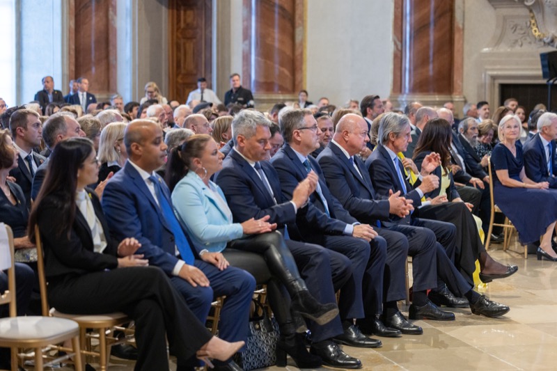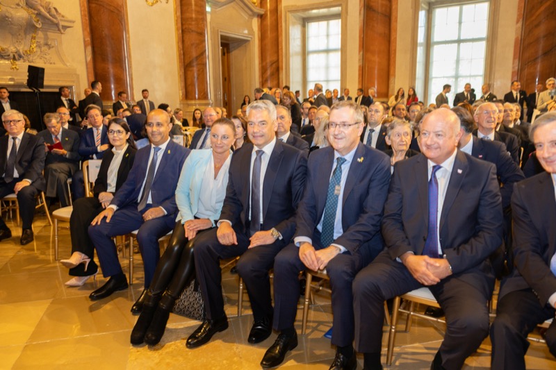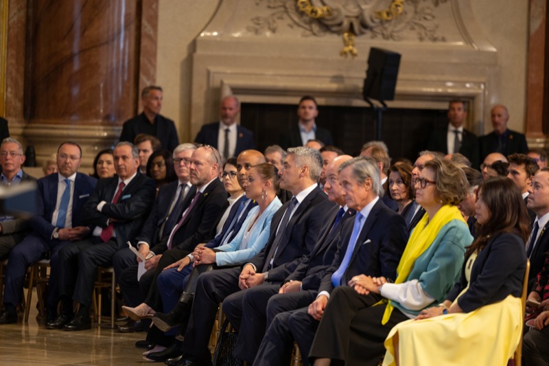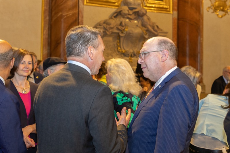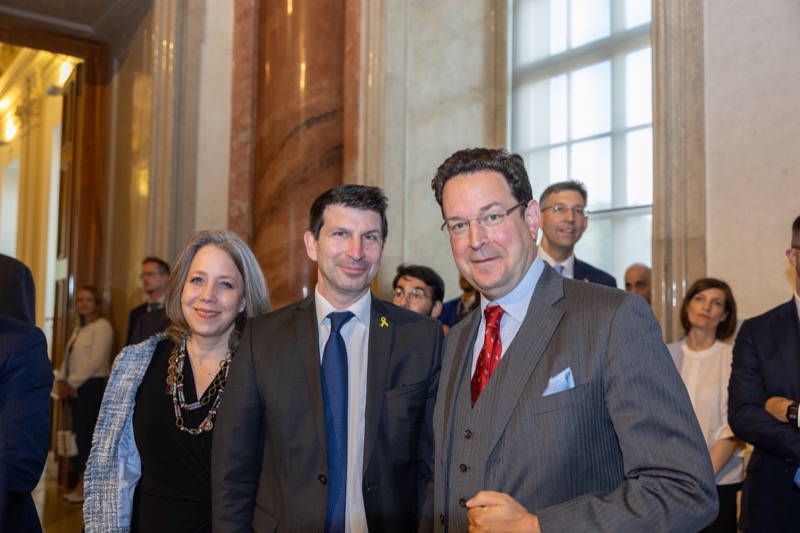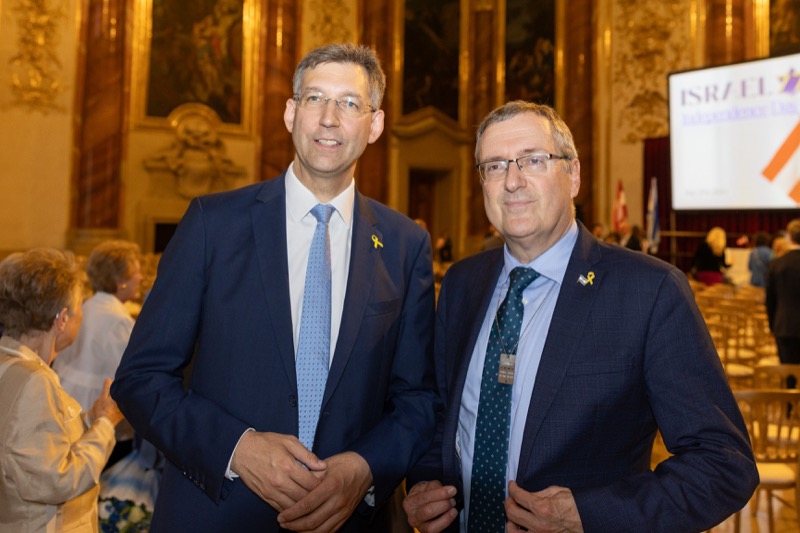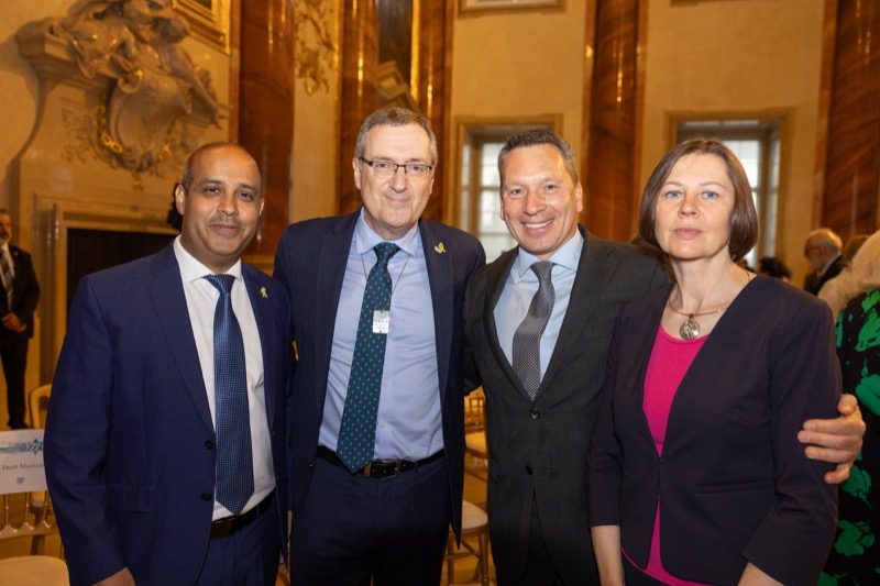 und Ständige Vertreter bei den Vereinten Nationen, der OSZE und internationalen Organisationen in Wien, S.E. David Roet und Frau Gemma Manalese und der Botschafter und Ständige Vertreter des Staates Israel bei der IAEO und CTBTO PrepCom, S.E. Ronen Shaul und Frau Yasmine Lawton Shaul luden zu einem Empfang anlässlich des 77. Unabhängigkeitstages des Staates Israel sowie zur Verleihung des 4. jährlichen Israel Friendship Awards an Bundeskanzler a.D. Karl Nehammer, Botschafter Peter Launsky-Tieffenthal und an Marie-Louise Weissenböck.