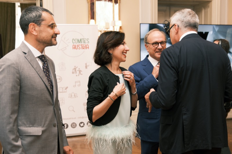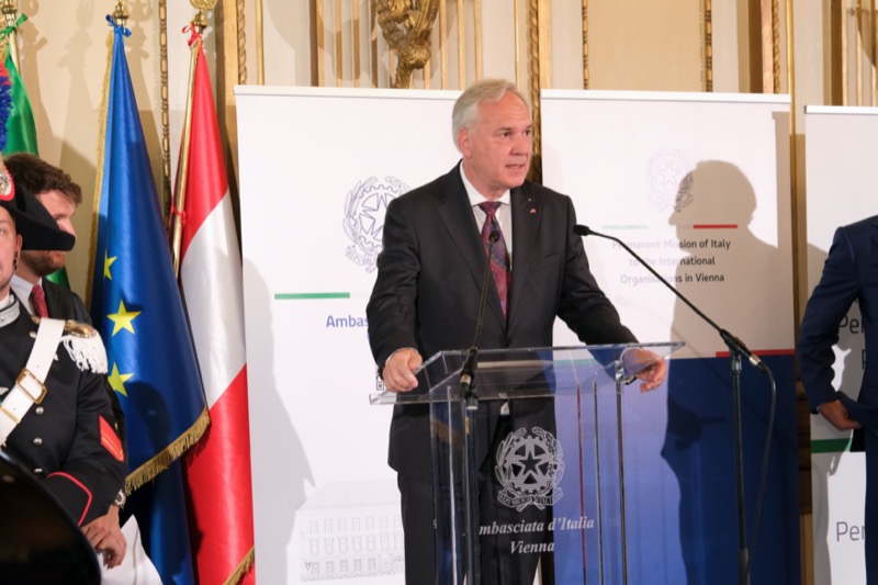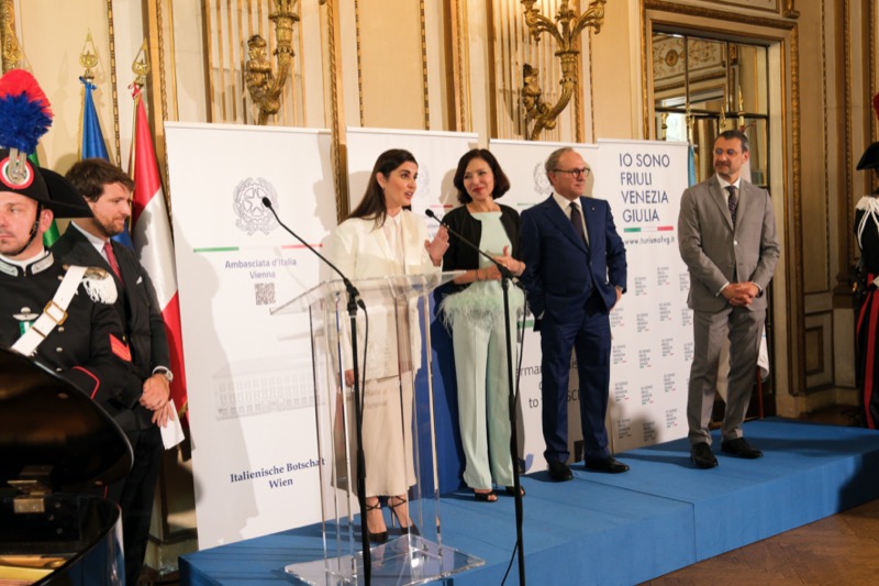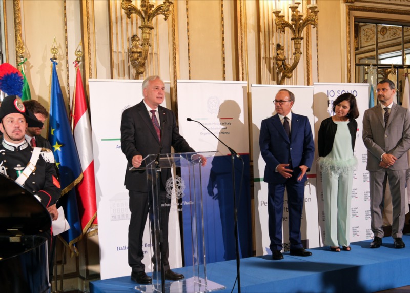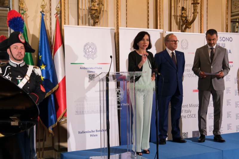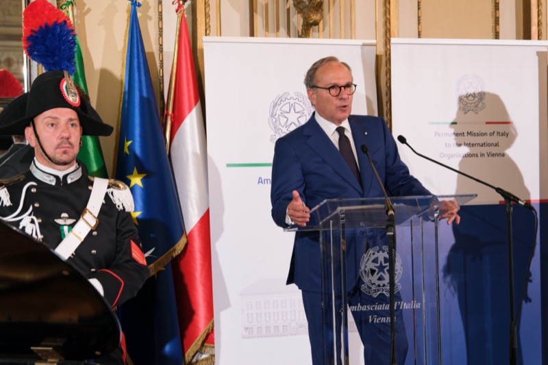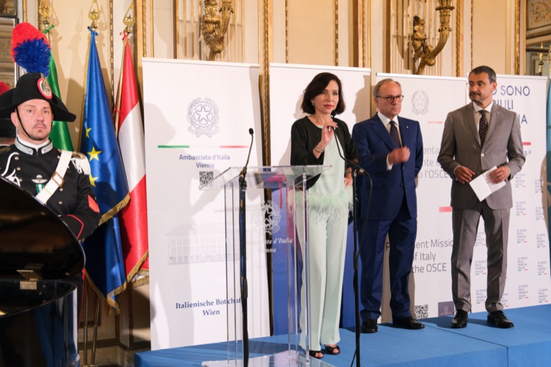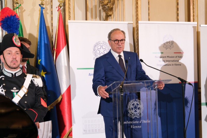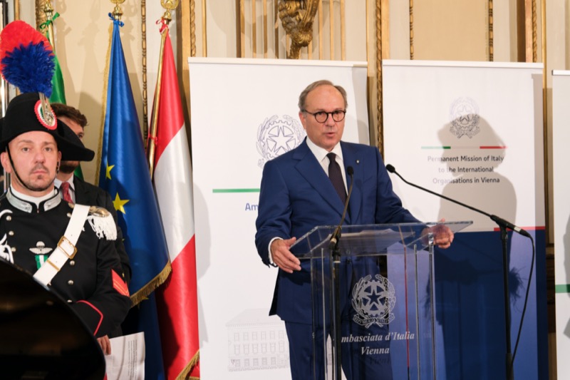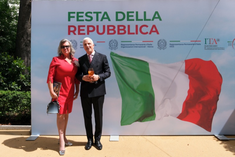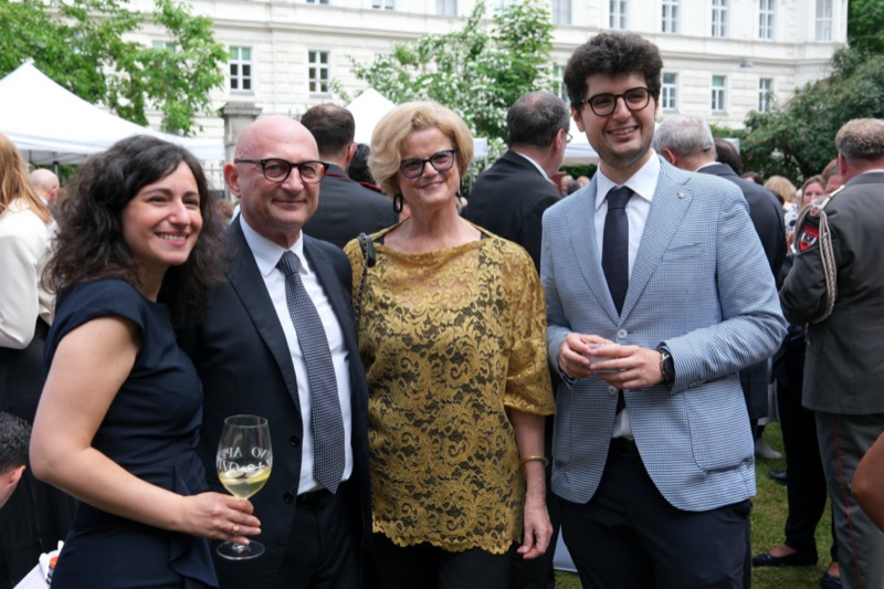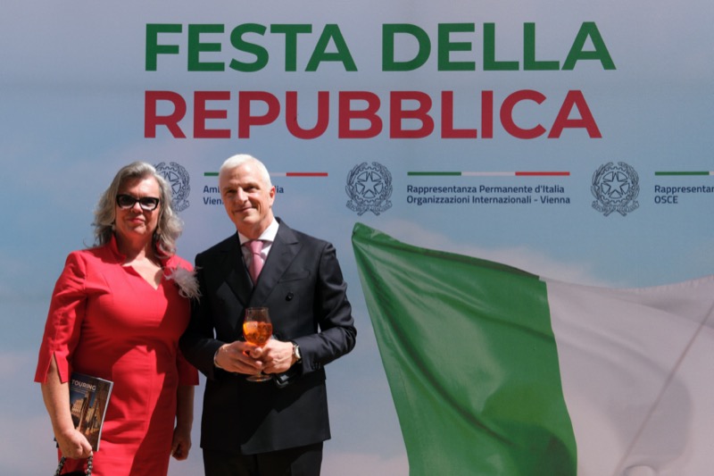 Anlässlich des Nationalfeiertages luden S.E. Giovanni Pugliese, Botschafter der Republik Italien in Österreich, I.E. Debora Lepre, ständige Vertreterin bei den Internationalen Organisationen in Wien und S.E. Andrea Cascone, ständiger Vertreter bei der OSZE, zu einem Empfang in das prachtvolle Palais Metternich, Sitz der Botschaft von Italien.