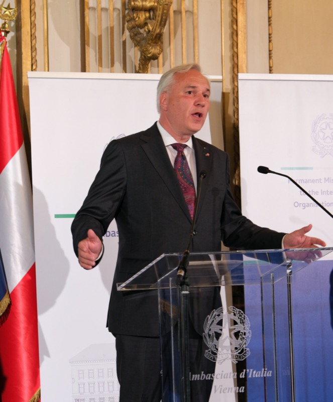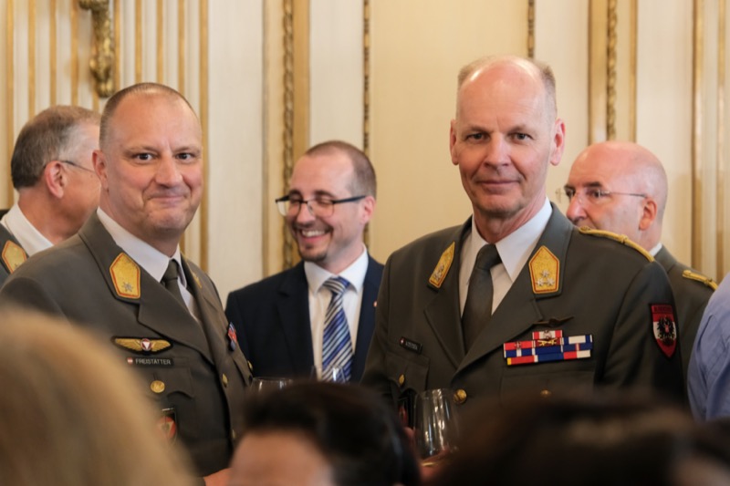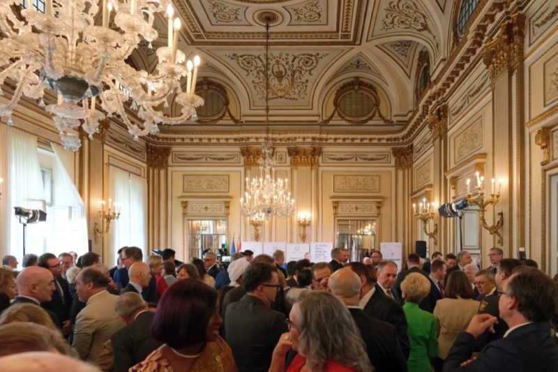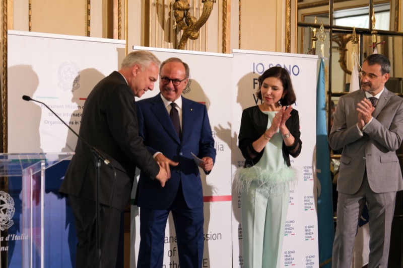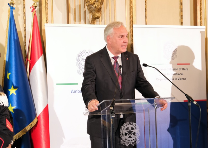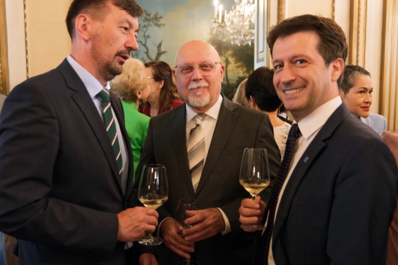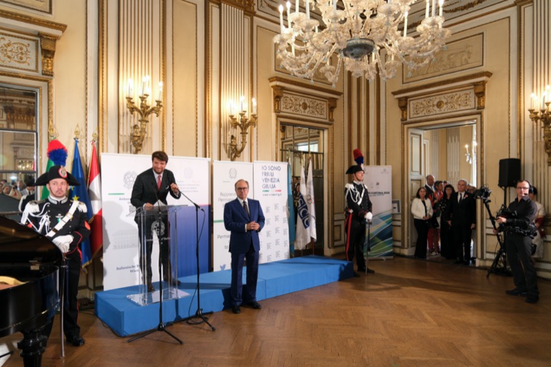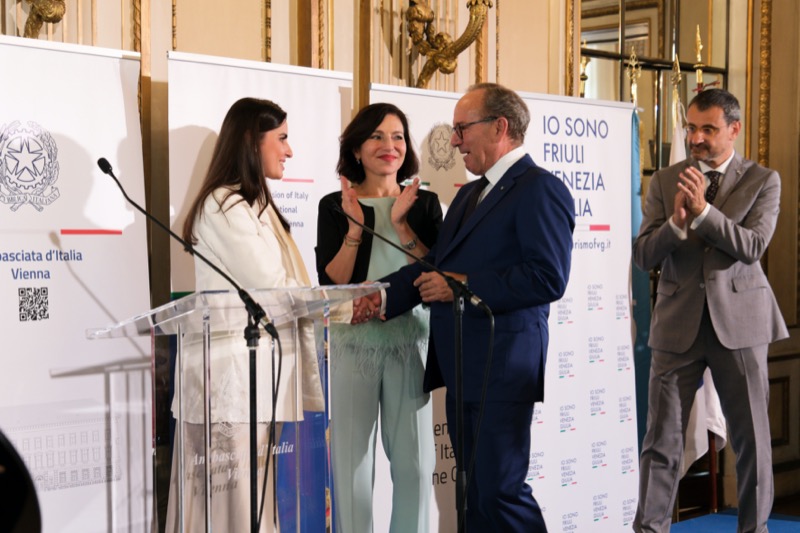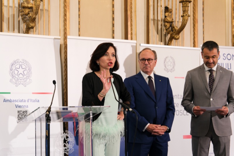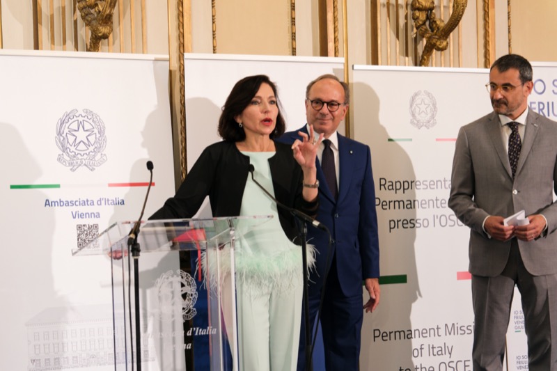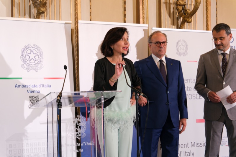 Anlässlich des Nationalfeiertages luden S.E. Giovanni Pugliese, Botschafter der Republik Italien in Österreich, I.E. Debora Lepre, ständige Vertreterin bei den Internationalen Organisationen in Wien und S.E. Andrea Cascone, ständiger Vertreter bei der OSZE, zu einem Empfang in das prachtvolle Palais Metternich, Sitz der Botschaft von Italien.