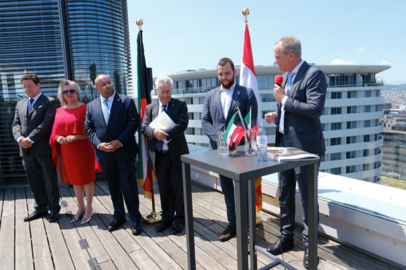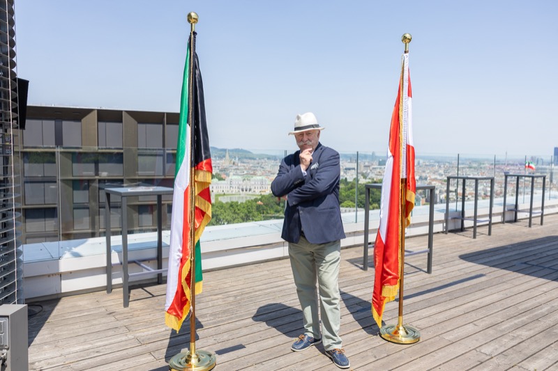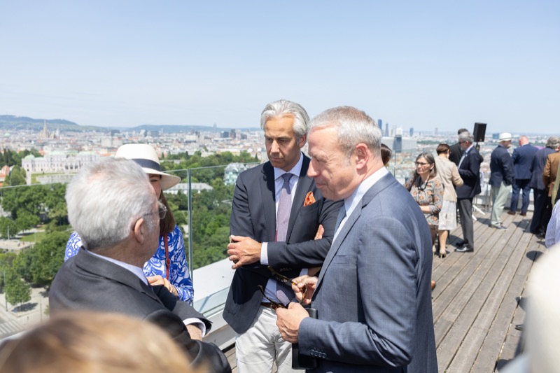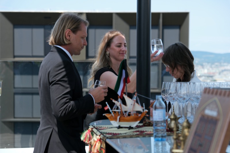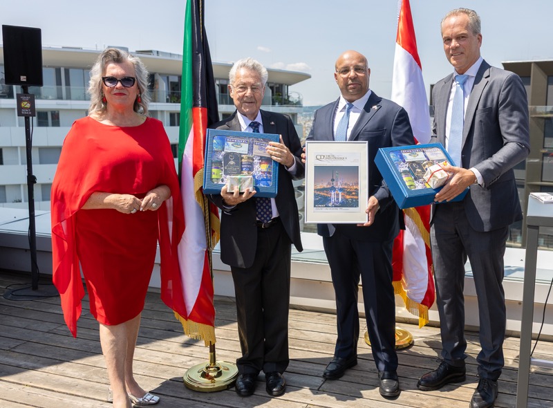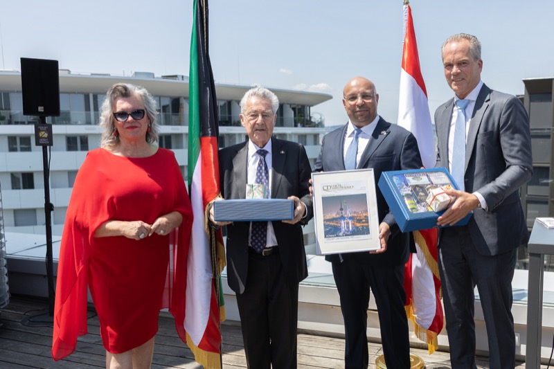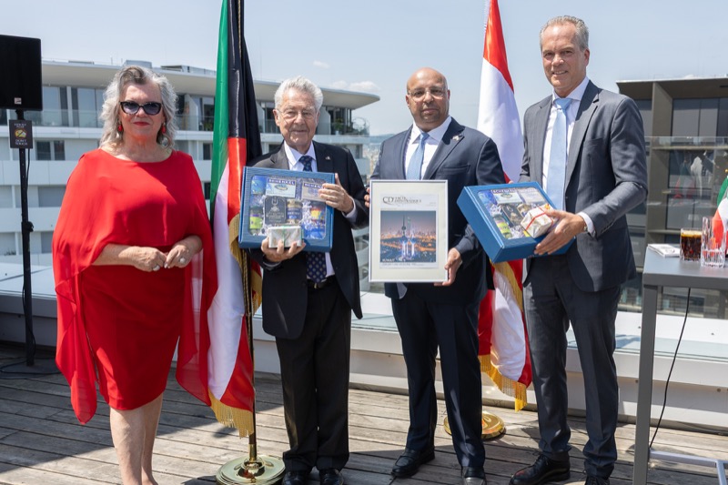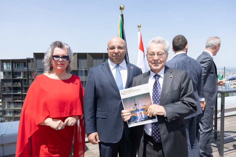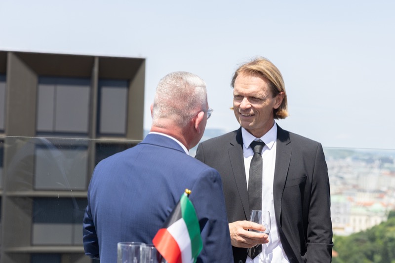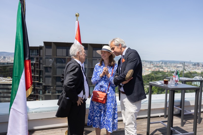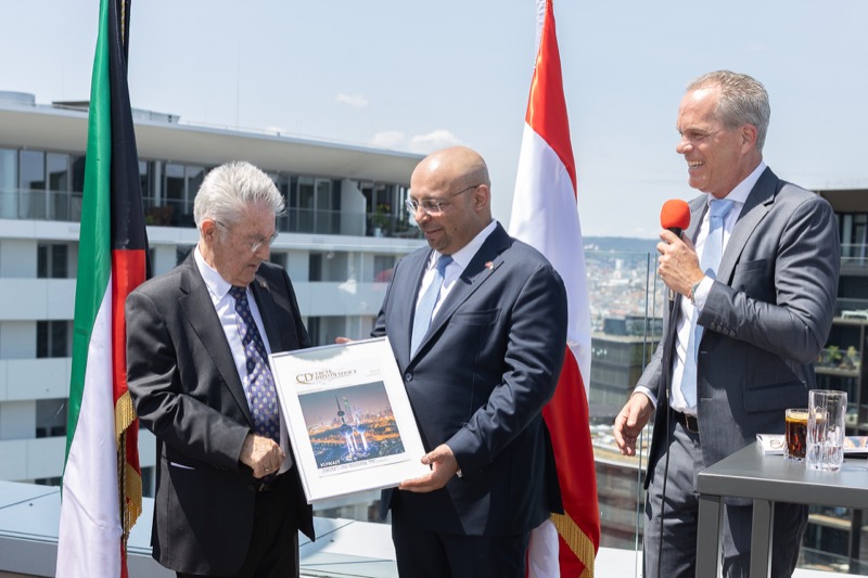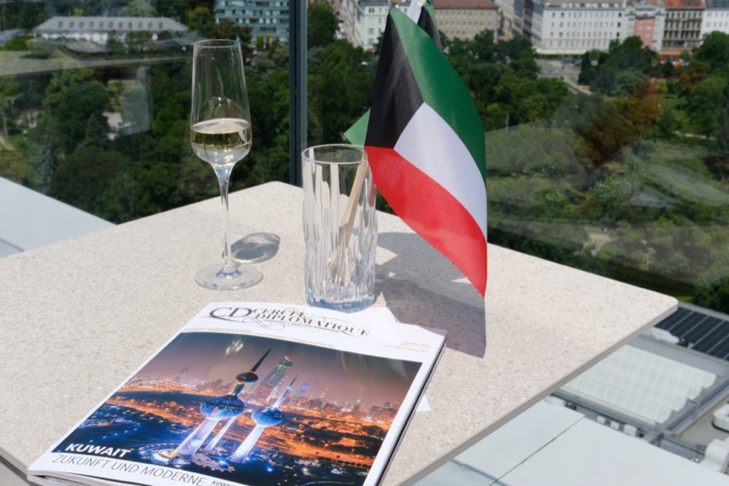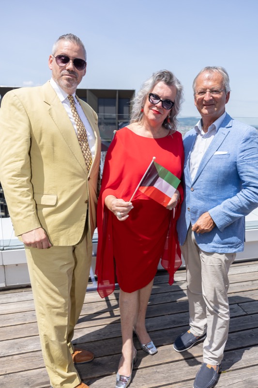 Die Herausgeber von CERCLE DIPLOMATIQUE, Andrea Fürnweger und Alexander Bursky, luden Freitag mittag zur Präsentation der Sommerausgabe des Magazins mit der Coverstory über Kuwait. Gemeinsam mit General Manager Wolfgang Paczulla wurden rund 130 Gäste aus Diplomatie, Wirtschaft, Politik & Gesellschaft bei prachtvollem Wetter in der Aurora Rooftop Bar des Andaz Vienna am Belvedere empfangen.