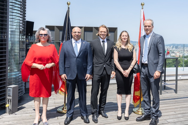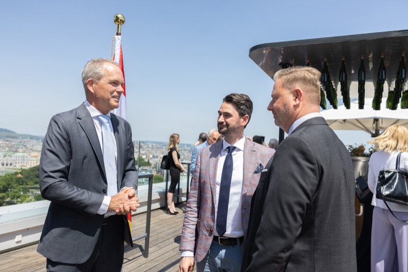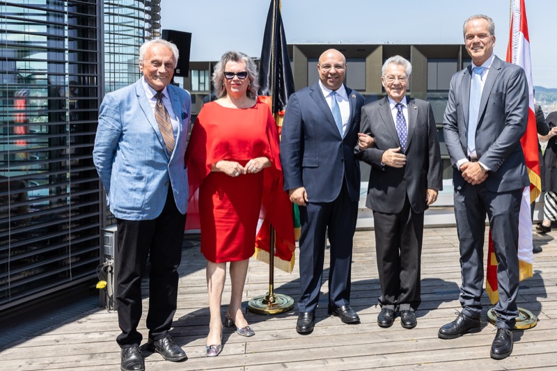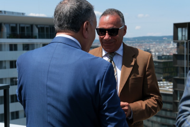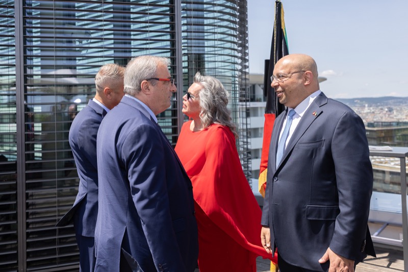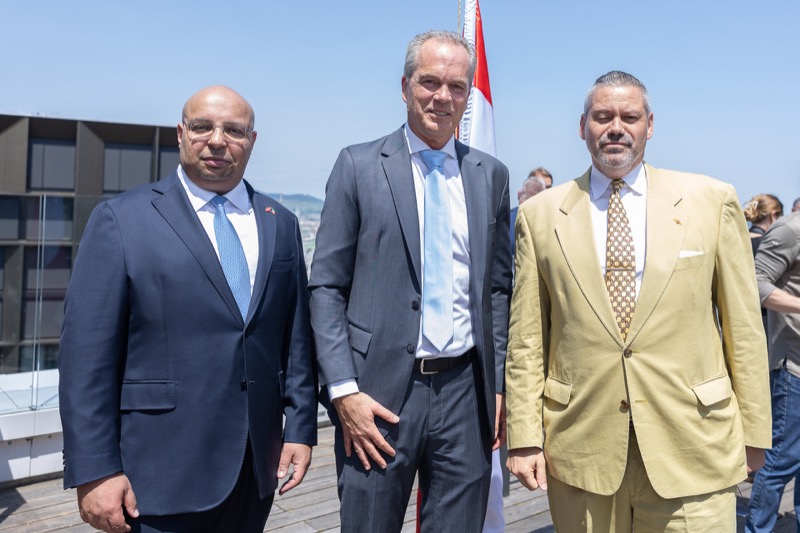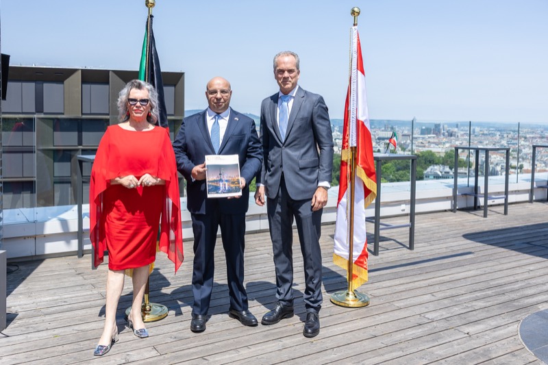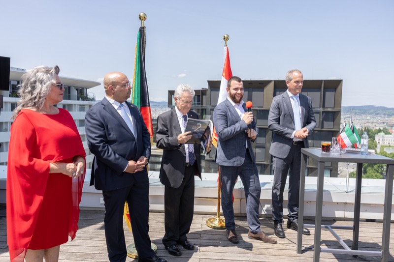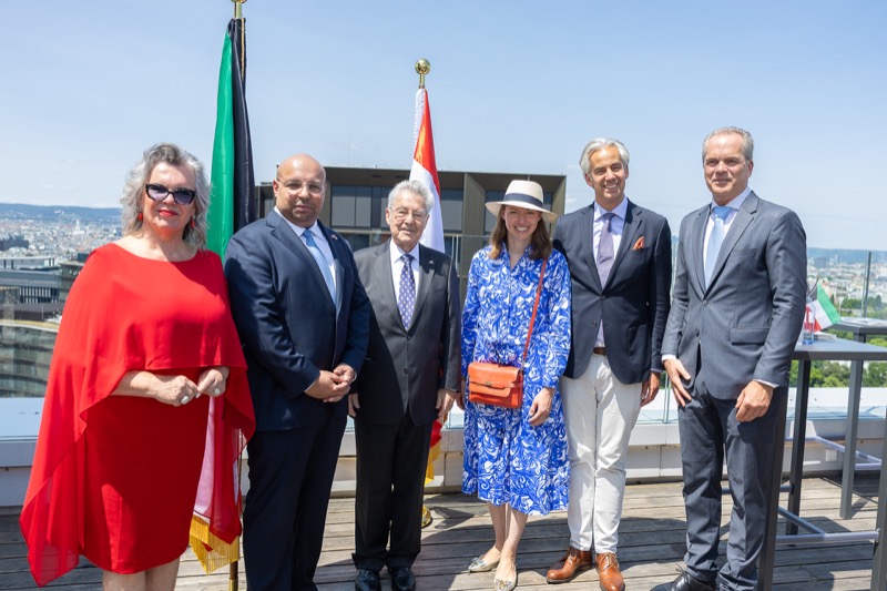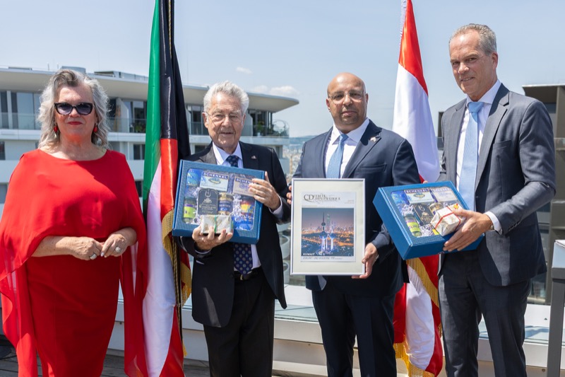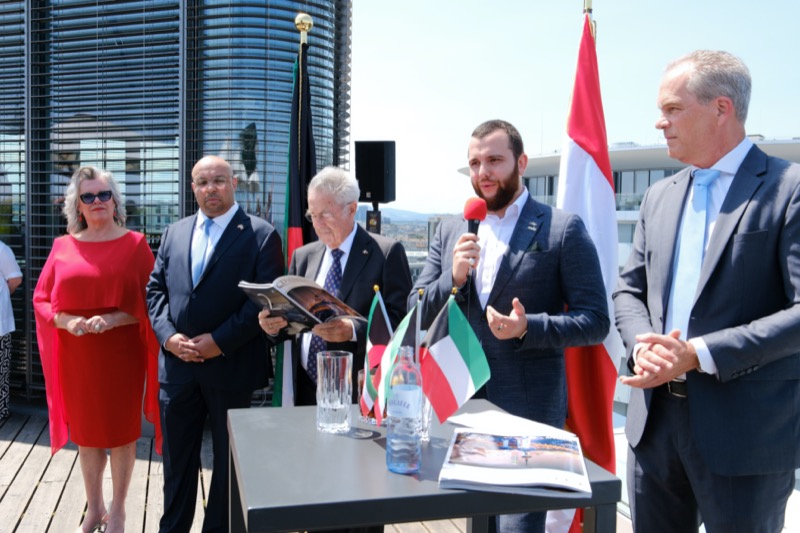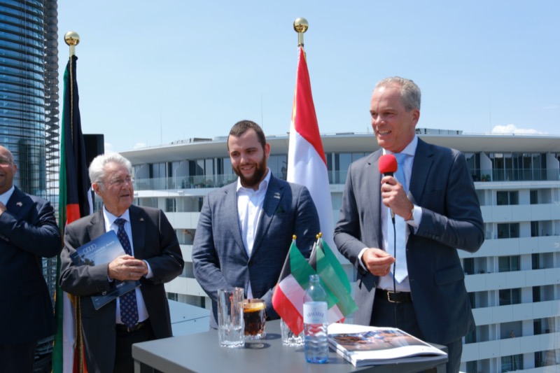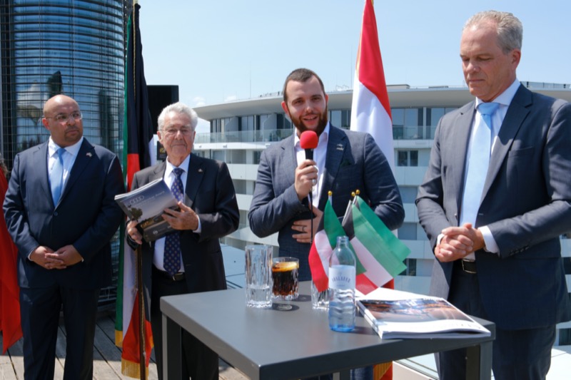 Die Herausgeber von CERCLE DIPLOMATIQUE, Andrea Fürnweger und Alexander Bursky, luden Freitag mittag zur Präsentation der Sommerausgabe des Magazins mit der Coverstory über Kuwait. Gemeinsam mit General Manager Wolfgang Paczulla wurden rund 130 Gäste aus Diplomatie, Wirtschaft, Politik & Gesellschaft bei prachtvollem Wetter in der Aurora Rooftop Bar des Andaz Vienna am Belvedere empfangen.