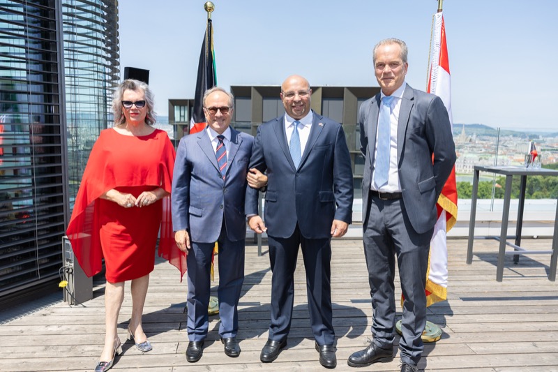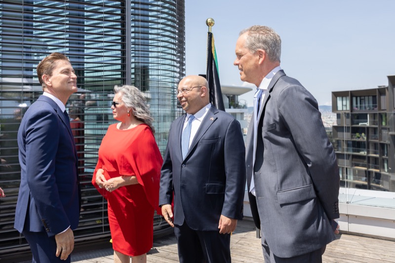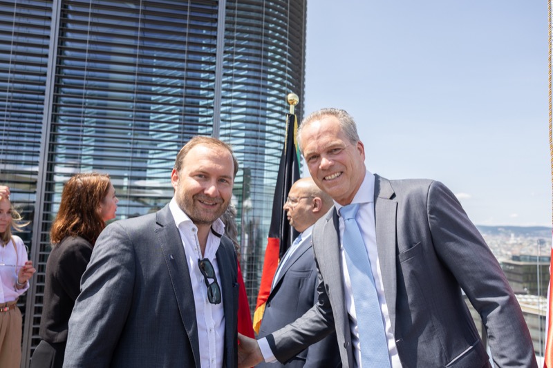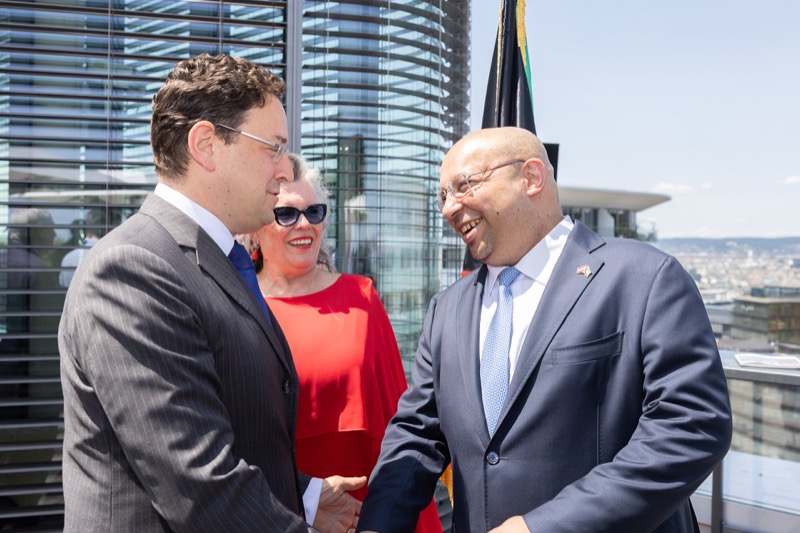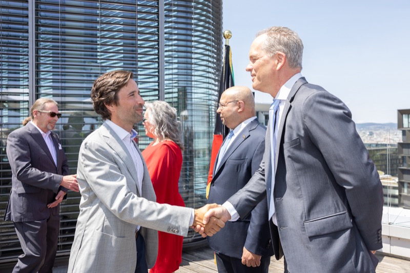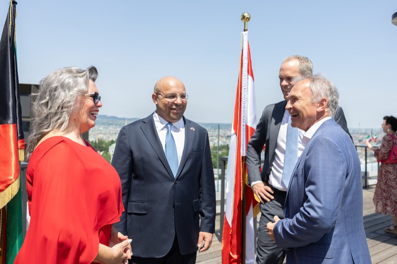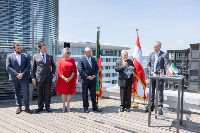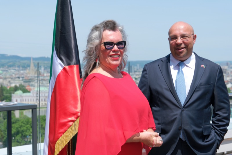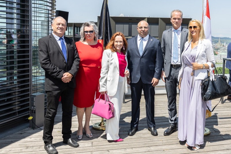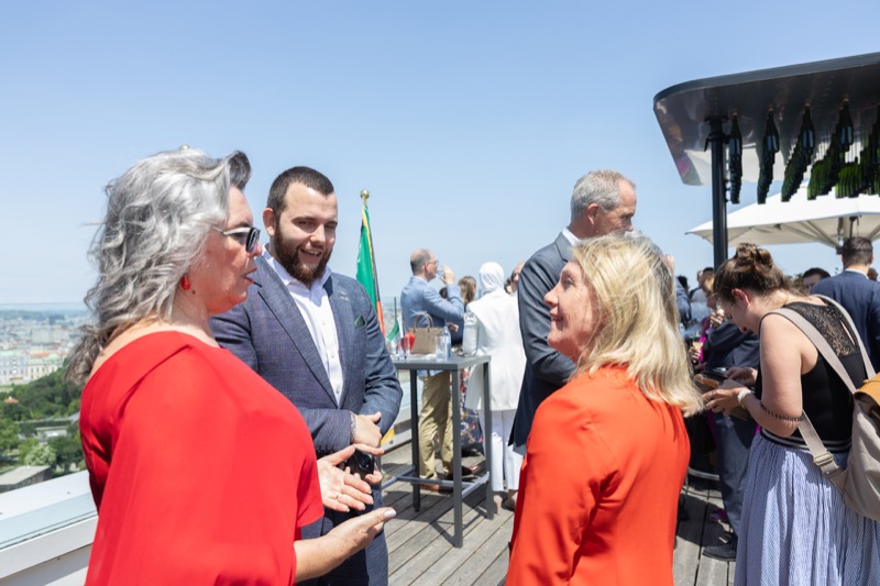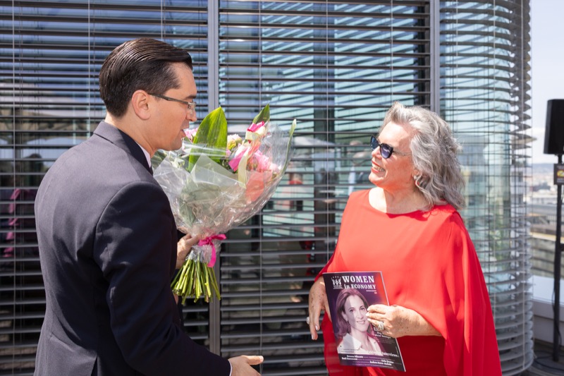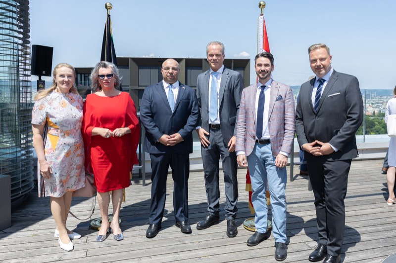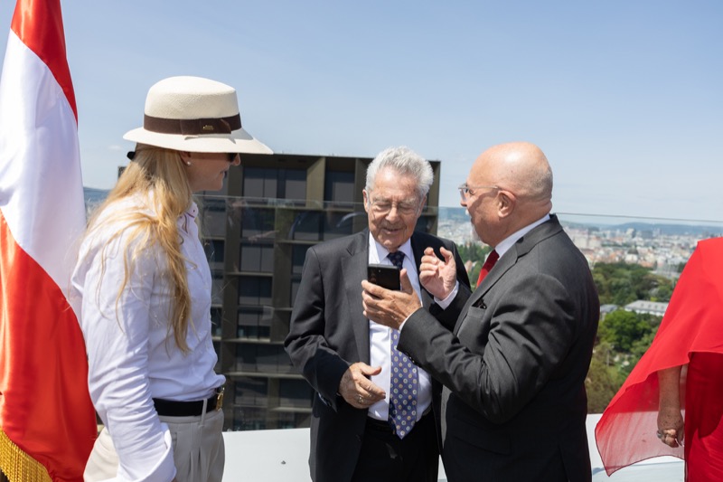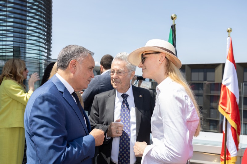 Die Herausgeber von CERCLE DIPLOMATIQUE, Andrea Fürnweger und Alexander Bursky, luden Freitag mittag zur Präsentation der Sommerausgabe des Magazins mit der Coverstory über Kuwait. Gemeinsam mit General Manager Wolfgang Paczulla wurden rund 130 Gäste aus Diplomatie, Wirtschaft, Politik & Gesellschaft bei prachtvollem Wetter in der Aurora Rooftop Bar des Andaz Vienna am Belvedere empfangen.