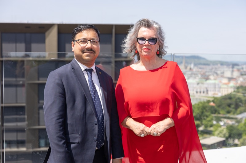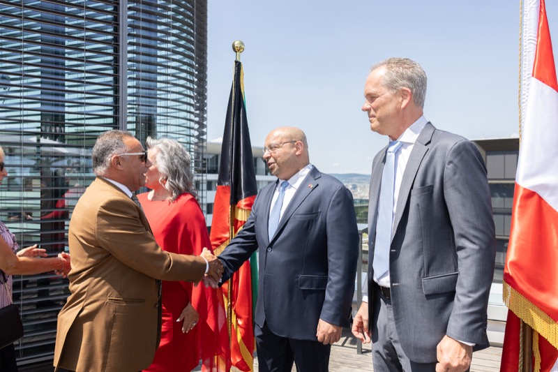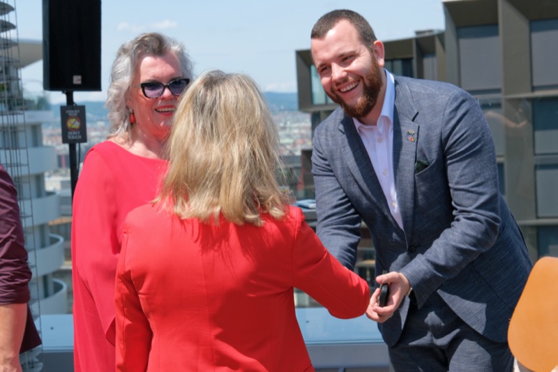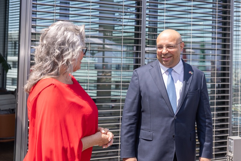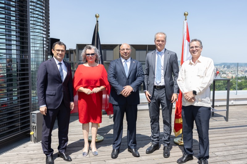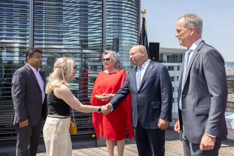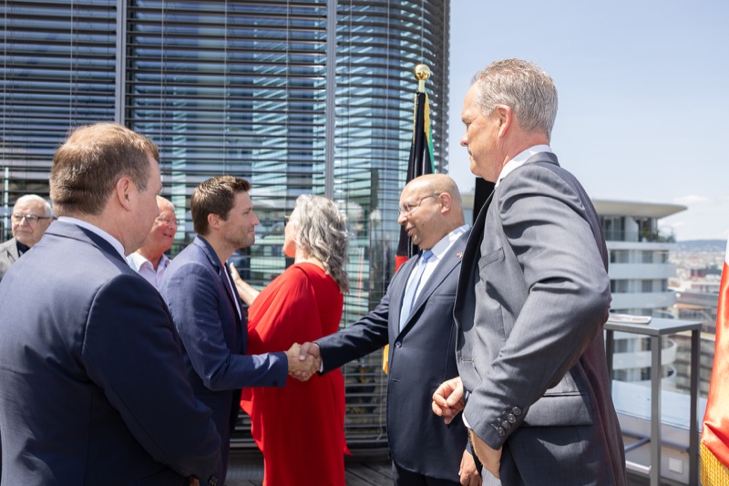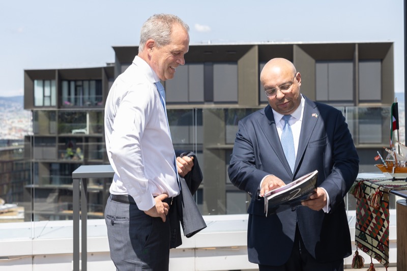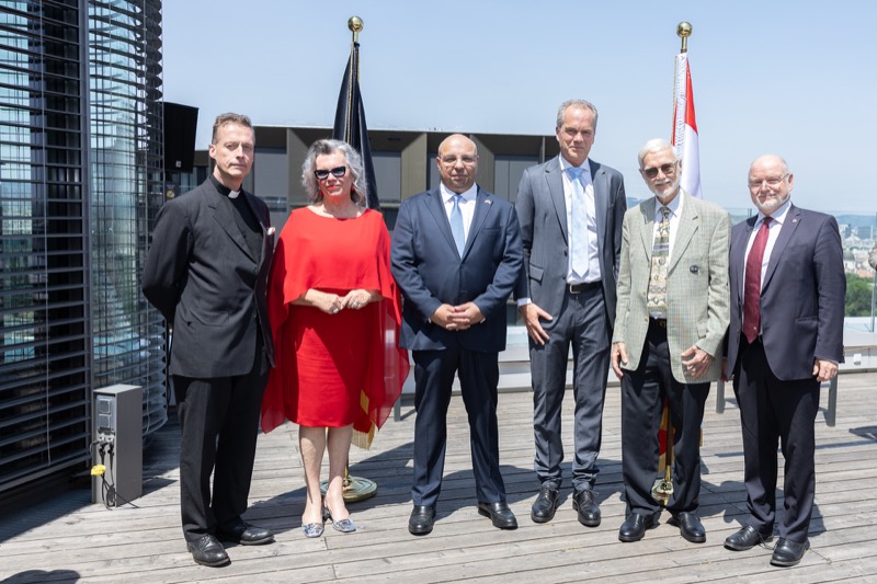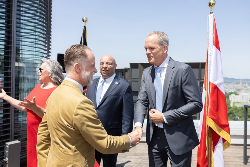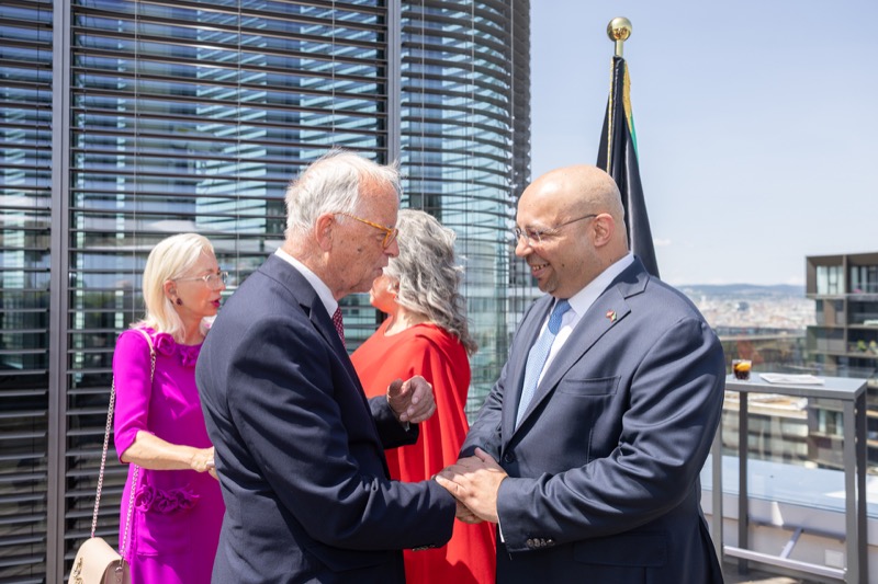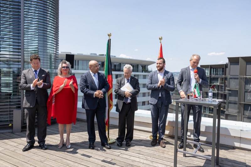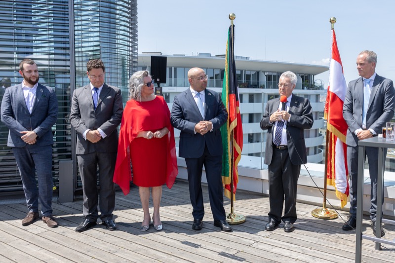 Die Herausgeber von CERCLE DIPLOMATIQUE, Andrea Fürnweger und Alexander Bursky, luden Freitag mittag zur Präsentation der Sommerausgabe des Magazins mit der Coverstory über Kuwait. Gemeinsam mit General Manager Wolfgang Paczulla wurden rund 130 Gäste aus Diplomatie, Wirtschaft, Politik & Gesellschaft bei prachtvollem Wetter in der Aurora Rooftop Bar des Andaz Vienna am Belvedere empfangen.