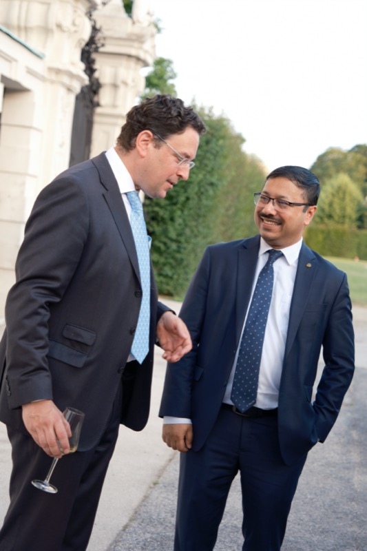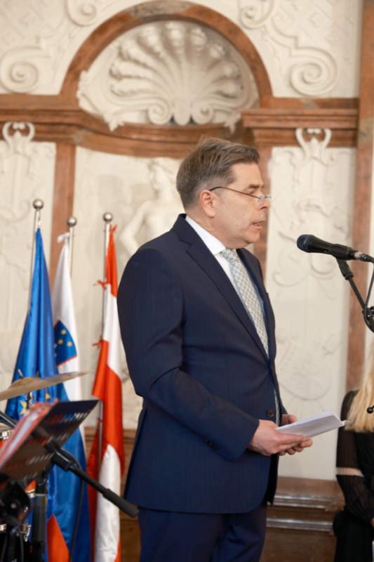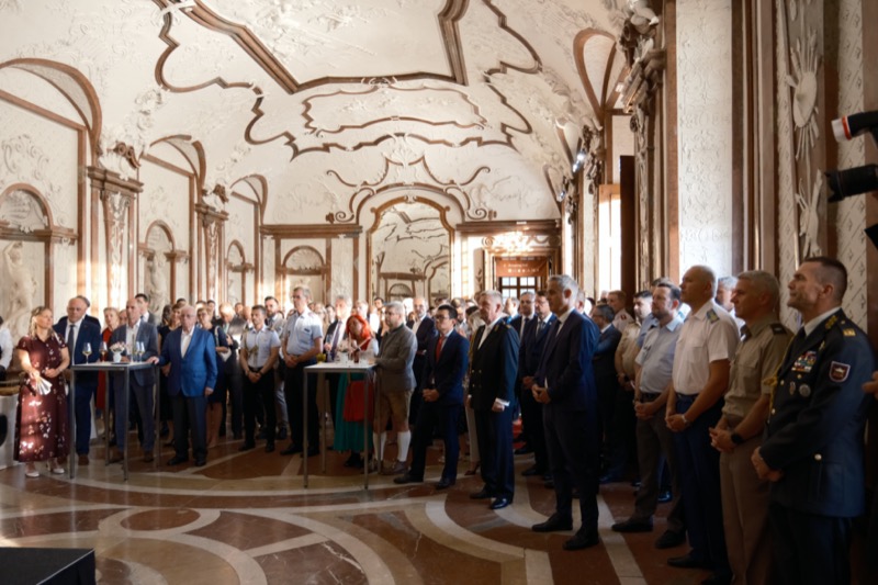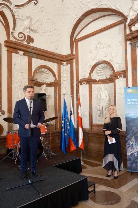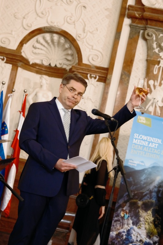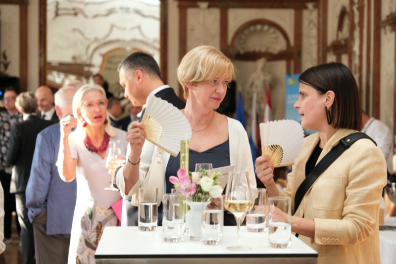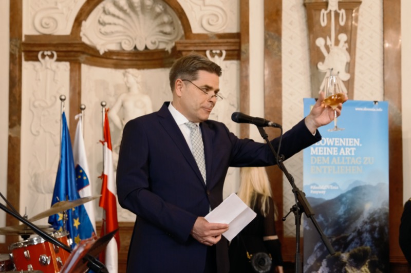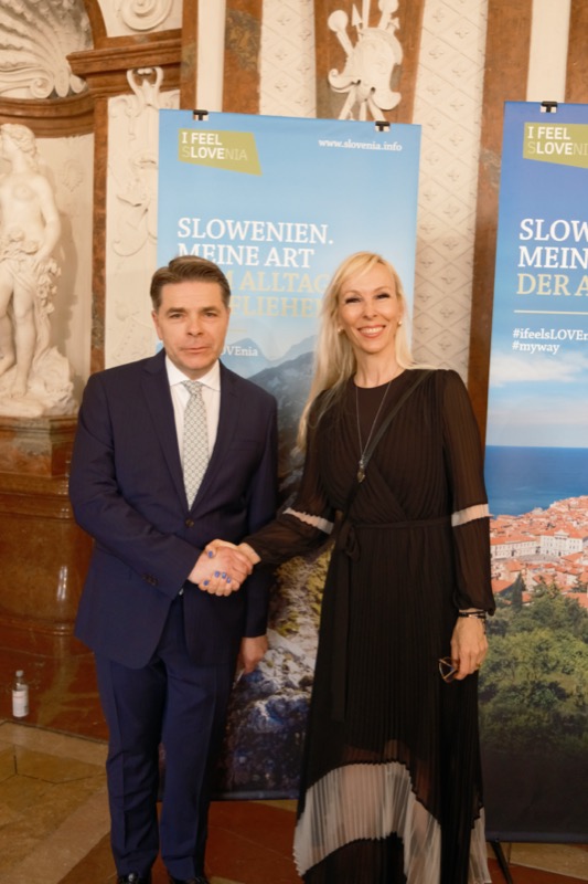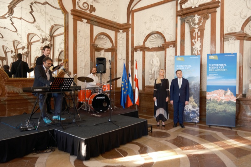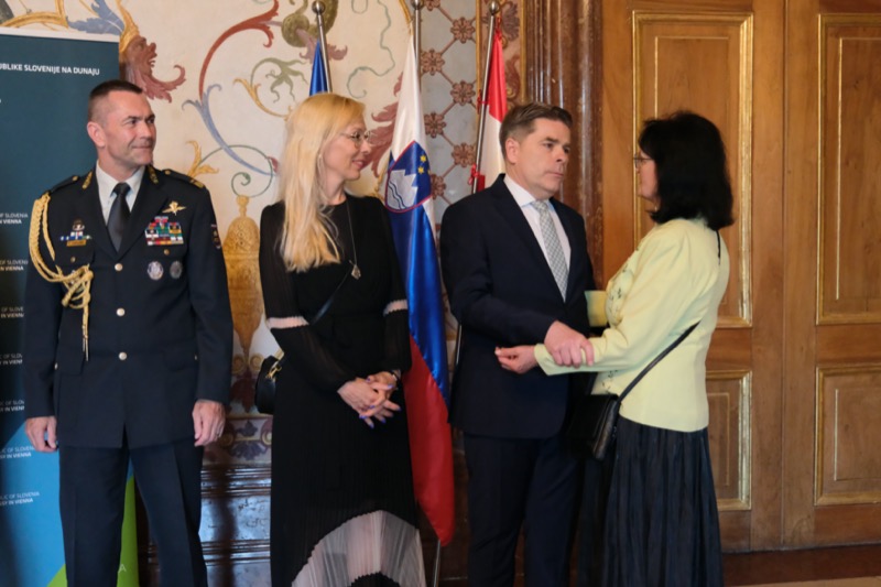 Anlässlich des Nationalfeiertages der Republik Slowenien luden der Botschafter der Republik Slowenien, S.E. Aleksander Geržina, und Frau Gaja Peric, sowie die Botschafterin und Ständige Vertreterin von Slowenien bei den Verienten Nationen, der OSZE und anderer Internationaler Organisationen, I.E. Melita Zupevc, zu einem Empfang in das Untere Belvedere.