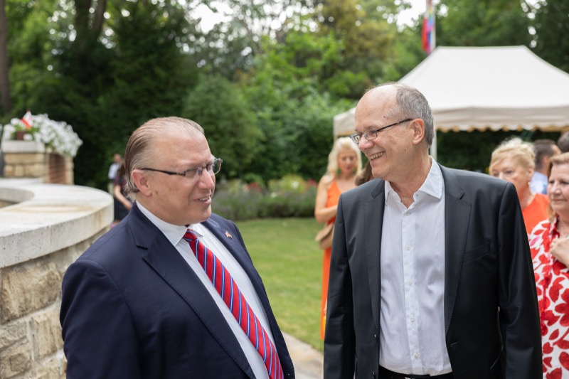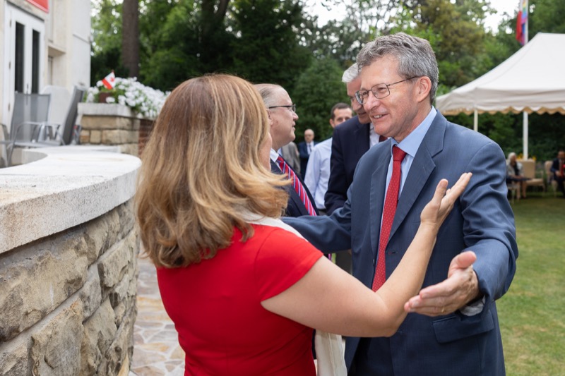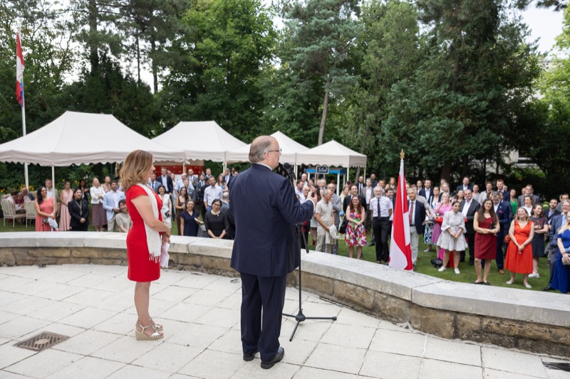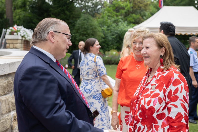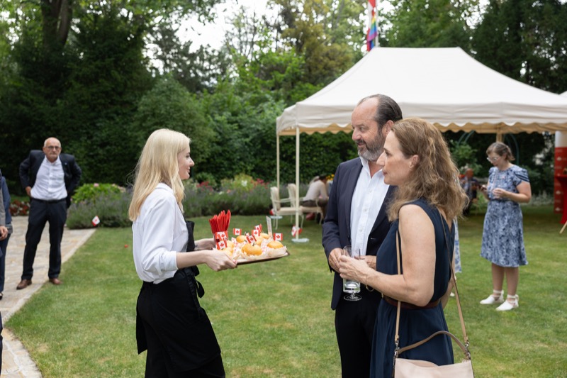S.E. Troy Lulashnyk, Botschafter von Kanada in Österreich und ständiger Vertreter bei den internationalen Organisationen, und I.E. Véronique Pepin-Hallé, Botschafterin und ständige Vertreterin bei der OSZE, luden anlässlich des Nationalfeiertages zur traditionellen Gartenparty in die Residenz.
