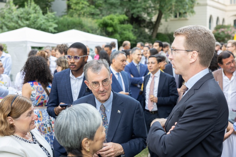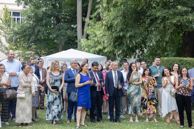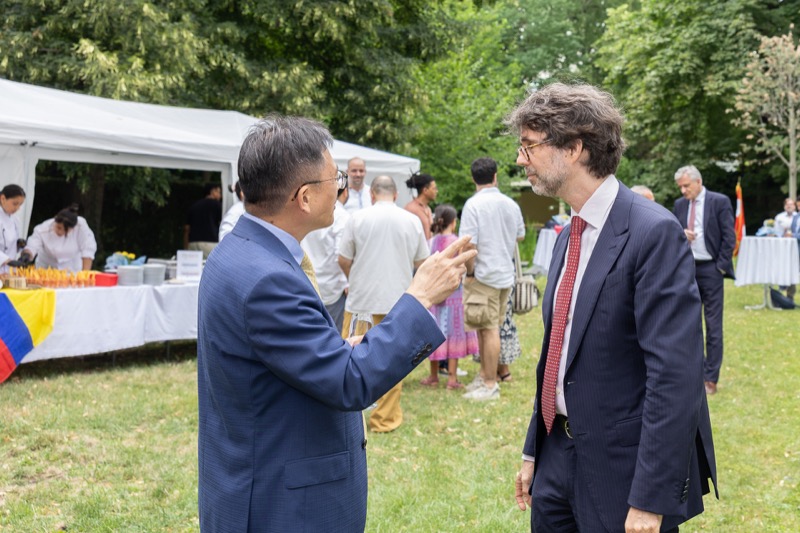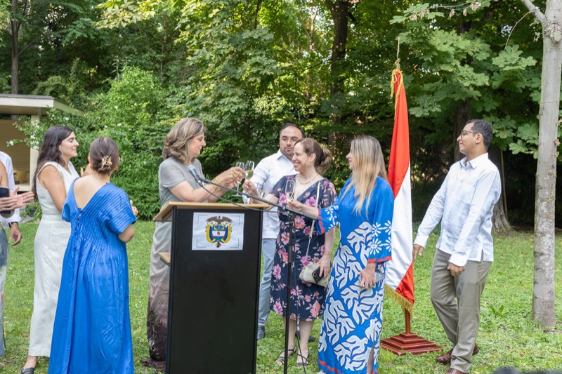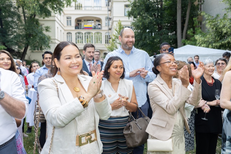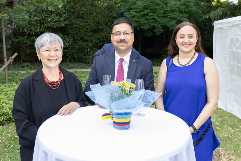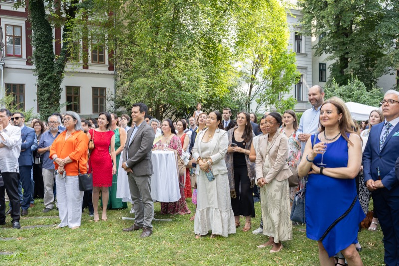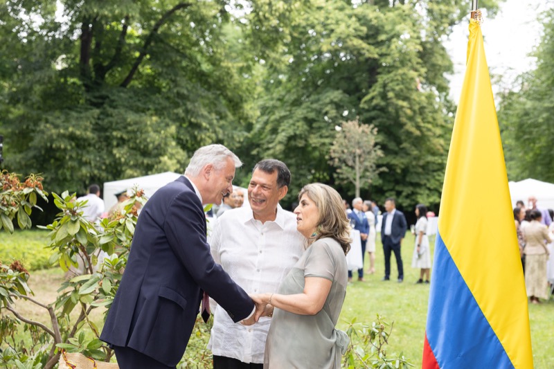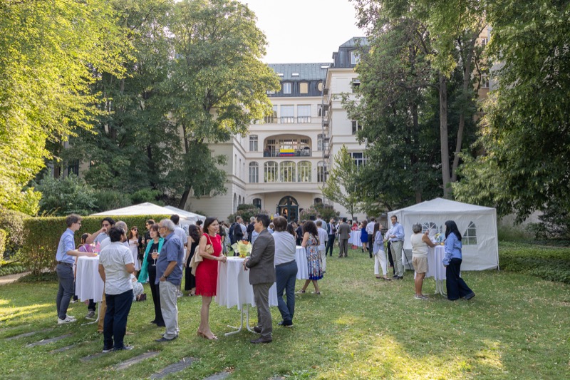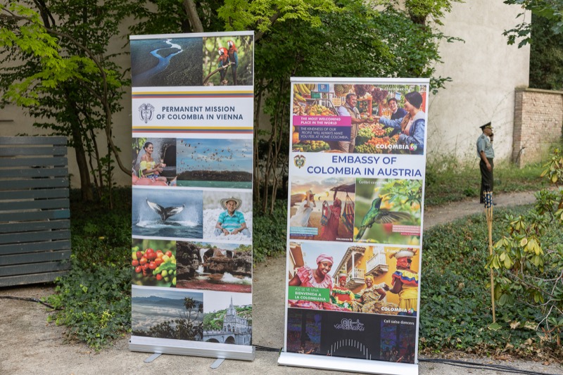 I.E. Laura Gil, Botschafterin von Kolumbien in Österreich, lud anlässlich des Nationalfeiertages der Republik Kolumbien, und um sich aus Wien zu verabschieden, zu einem Empfang in den Garten der Residenz.
