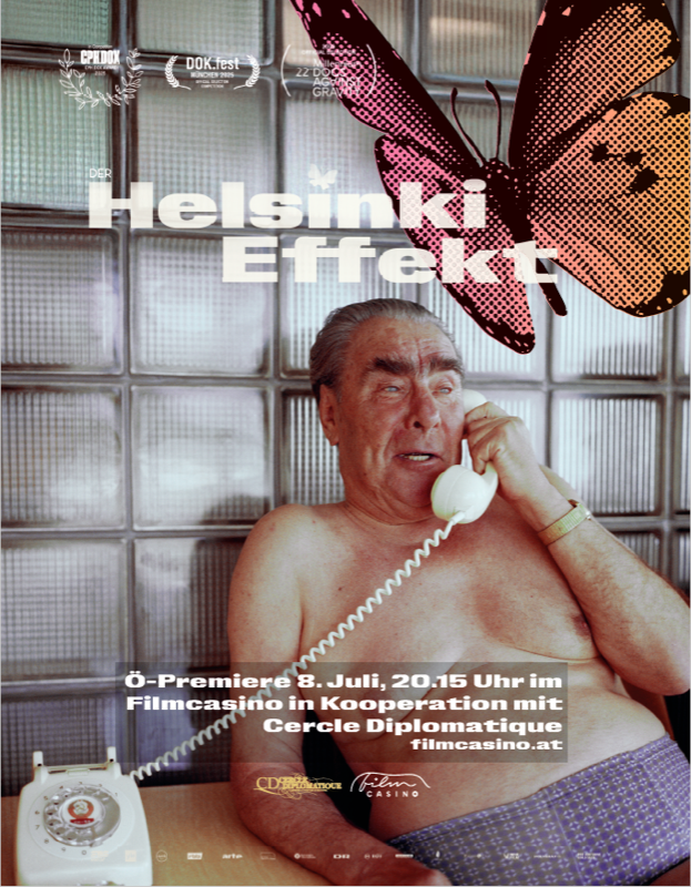 Einen Tag vor der offiziellen Österreich-Premiere luden die Herausgeber von CERCLE DIPLOMATIQUE, Andrea Fürnweger und Alexander Bursky, gemeinsam mit Gerald Knell, Leitung Filmverleih Filmcasino und Polyfilm, rund 150 Gäste, darunter viele Diplomaten und Mitarbeiter der OSZE-Botschaften in Wien, zu einer exklusiven Filmvorführung des international gefeierten Dokumentarfilms 'Der Helsinki Effekt' von Arthur Franck in das Filmcasino Wien. Organisiert wurde dieser Abend gemeinsam mit der ständigen Vertretung Finnlands bei der OSZE, welche heuer den OSZE-Vorsitz inne hat. Vor der Filmvorführung gab es einleitende Worte von S.E. Vesa Häkkinen, ständiger Vertreter Finnlands bei der OSZE, sowie eine Videobotschaft der finnischen Außenministerin, Elina Valtonen.