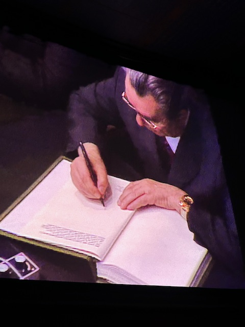 Der Film, ausschliesslich aus Archivmaterialien gestaltet, wirft einen faszinierenden Blick auf die historischen KSZE-Verhandlungen in Helsinki 1975. Mit einem fast schon satirischen Arrangement KI-generierter Vertonungen ehemaliger Geheimdokumente erweckt er die politischen Akteure jener Zeit ebenso skurril wie authentisch zum Leben.