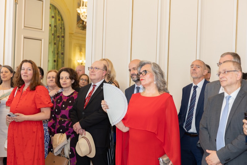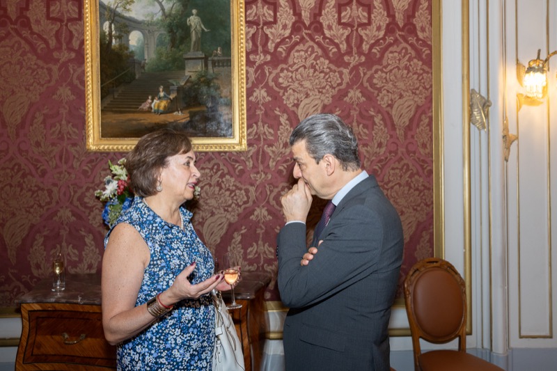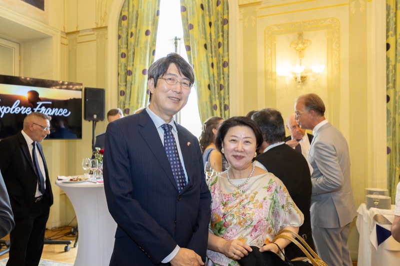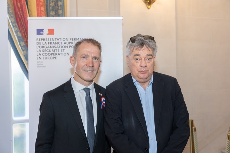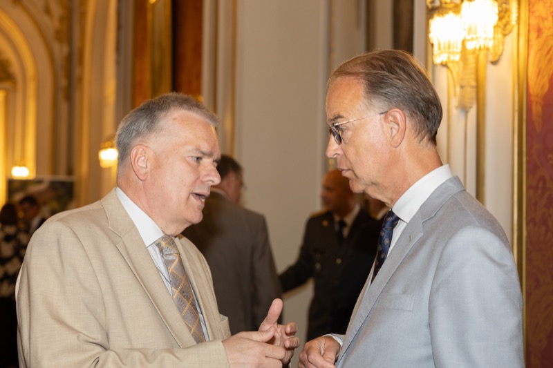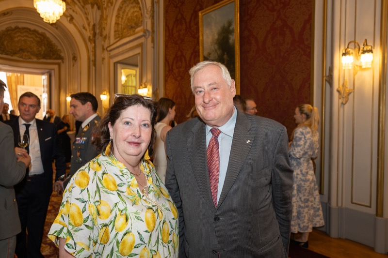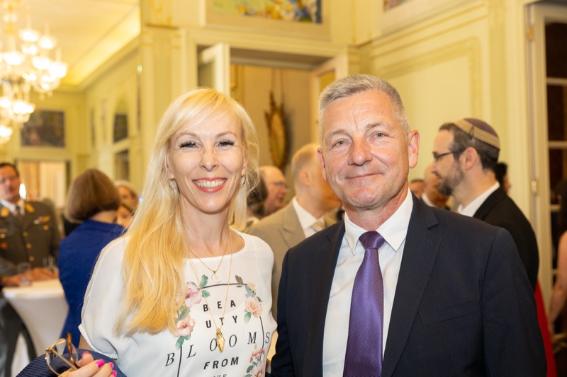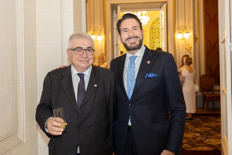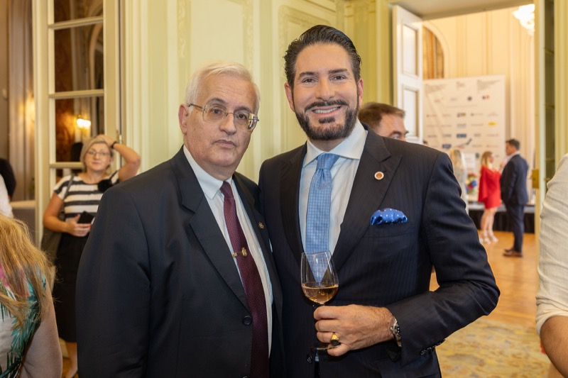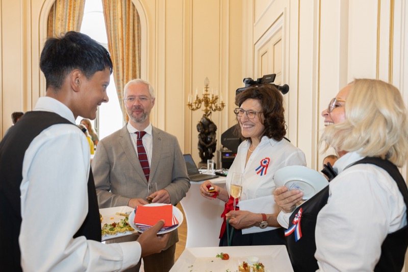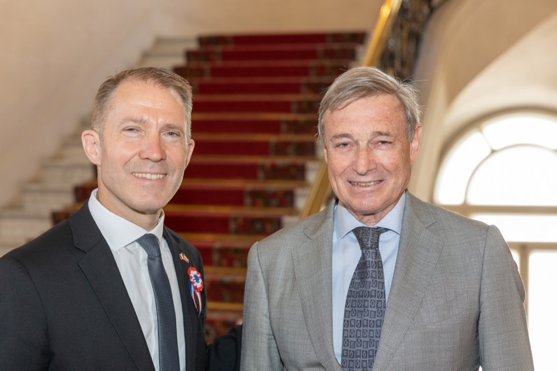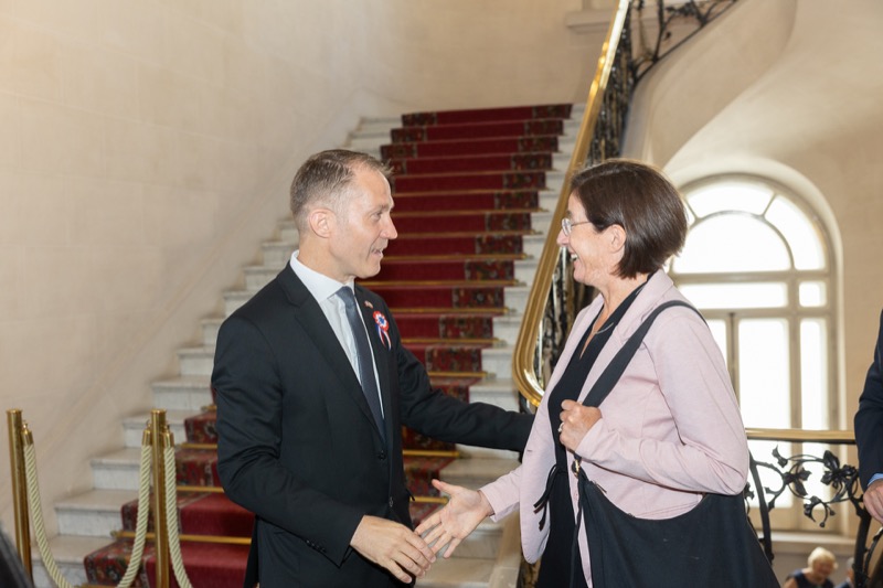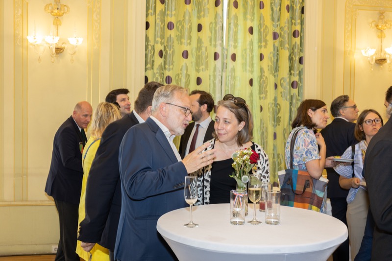 S.E. Matthieu Peyraud, Botschafter von Frankreich in Österreich, I.E. Delphine Hournau-Pouëzat, ständige Vertreterin Frankreichs bei den Internationalen Organisationen und I.E. Fatène Benhabylès-Foeth, ständige Vertreterin Frankreichs bei der OSZE, luden anlässlich des Nationalfeiertages zu einem Empfang in die prachtvolle Botschaft.