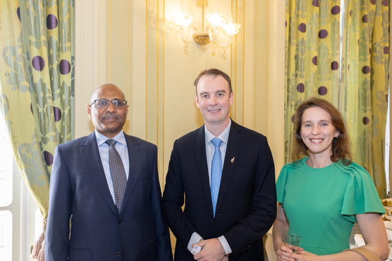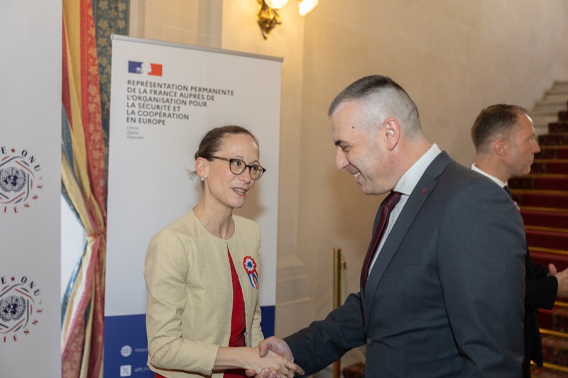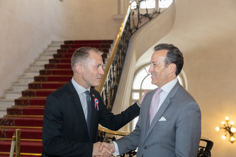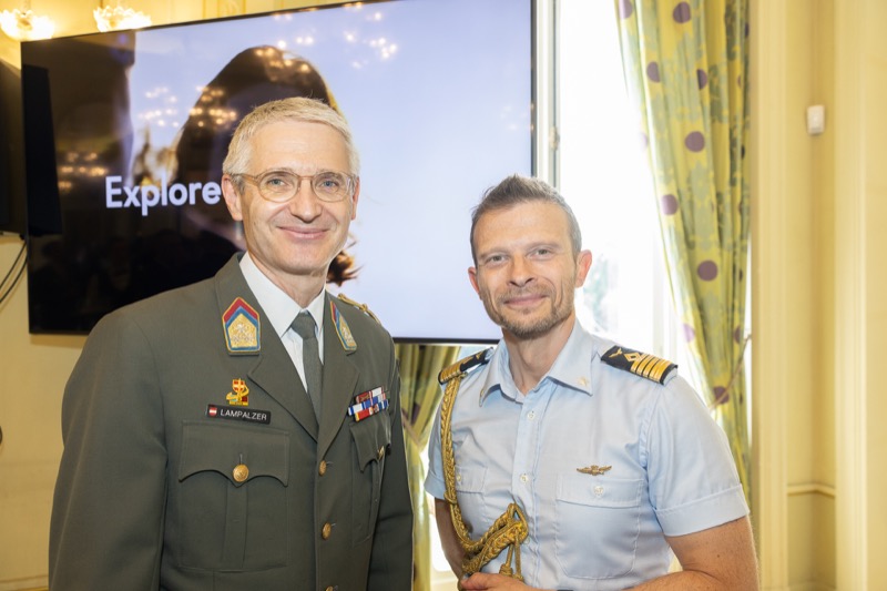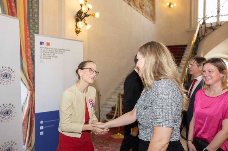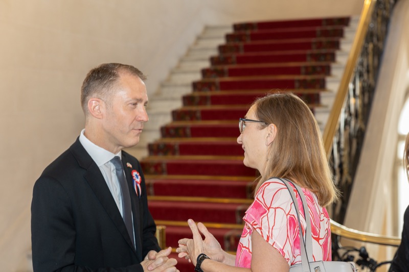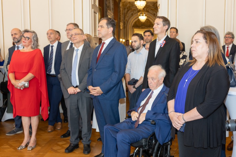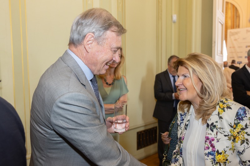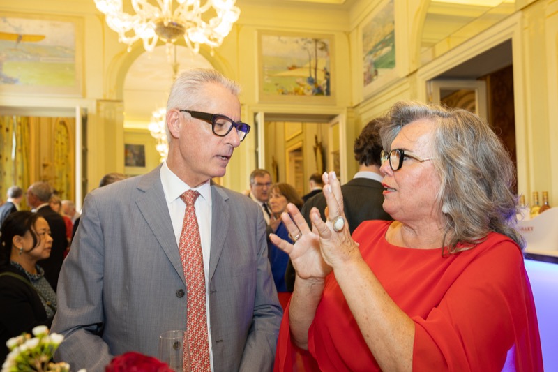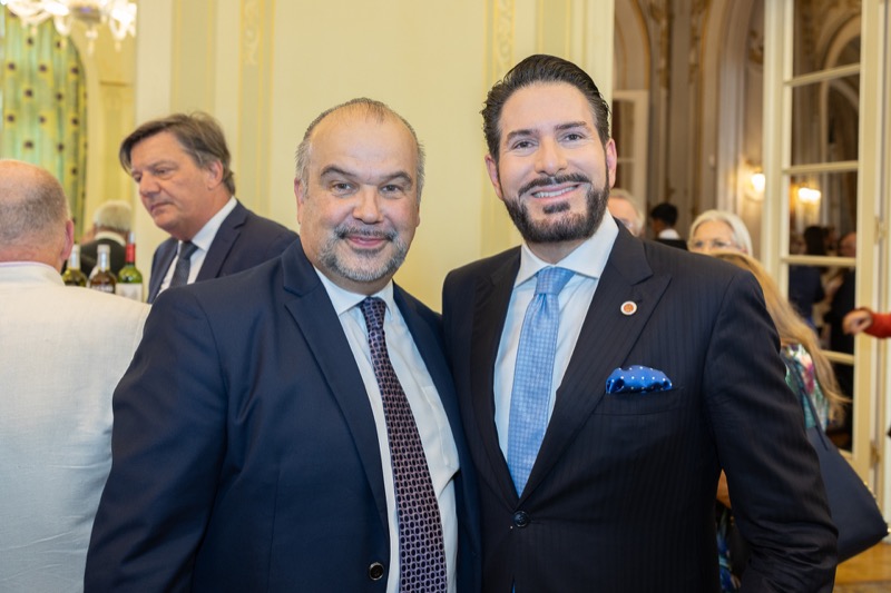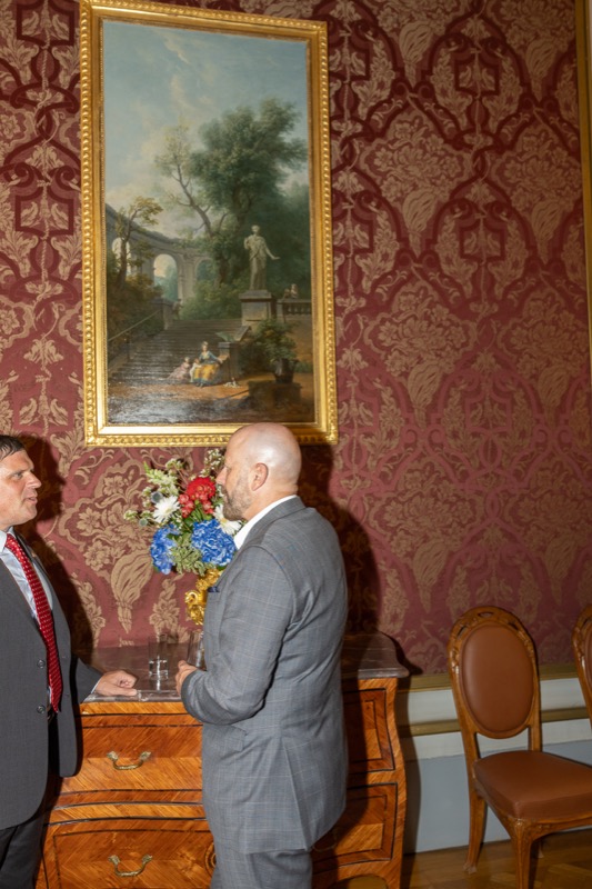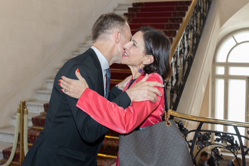 S.E. Matthieu Peyraud, Botschafter von Frankreich in Österreich, I.E. Delphine Hournau-Pouëzat, ständige Vertreterin Frankreichs bei den Internationalen Organisationen und I.E. Fatène Benhabylès-Foeth, ständige Vertreterin Frankreichs bei der OSZE, luden anlässlich des Nationalfeiertages zu einem Empfang in die prachtvolle Botschaft.