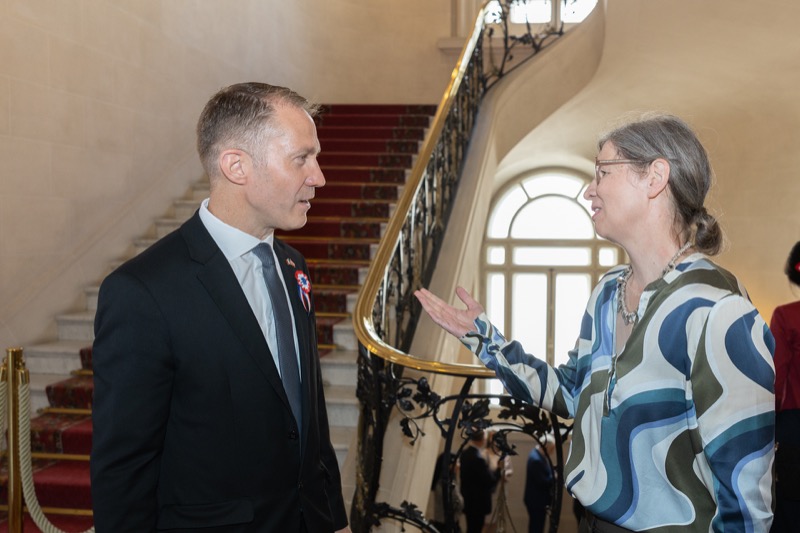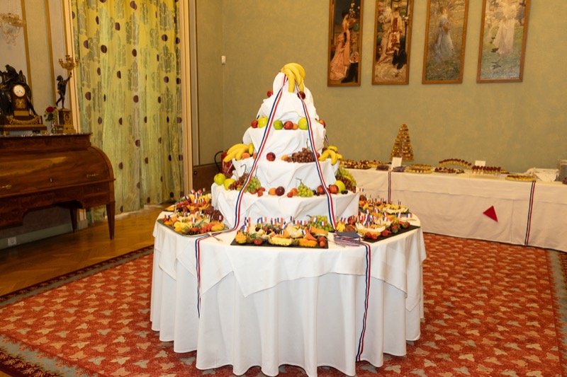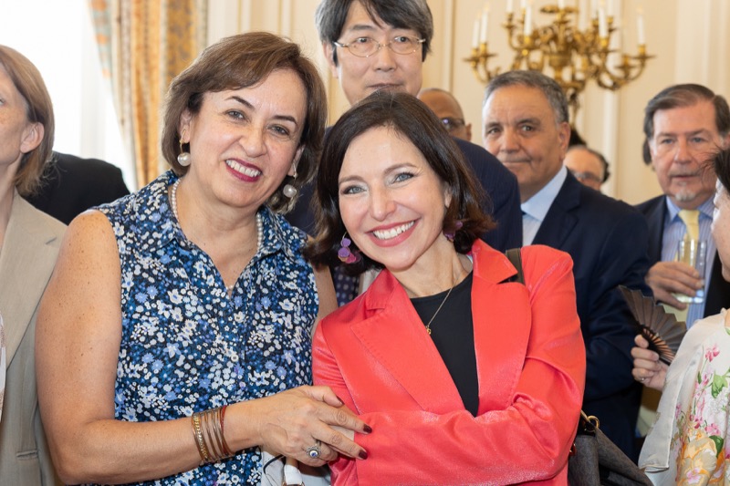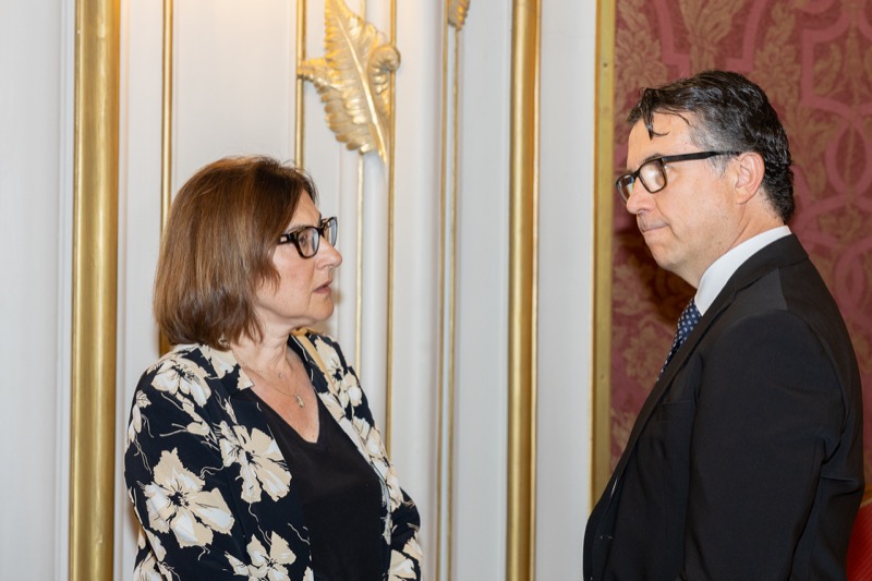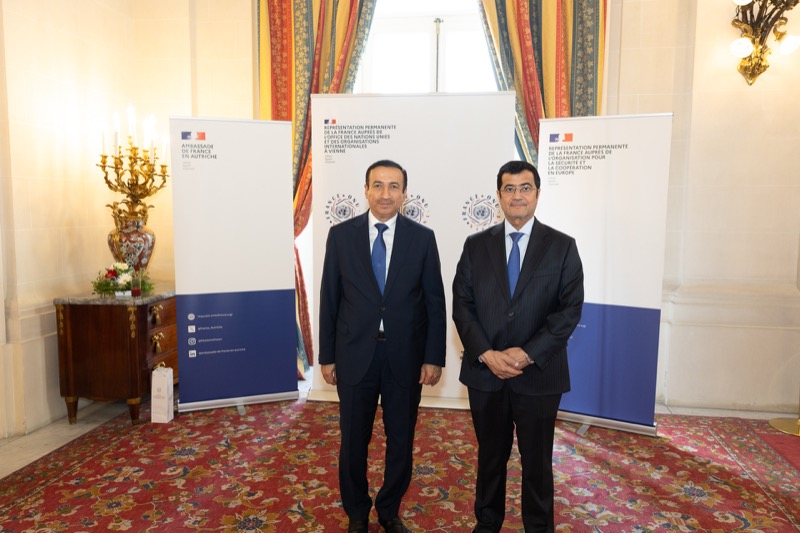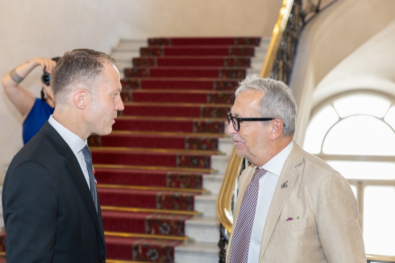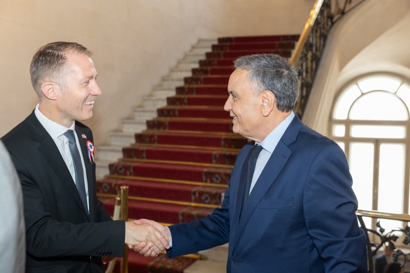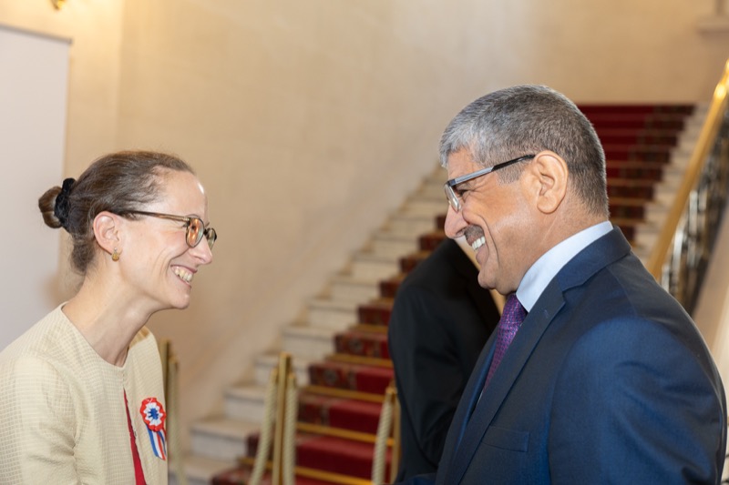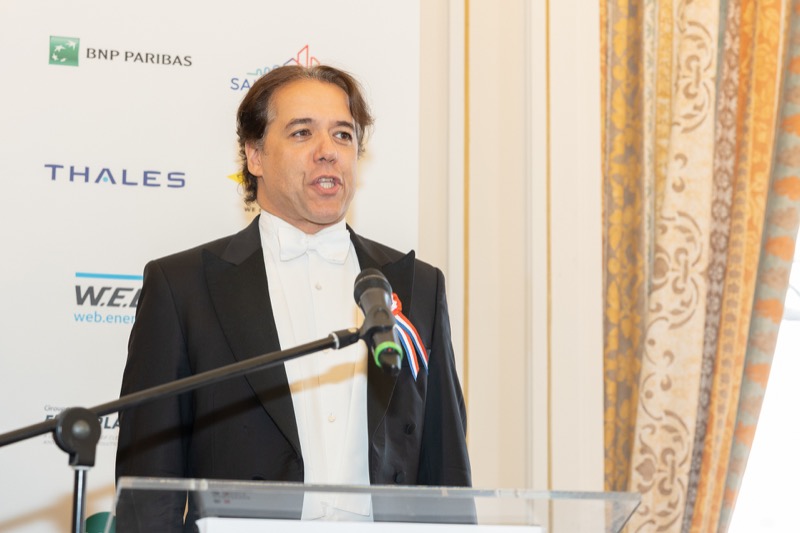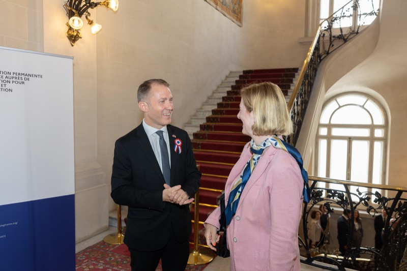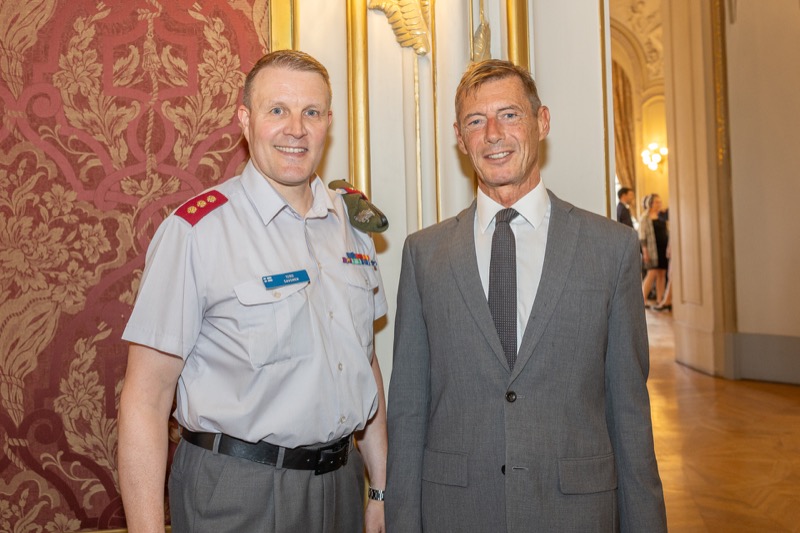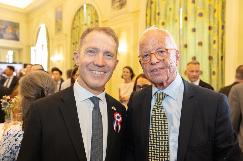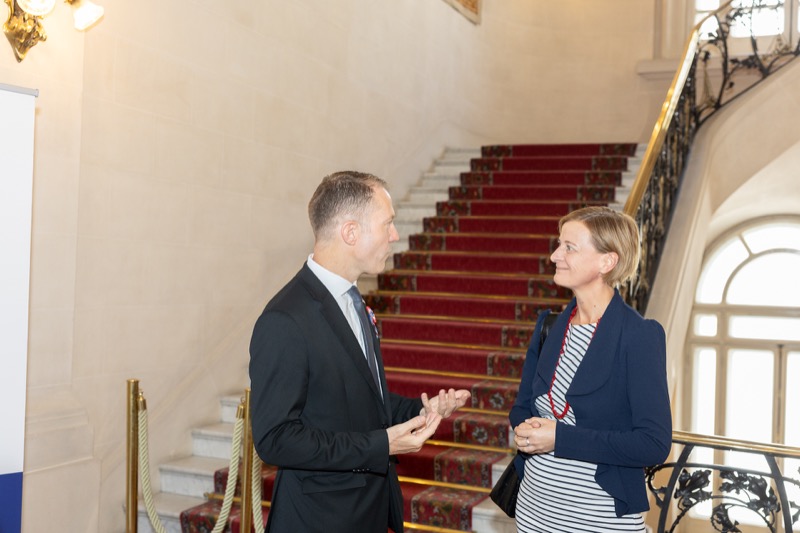 S.E. Matthieu Peyraud, Botschafter von Frankreich in Österreich, I.E. Delphine Hournau-Pouëzat, ständige Vertreterin Frankreichs bei den Internationalen Organisationen und I.E. Fatène Benhabylès-Foeth, ständige Vertreterin Frankreichs bei der OSZE, luden anlässlich des Nationalfeiertages zu einem Empfang in die prachtvolle Botschaft.