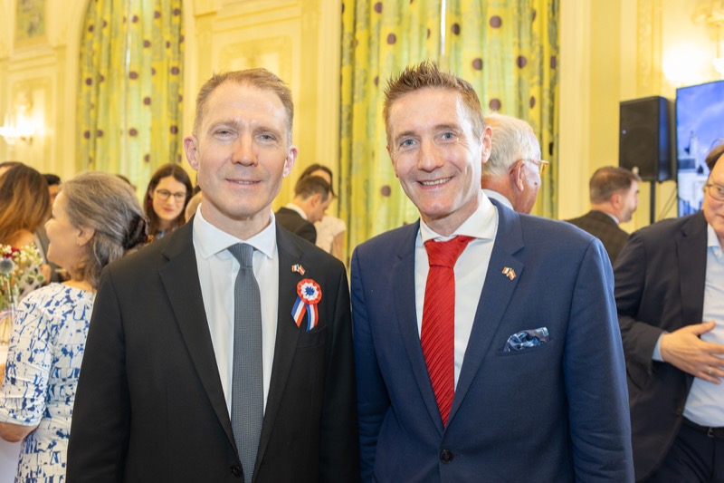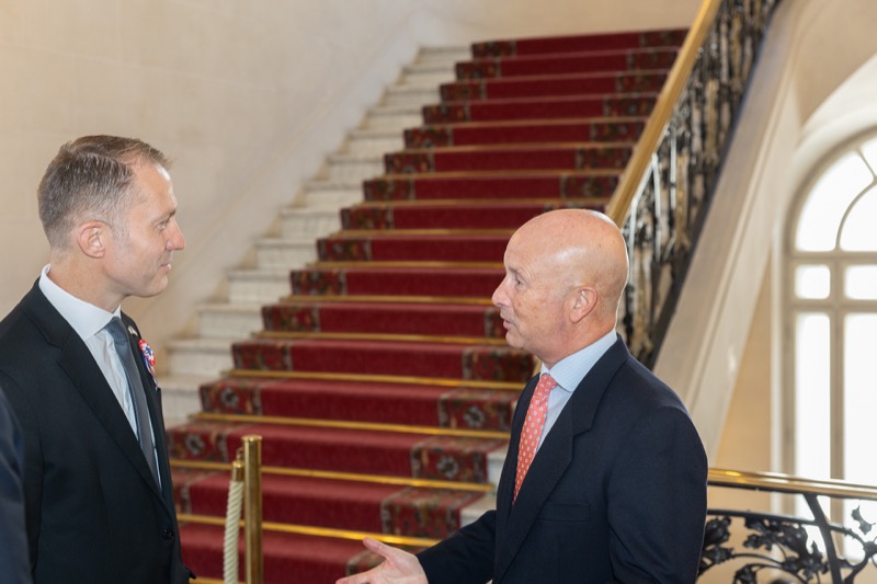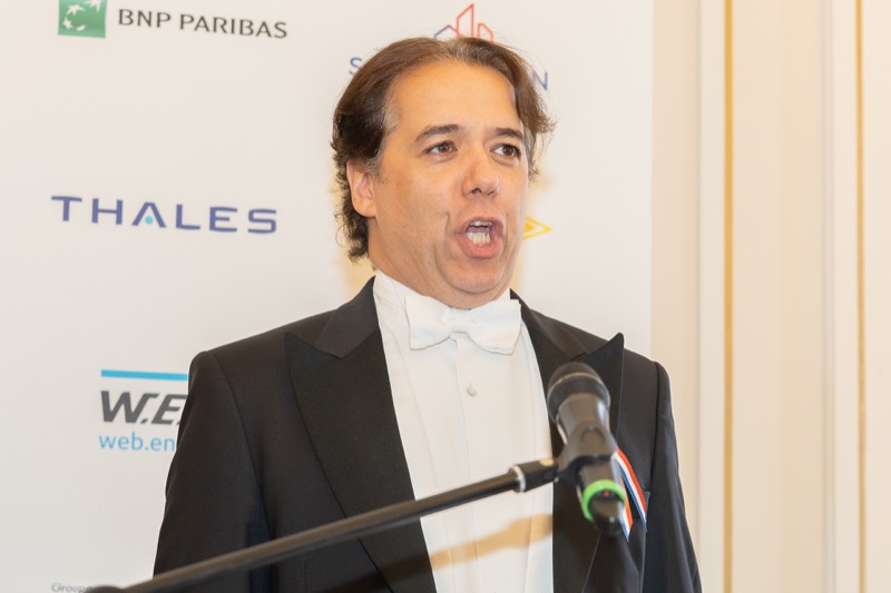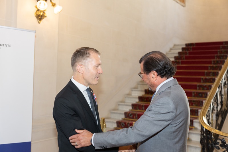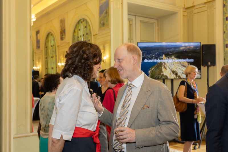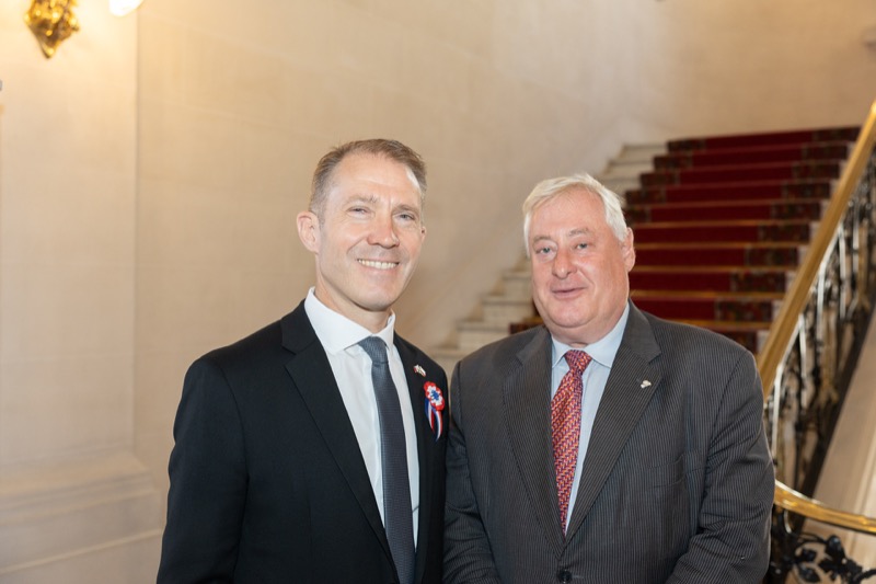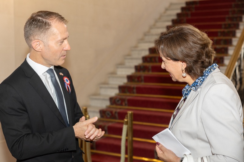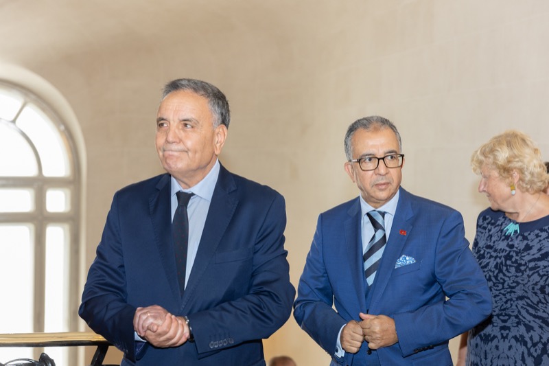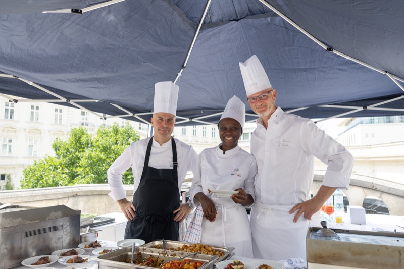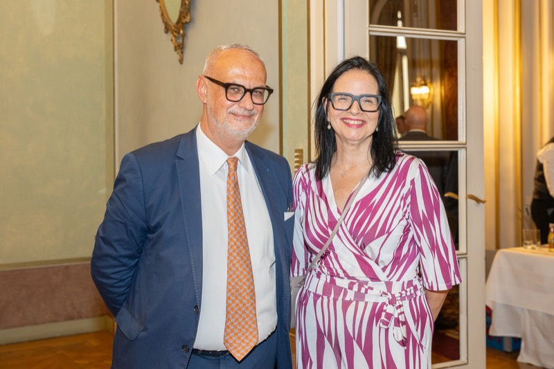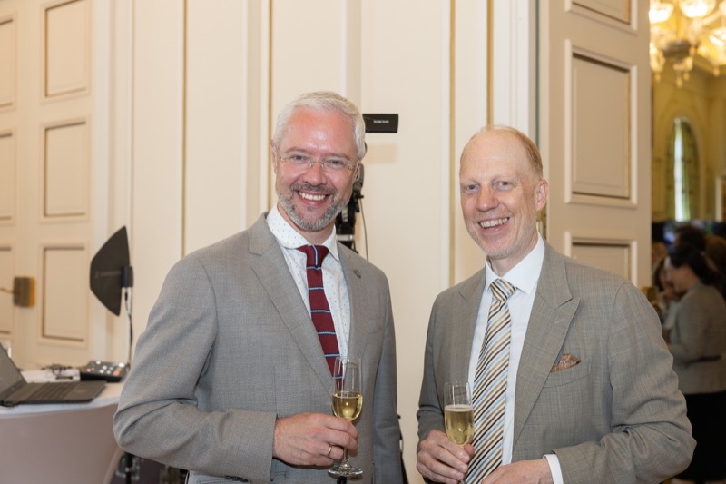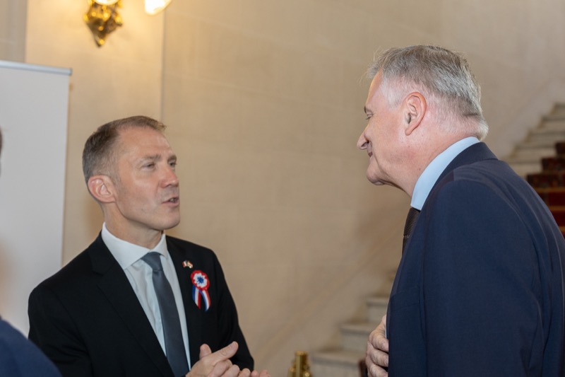 S.E. Matthieu Peyraud, Botschafter von Frankreich in Österreich, I.E. Delphine Hournau-Pouëzat, ständige Vertreterin Frankreichs bei den Internationalen Organisationen und I.E. Fatène Benhabylès-Foeth, ständige Vertreterin Frankreichs bei der OSZE, luden anlässlich des Nationalfeiertages zu einem Empfang in die prachtvolle Botschaft.