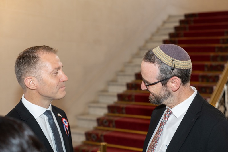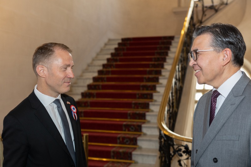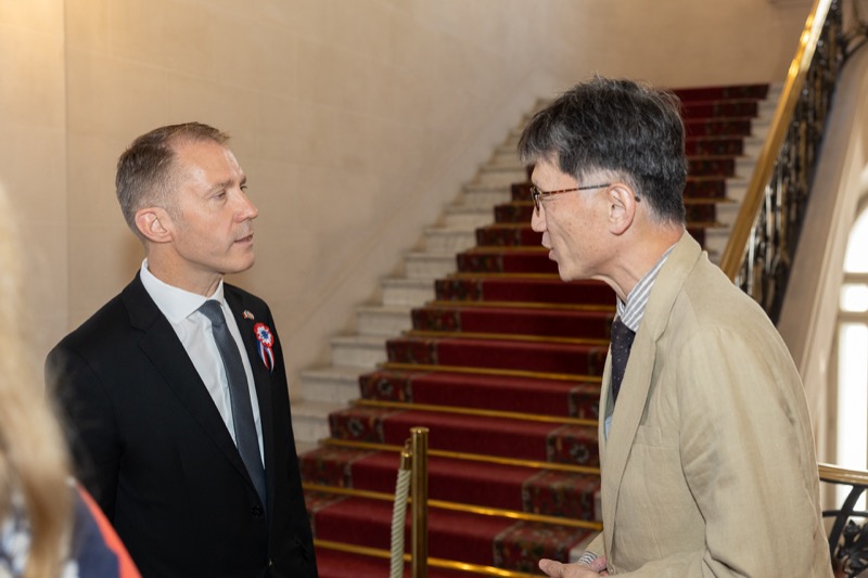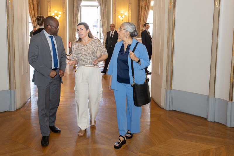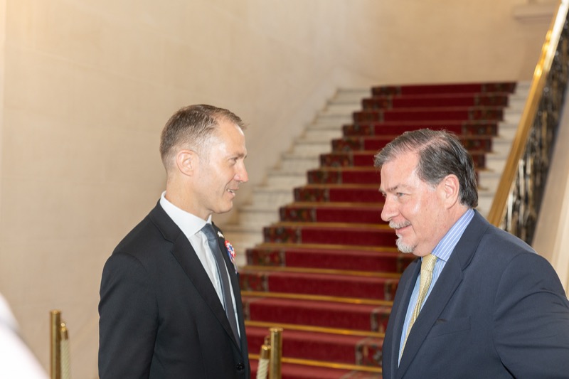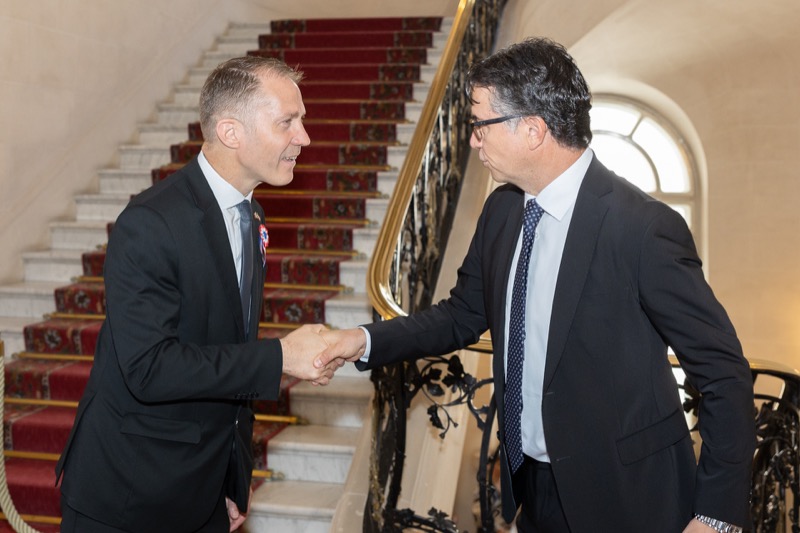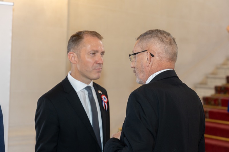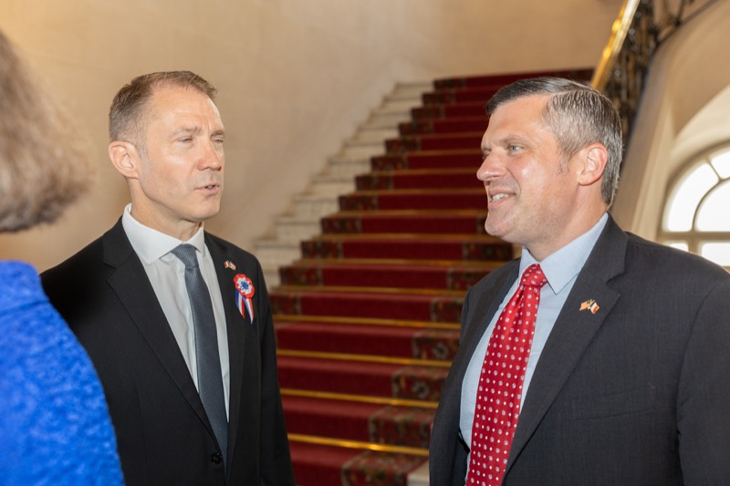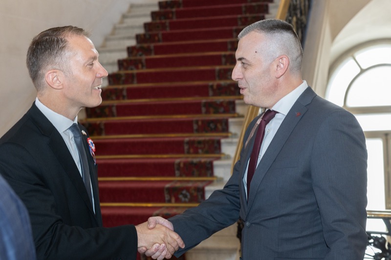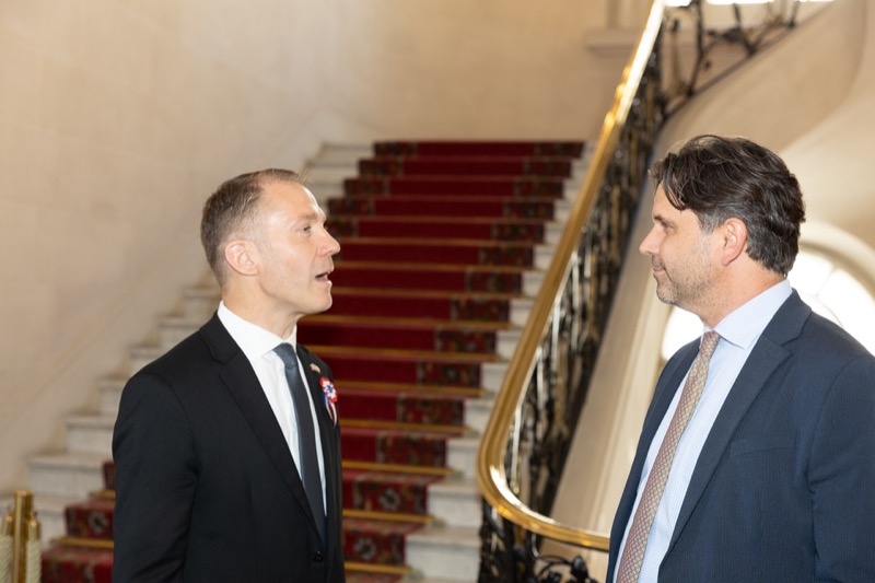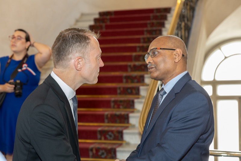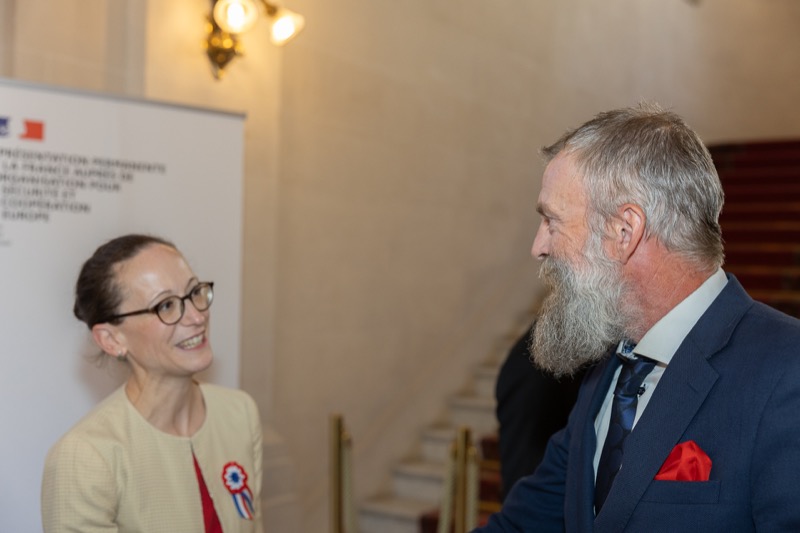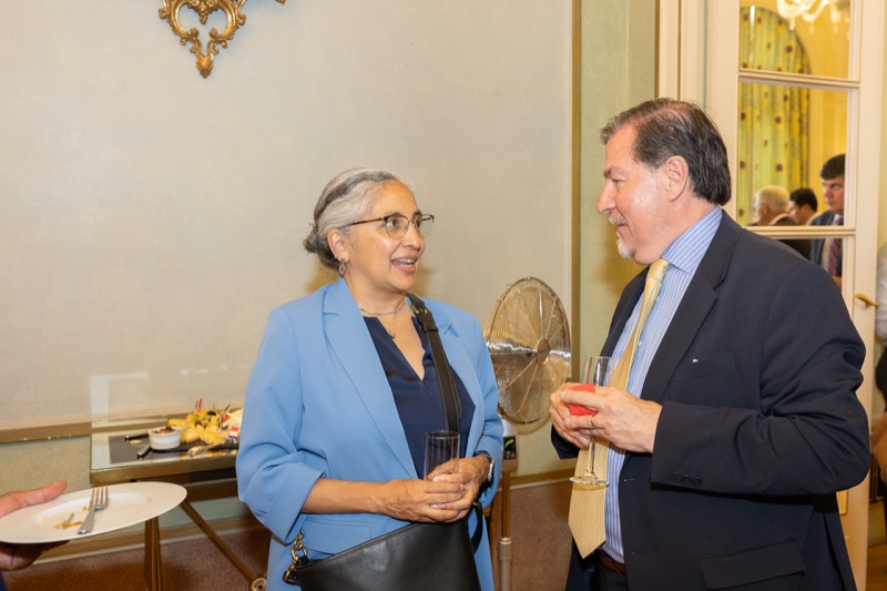 S.E. Matthieu Peyraud, Botschafter von Frankreich in Österreich, I.E. Delphine Hournau-Pouëzat, ständige Vertreterin Frankreichs bei den Internationalen Organisationen und I.E. Fatène Benhabylès-Foeth, ständige Vertreterin Frankreichs bei der OSZE, luden anlässlich des Nationalfeiertages zu einem Empfang in die prachtvolle Botschaft.