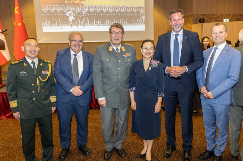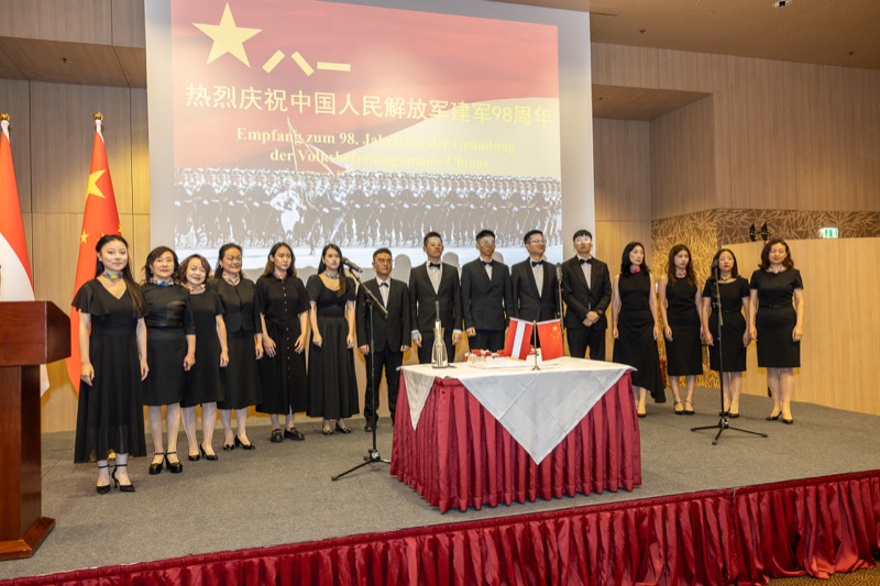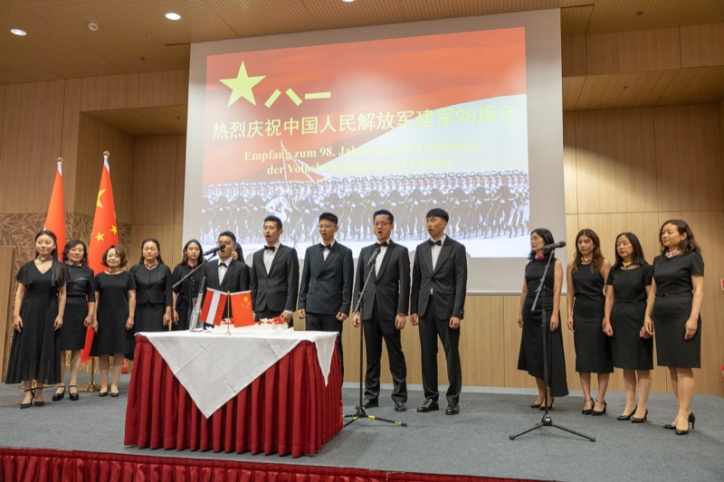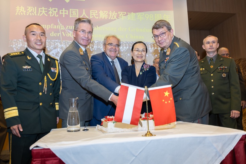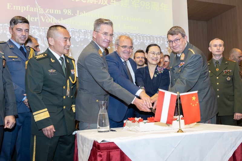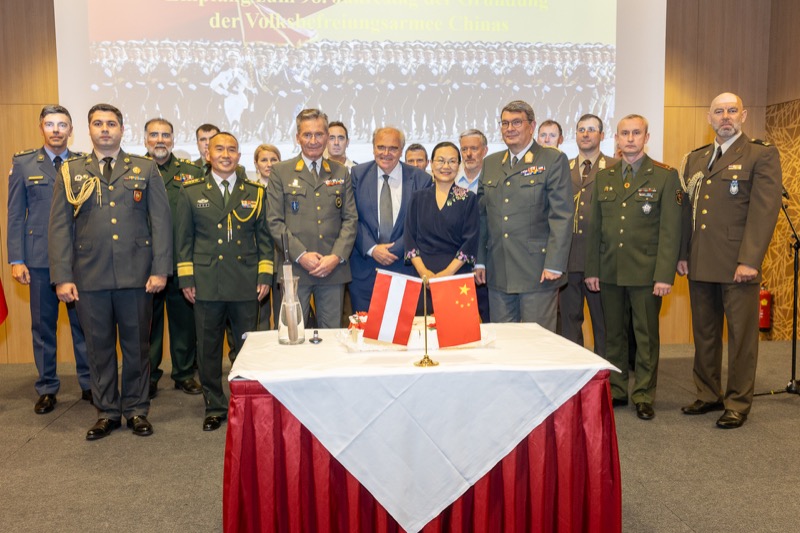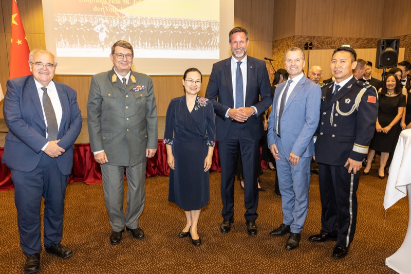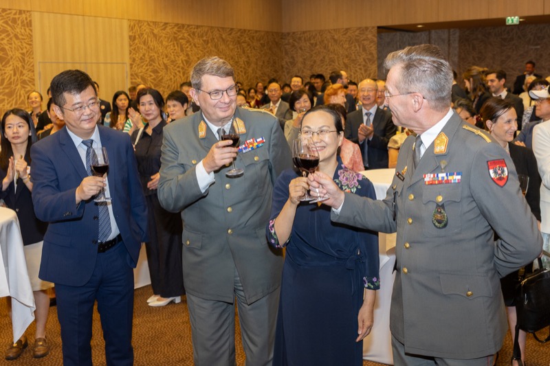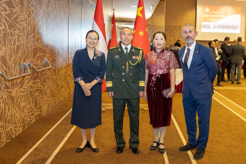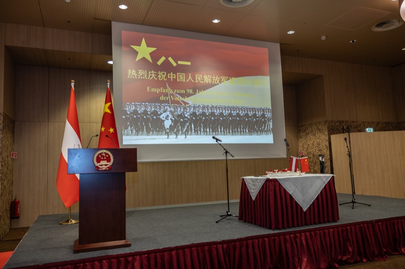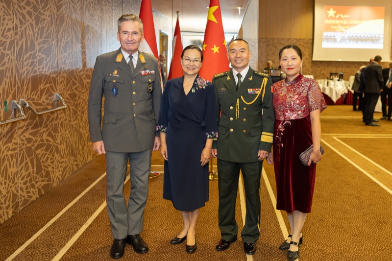Anlässlich des 98. Jahrestages der Gründung der Volksbefreiungsarmee Chinas lud der Verteidigungsattaché bei der Botschaft der VR China in der Republik Österreich, Großoberst Dr. Xinqi JI, zu einem Empfang in das Hotel Savoyen Vienna.