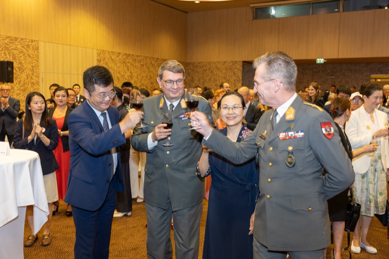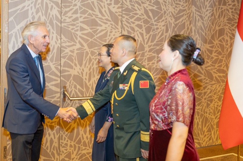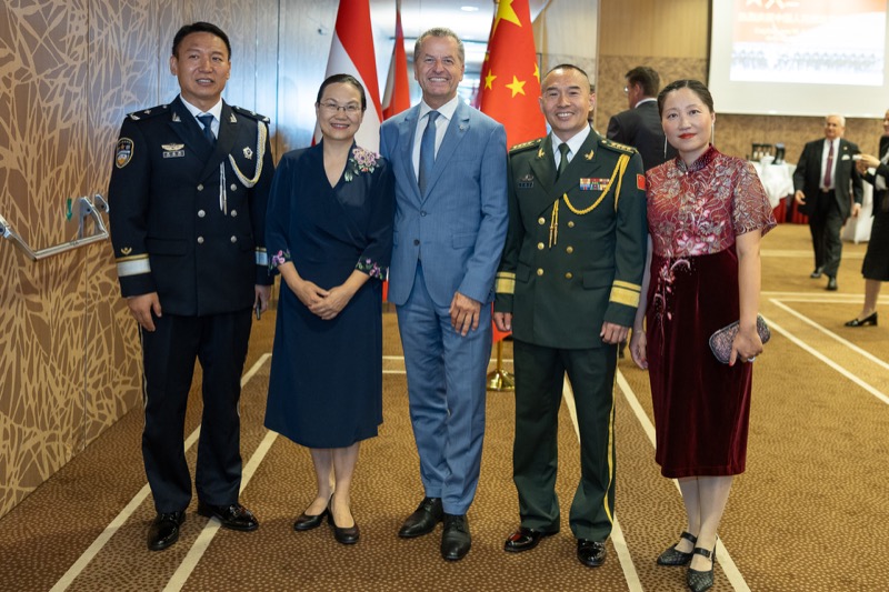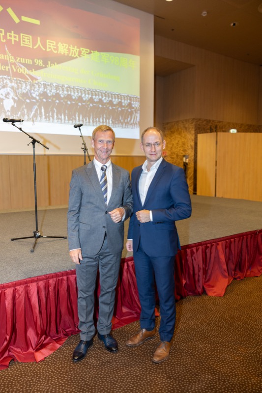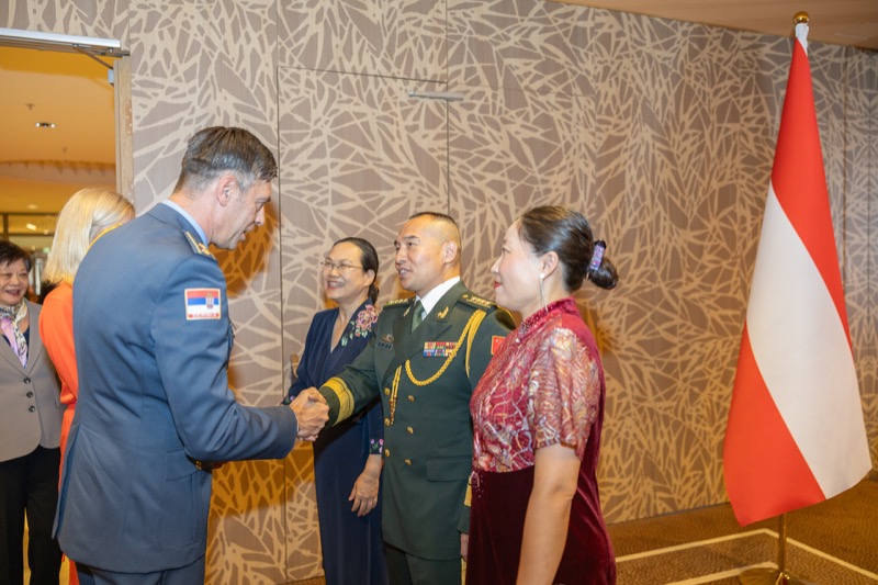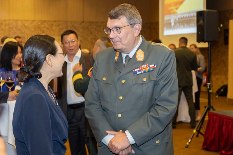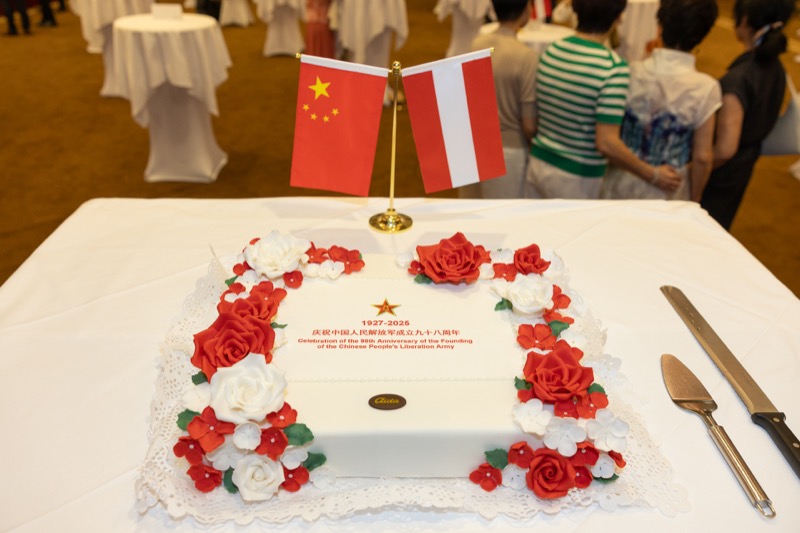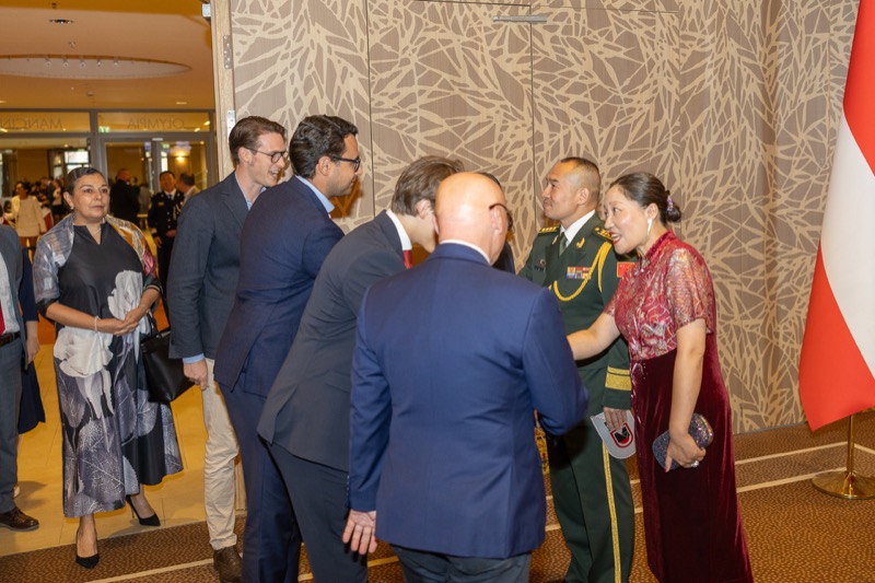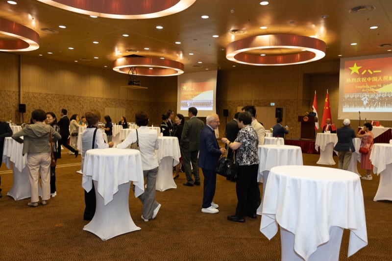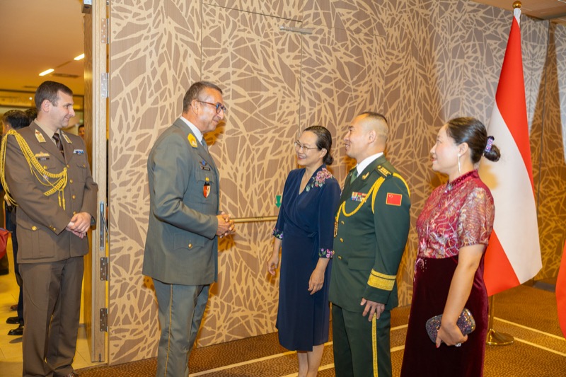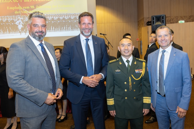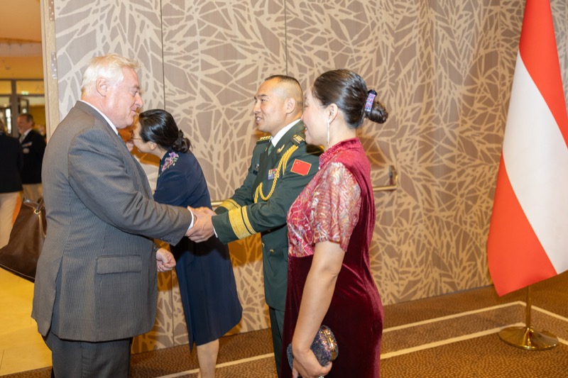 Anlässlich des 98. Jahrestages der Gründung der Volksbefreiungsarmee Chinas lud der Verteidigungsattaché bei der Botschaft der VR China in der Republik Österreich, Großoberst Dr. Xinqi JI, zu einem Empfang in das Hotel Savoyen Vienna.