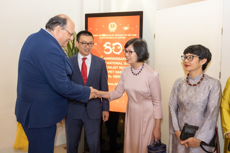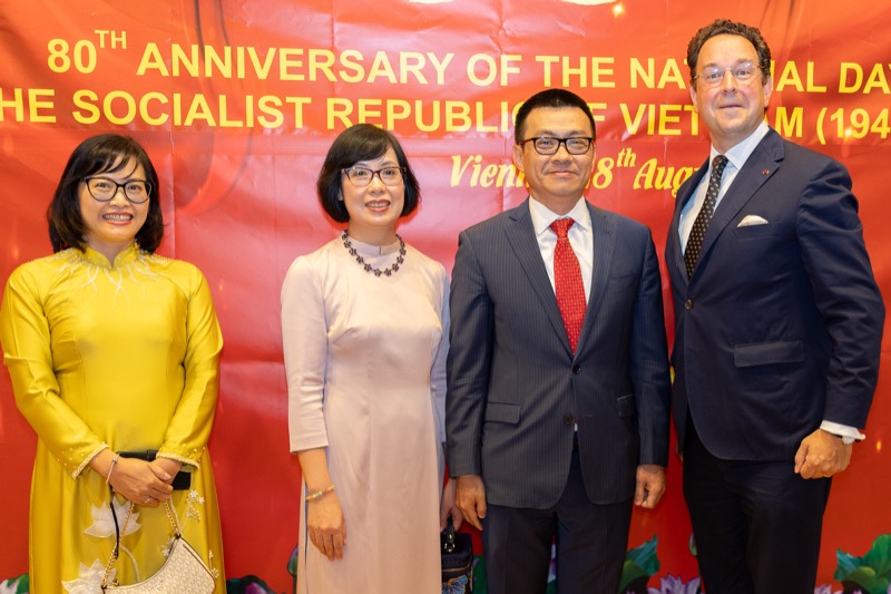 Anlässlich des 80. Nationalfeiertages der Sozialistischen Republik Viet Nam, luden S.E. VU Le Thai Hoang, Botschafter und Ständiger Vertreter von Viet Nam, und Frau NGO Thi Thu Ha, zu einem Empfang in das Palais Niederösterreich.
