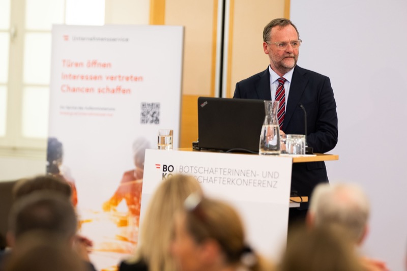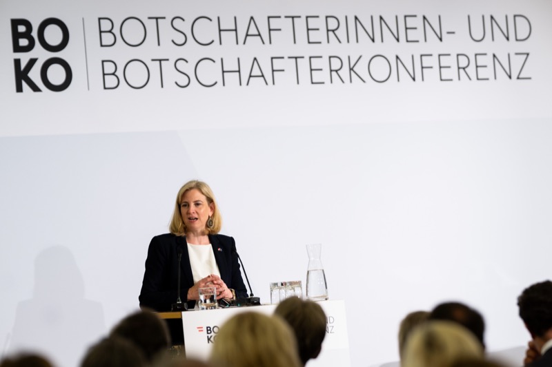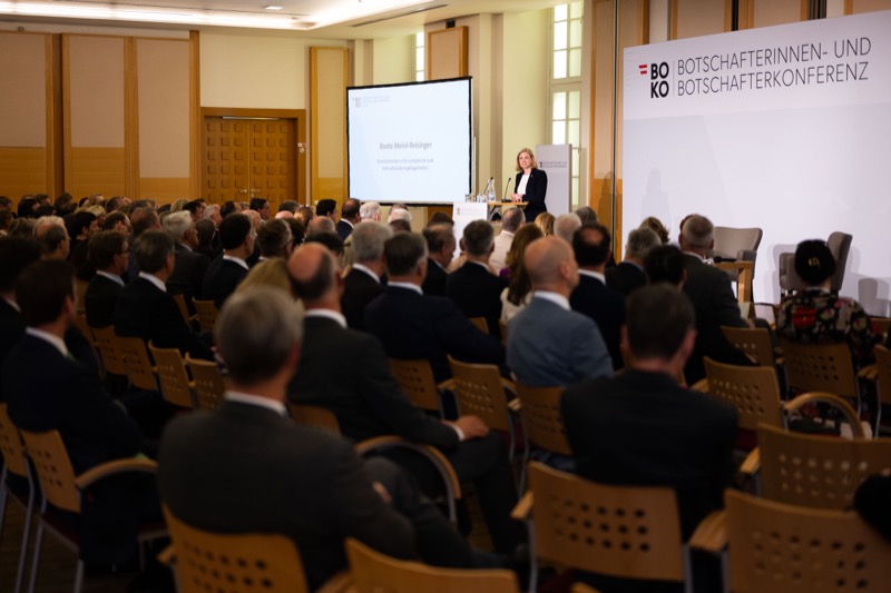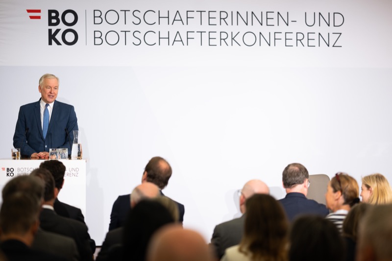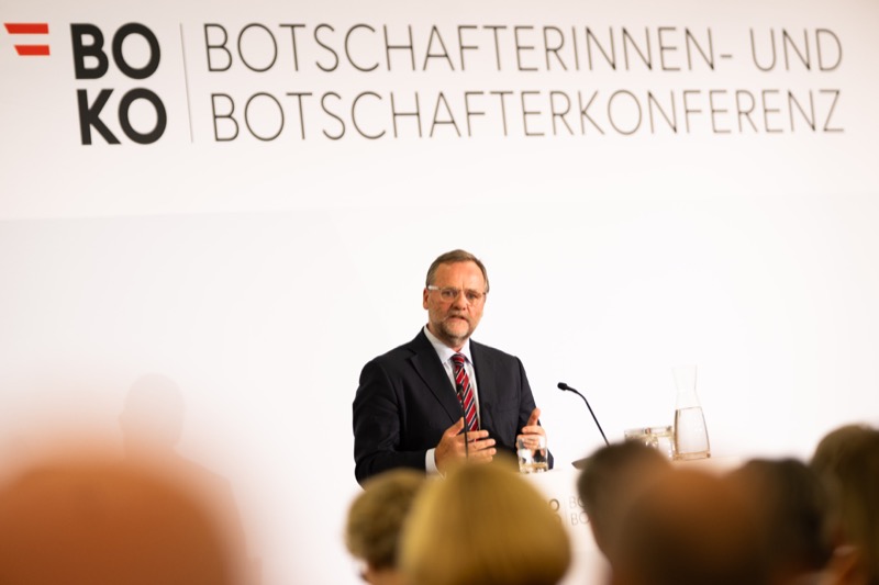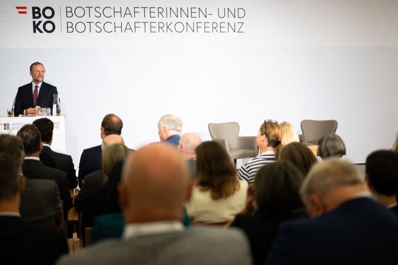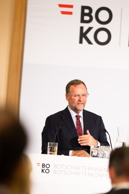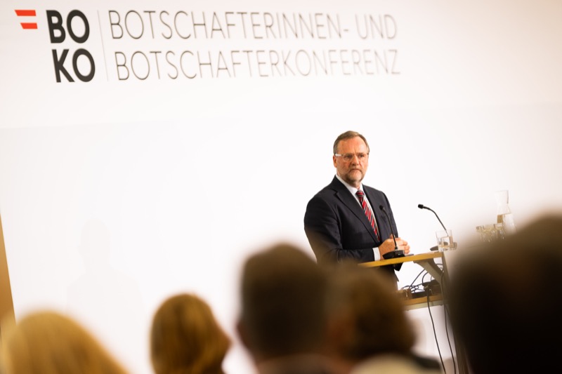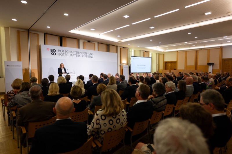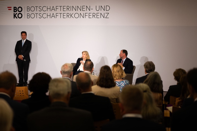 Anlässlich der jährlichen Botschafterinnen- und Botschafterkonferenz (BOKO) des Außenministeriums trafen sich heuer wieder mehr als 100 österreichische Botschafterinnen und Botschafter, Ständige Vertreterinnen und Vertreter sowie Generalkonsulinnen und Generalkonsuln in Wien.