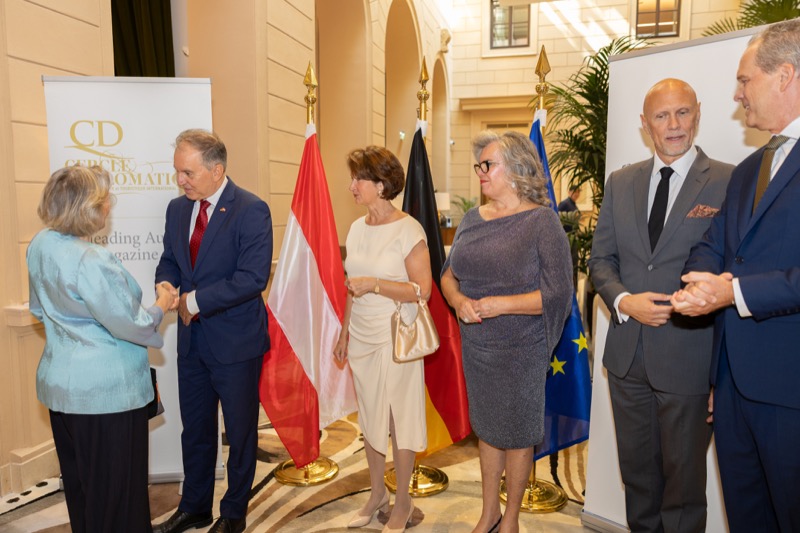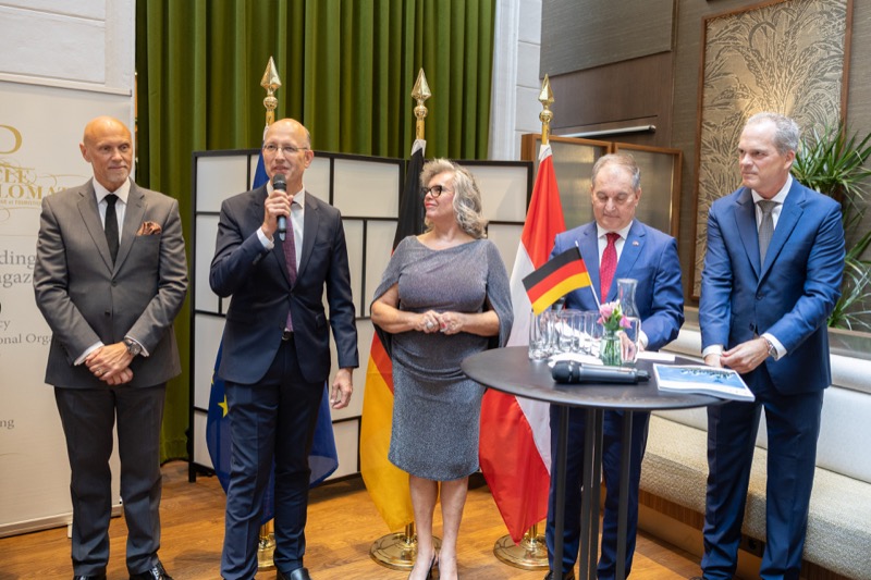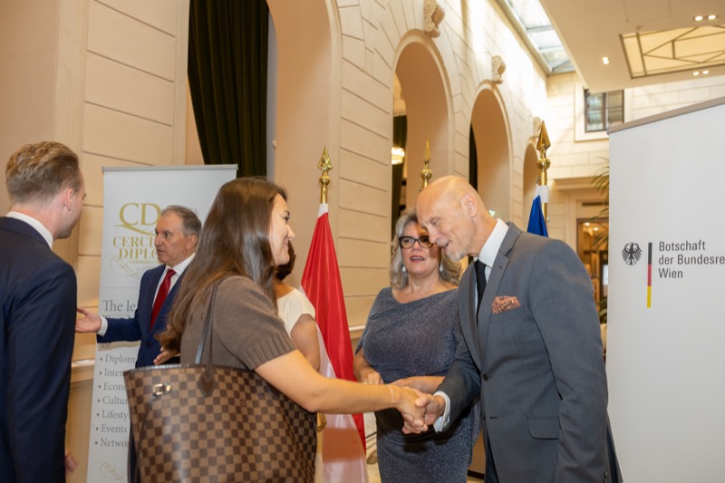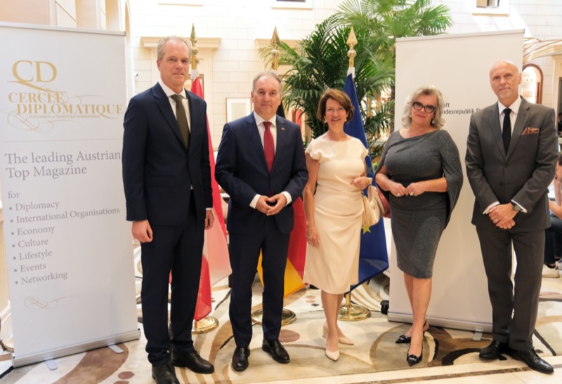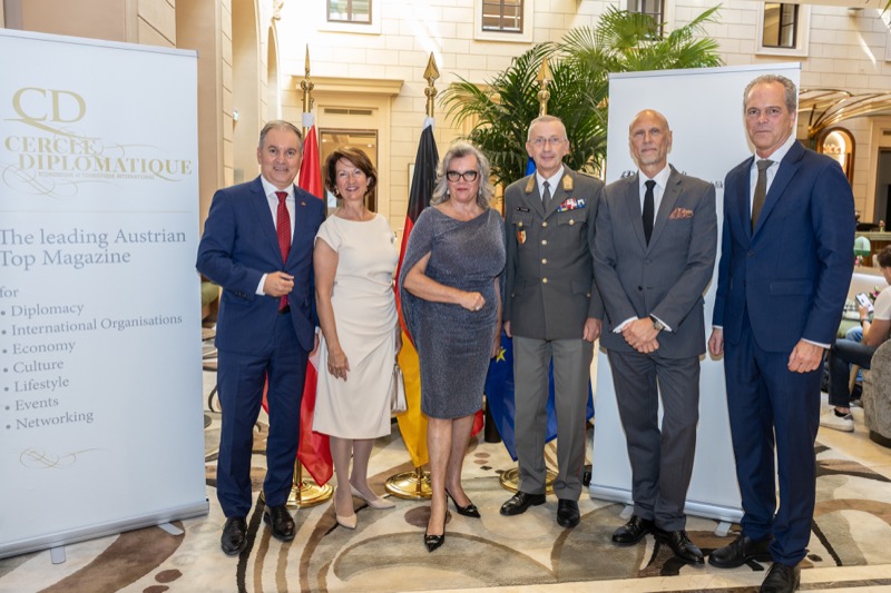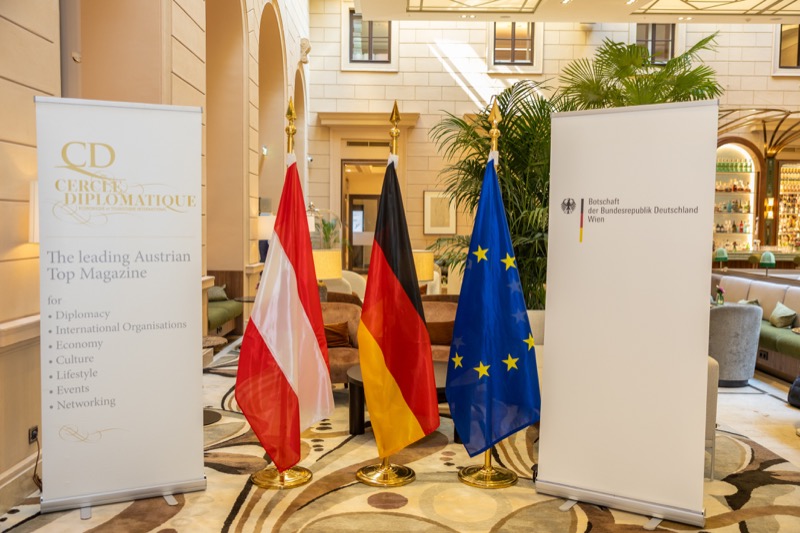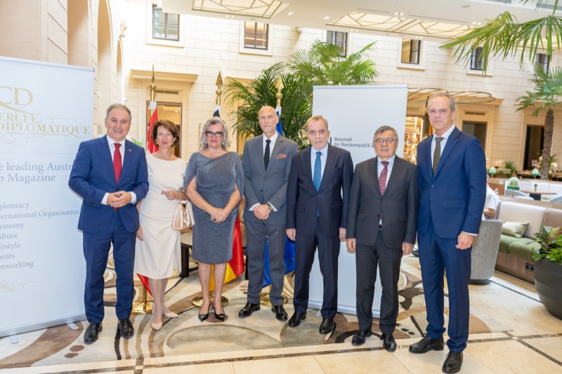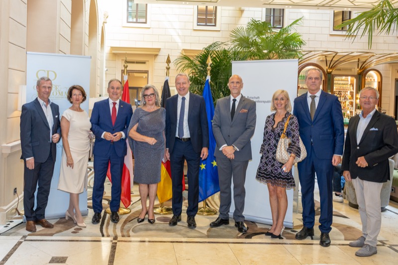 Die Herausgeber von CERCLE DIPLOMATIQUE, Andrea Fürnweger und Alexander Bursky, luden Freitagmittag zur Präsentation der Herbstausgabe des Magazins mit der Coverstory über die Bundesrepublik Deutschland. Gemeinsam mit General Manager Jürgen Ammerstorfer wurden rund 130 Gäste aus Diplomatie, Wirtschaft, Politik & Gesellschaft im frisch renovierten Anantara Palais Hansen Vienna Hotel empfangen.