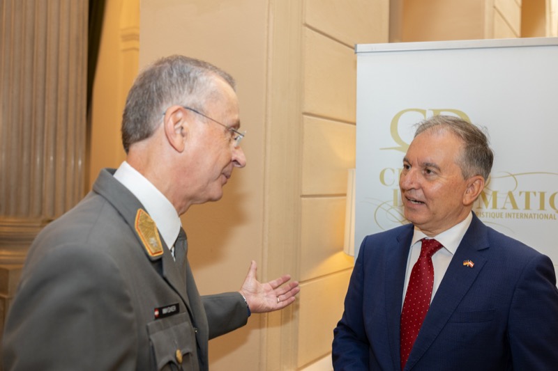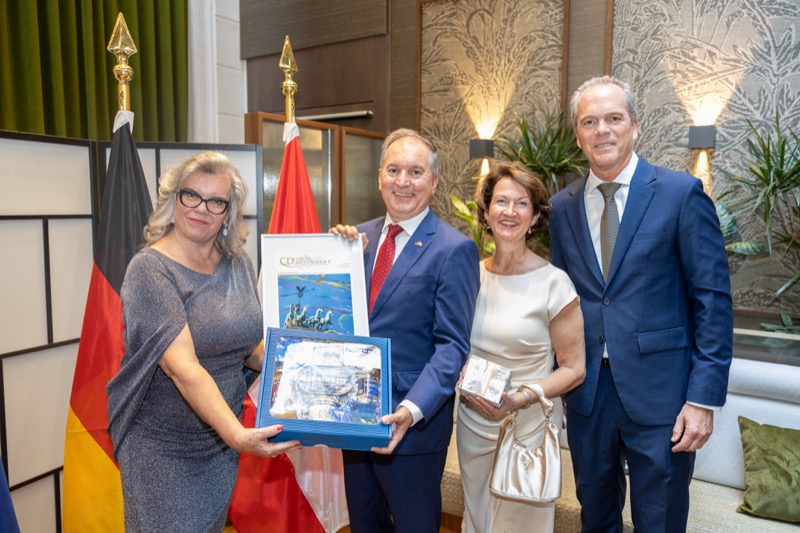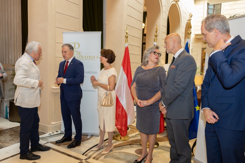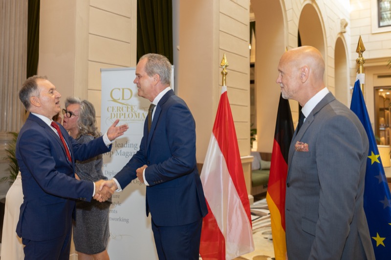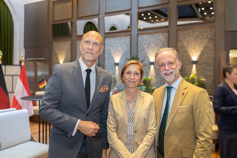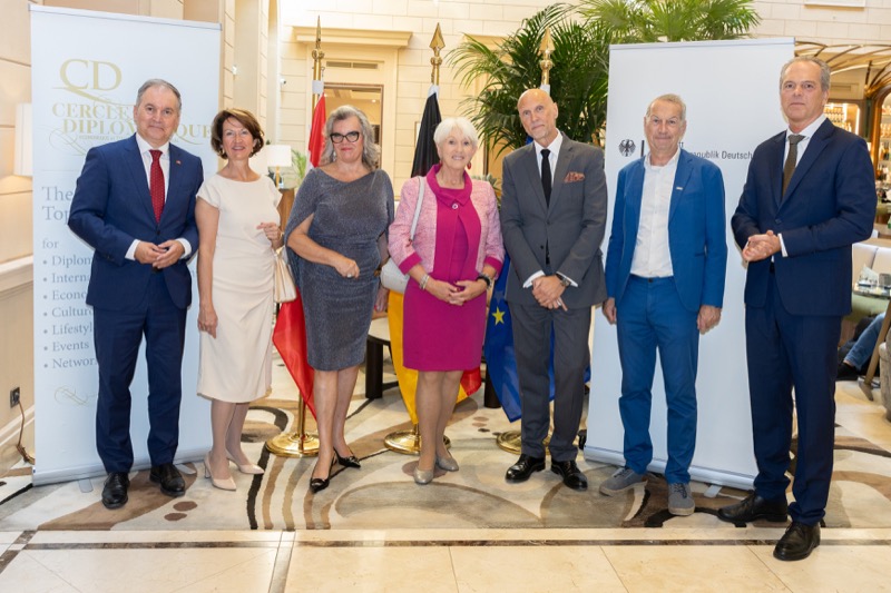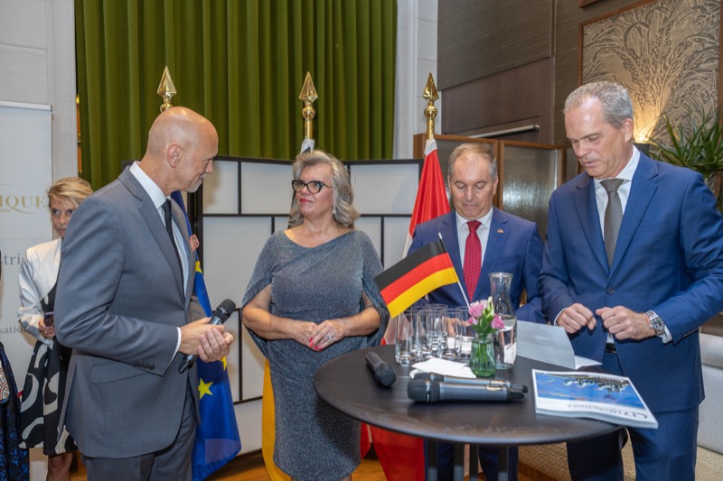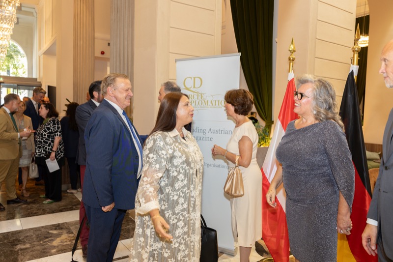 Die Herausgeber von CERCLE DIPLOMATIQUE, Andrea Fürnweger und Alexander Bursky, luden Freitagmittag zur Präsentation der Herbstausgabe des Magazins mit der Coverstory über die Bundesrepublik Deutschland. Gemeinsam mit General Manager Jürgen Ammerstorfer wurden rund 130 Gäste aus Diplomatie, Wirtschaft, Politik & Gesellschaft im frisch renovierten Anantara Palais Hansen Vienna Hotel empfangen.