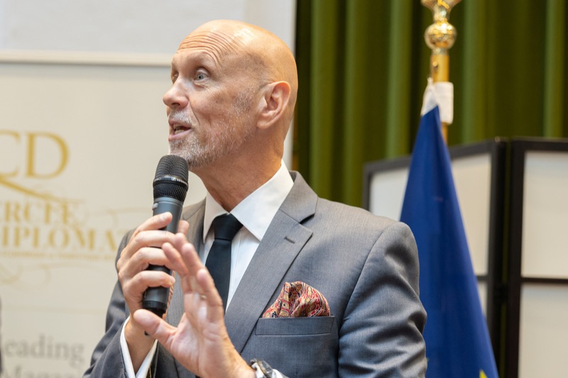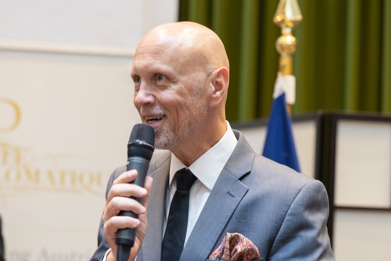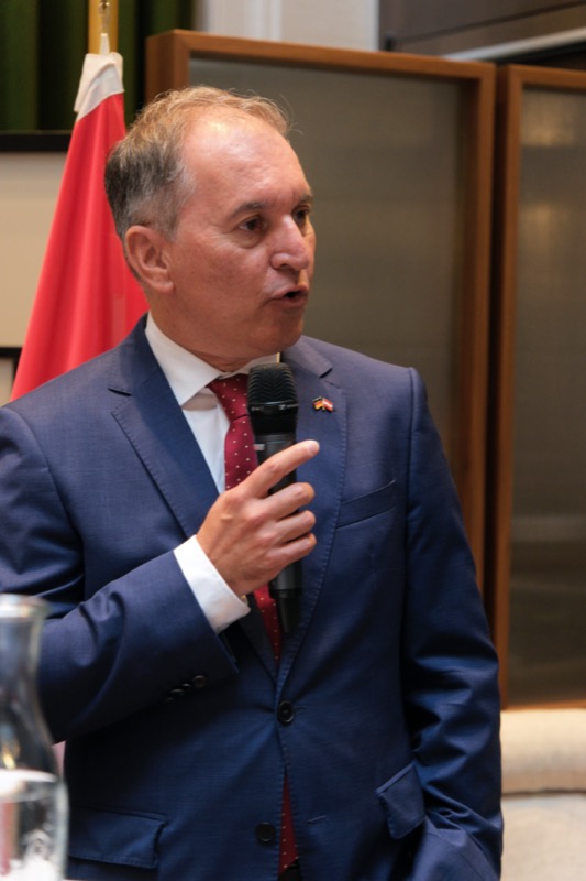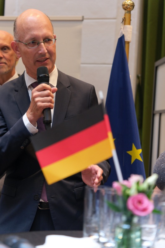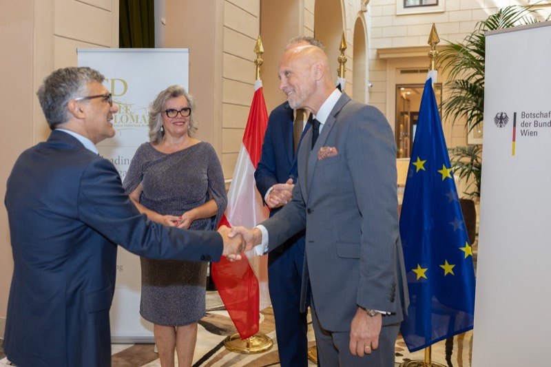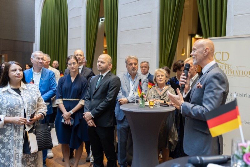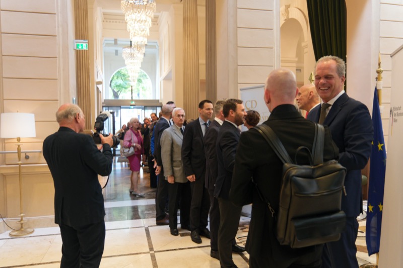 Nach den Begrüßungsworten von Jürgen Ammerstorfer, von Alexander Bursky sowie von Botschafter Martin Hermges, Leiter des Protokollreferats für Gaststaatsangelegenheiten, als Vertreter des Außenministeriums, kam der Ehrengast dieser Veranstaltung, S.E. Vito Cecere, Botschafter der Bundesrepublik Deutschland in Österreich, zu Wort.
