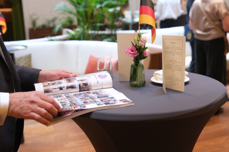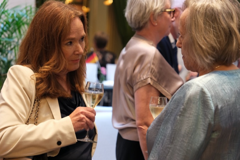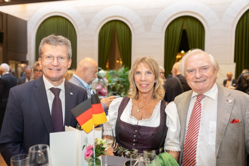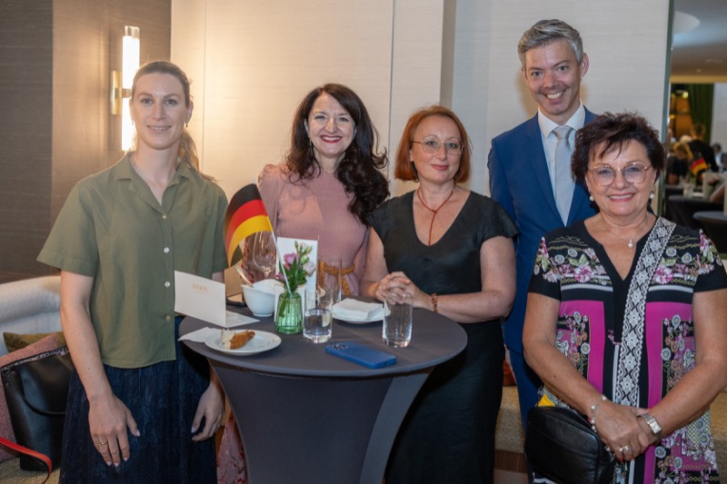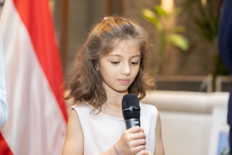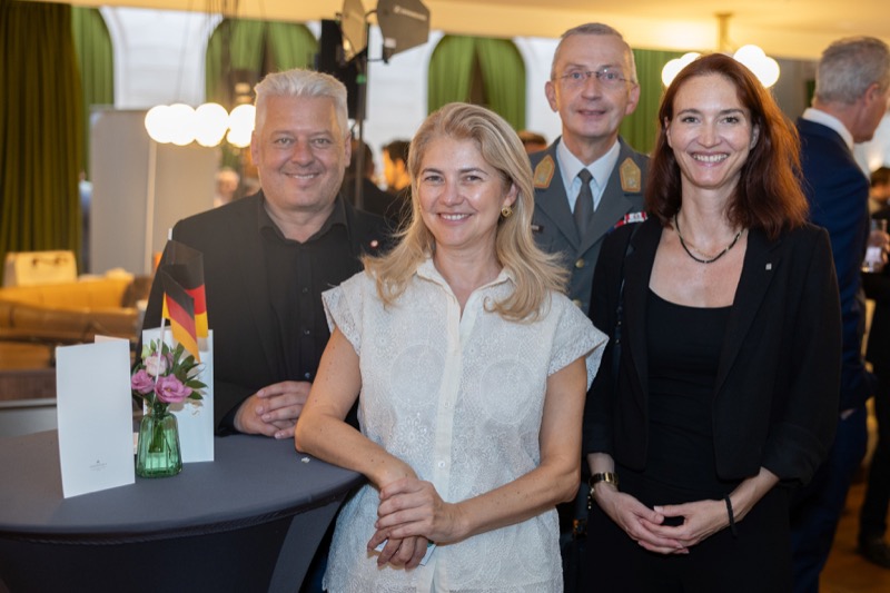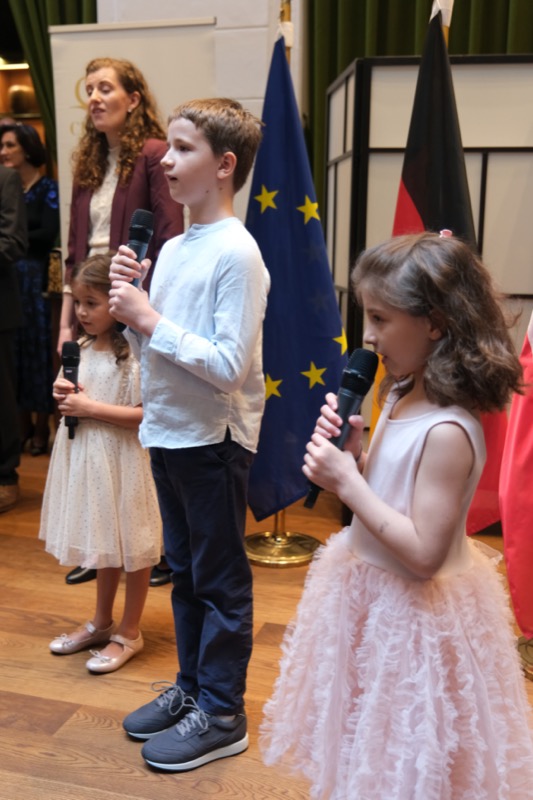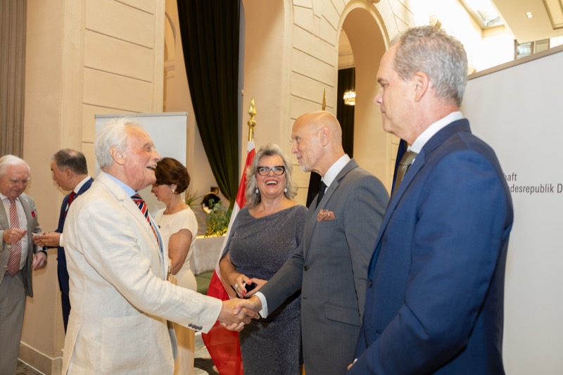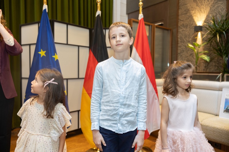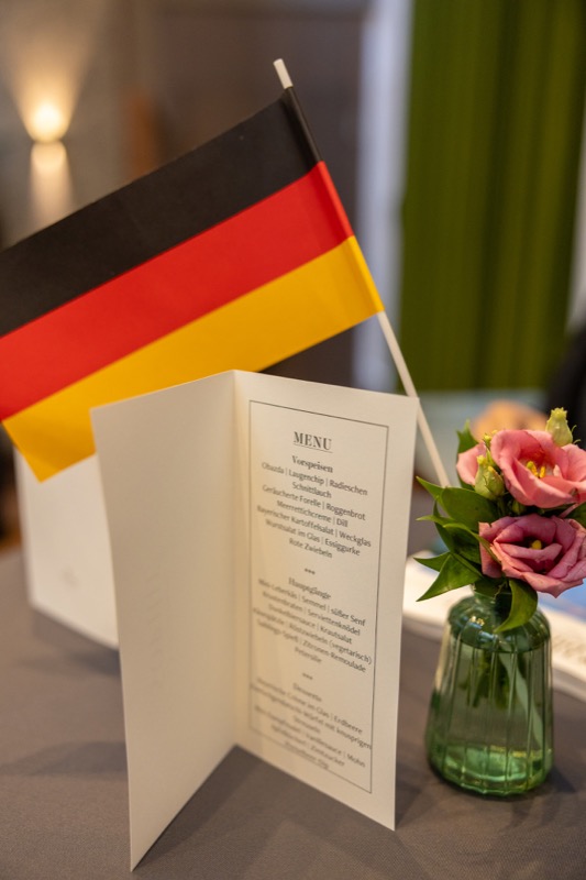 Nach den Ansprachen und der Überreichung von Delikatessenkörben aus dem Hause Schenkel sowie den berühmten handgefertigten Pralinen von Altmann&Kühne an Botschafter Cecere und seine Gattin Bettina Bundszus-Cecere, wurden die Gäste noch mit einer musikalischen Darbietung dreier Schüler:innen der Musical Munchkins, einer internationalen Musikschule in Wien, überrascht und sogar zum Mitsingen animiert. Danach wurde noch bis in den späten Nachmittag hinein bei deutschen Spezialitäten wie Käsespätzle, Krustenbraten oder Bayerischer Creme im Glas und kühlen Drinks gefeiert.