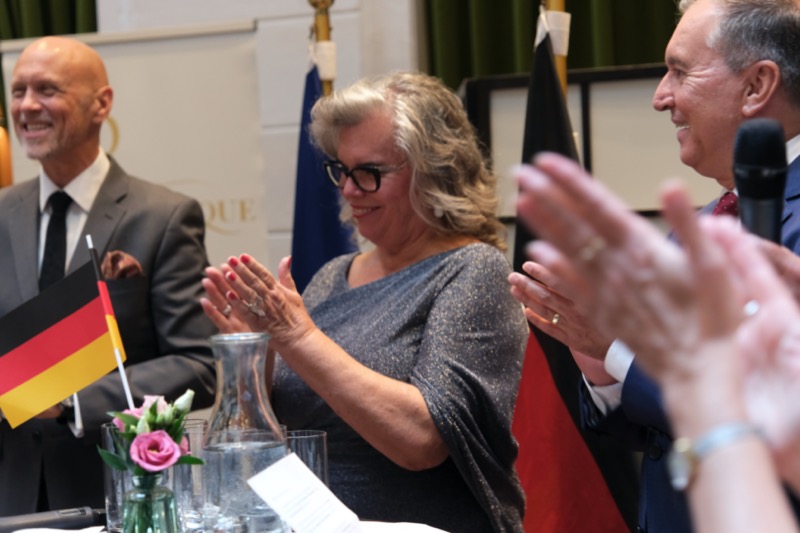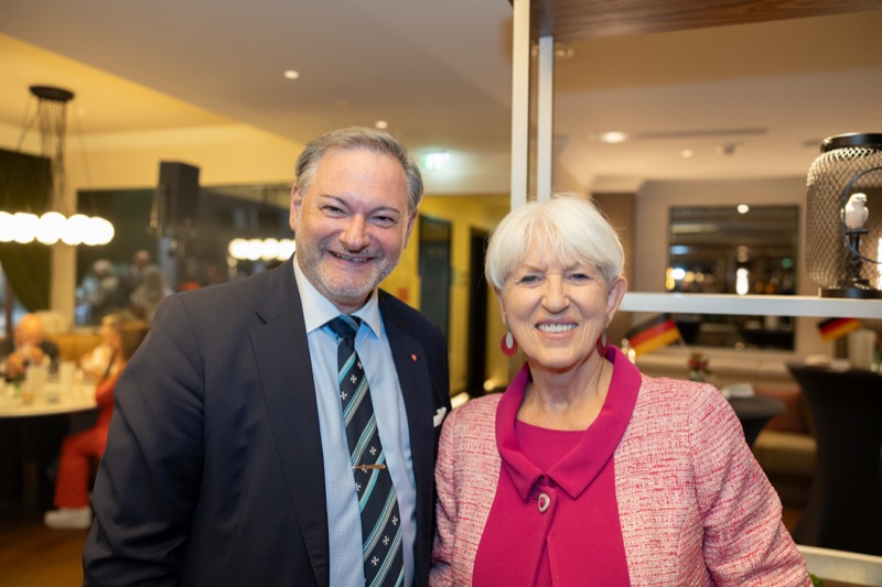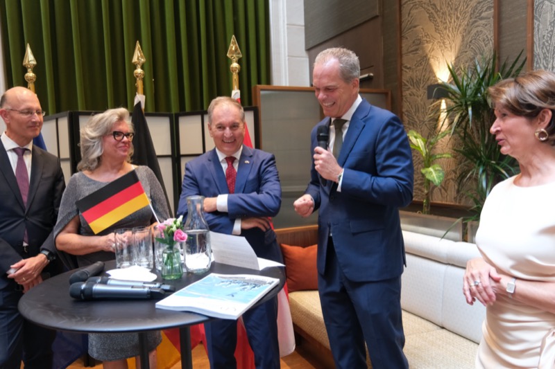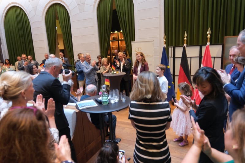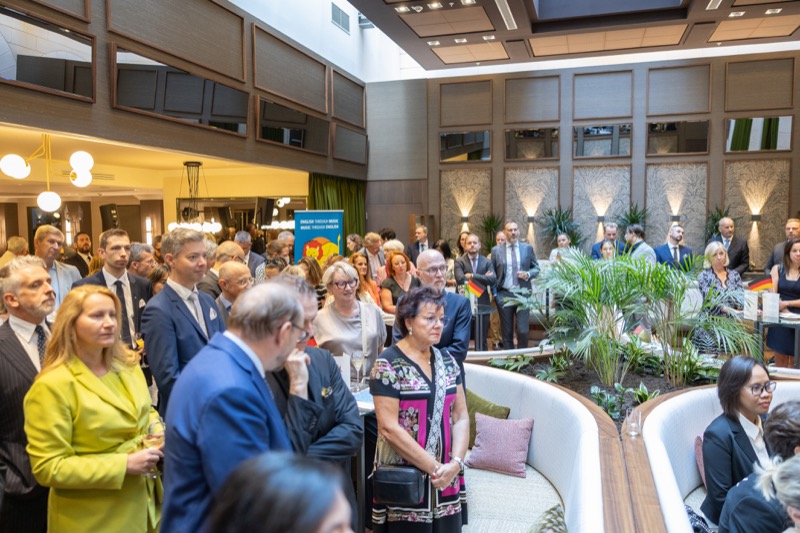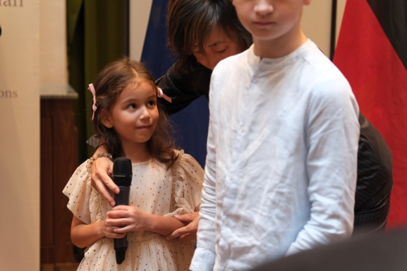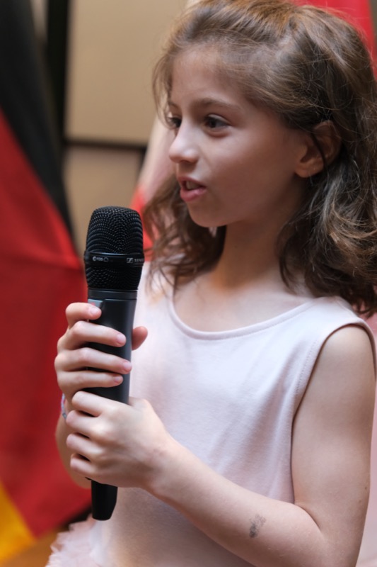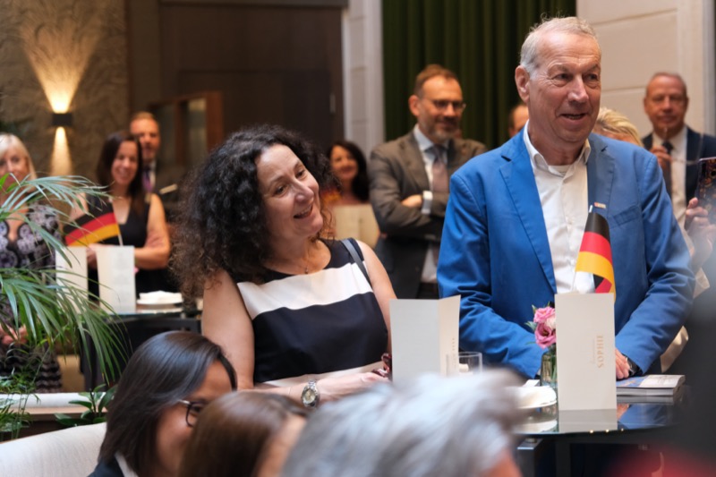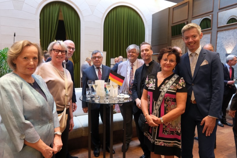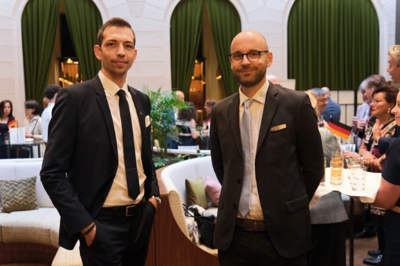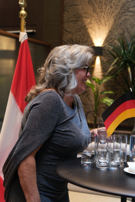 Nach den Ansprachen und der Überreichung von Delikatessenkörben aus dem Hause Schenkel sowie den berühmten handgefertigten Pralinen von Altmann&Kühne an Botschafter Cecere und seine Gattin Bettina Bundszus-Cecere, wurden die Gäste noch mit einer musikalischen Darbietung dreier Schüler:innen der Musical Munchkins, einer internationalen Musikschule in Wien, überrascht und sogar zum Mitsingen animiert. Danach wurde noch bis in den späten Nachmittag hinein bei deutschen Spezialitäten wie Käsespätzle, Krustenbraten oder Bayerischer Creme im Glas und kühlen Drinks gefeiert.
