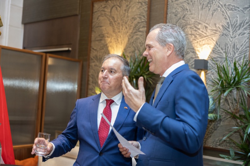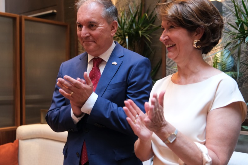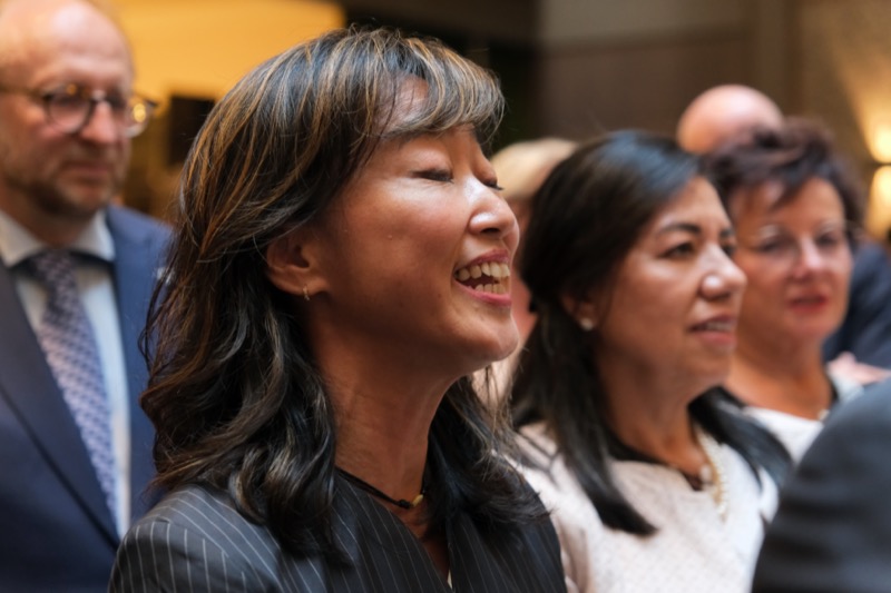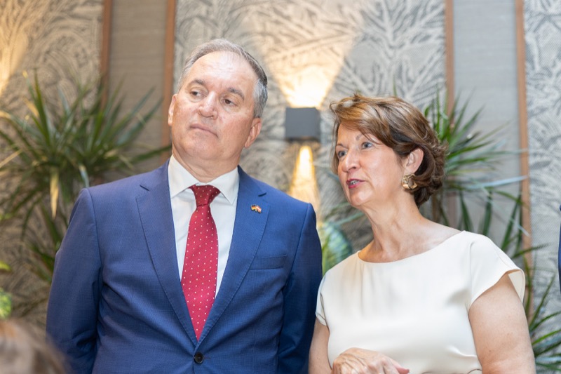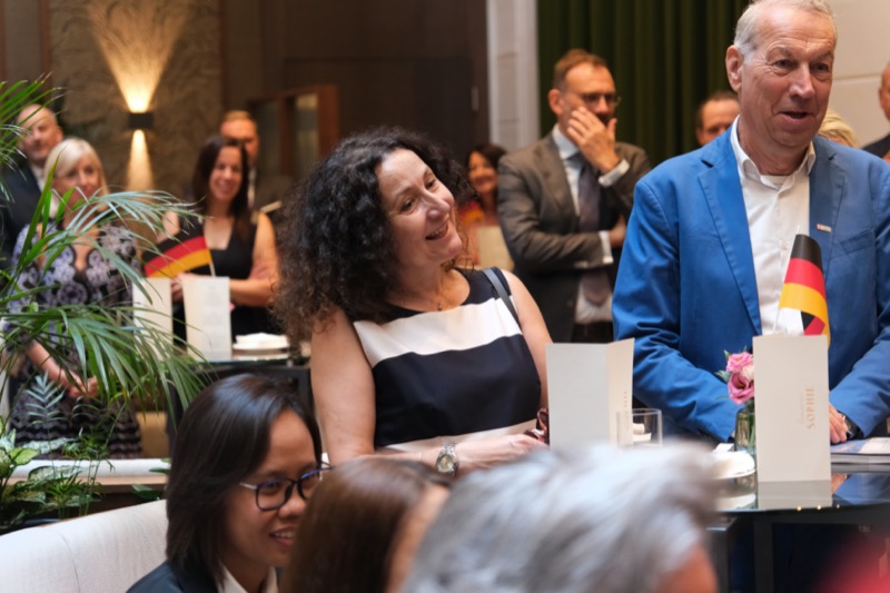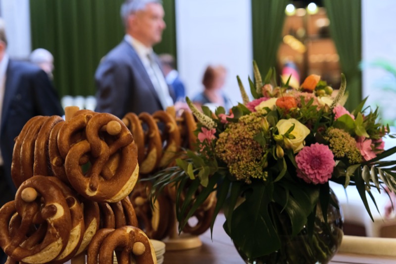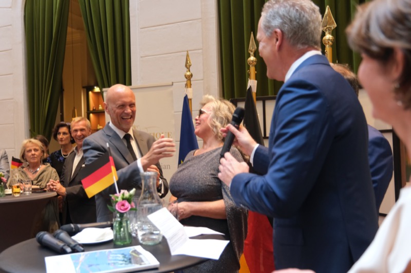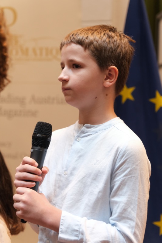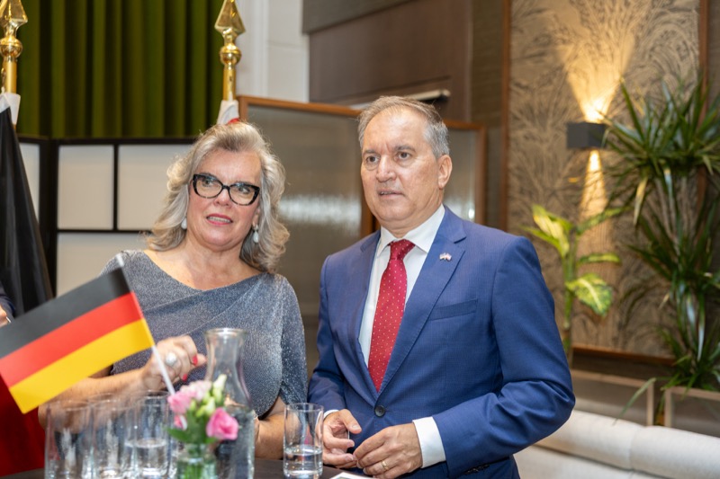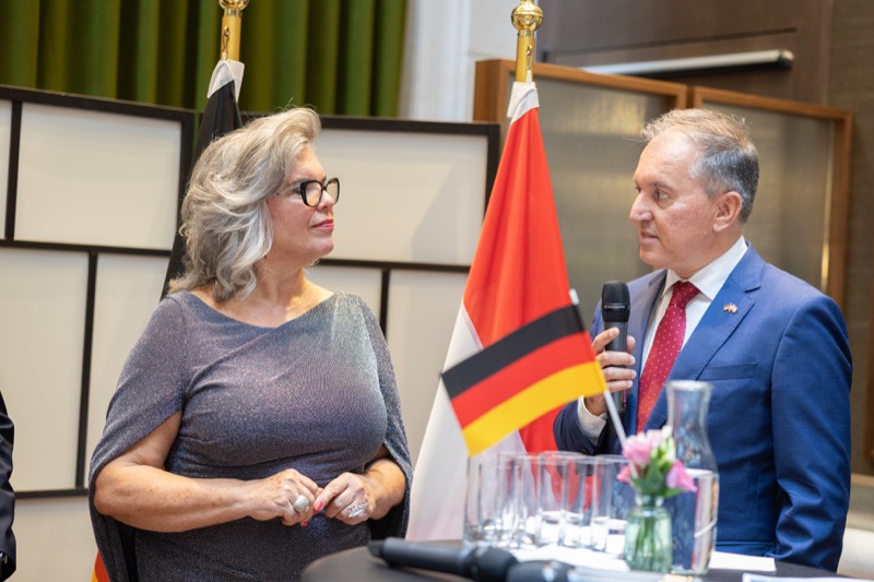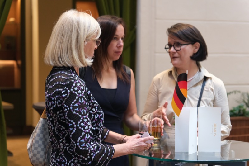Nach den Ansprachen und der Überreichung von Delikatessenkörben aus dem Hause Schenkel sowie den berühmten handgefertigten Pralinen von Altmann&Kühne an Botschafter Cecere und seine Gattin Bettina Bundszus-Cecere, wurden die Gäste noch mit einer musikalischen Darbietung dreier Schüler:innen der Musical Munchkins, einer internationalen Musikschule in Wien, überrascht und sogar zum Mitsingen animiert. Danach wurde noch bis in den späten Nachmittag hinein bei deutschen Spezialitäten wie Käsespätzle, Krustenbraten oder Bayerischer Creme im Glas und kühlen Drinks gefeiert.
