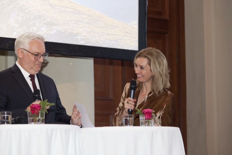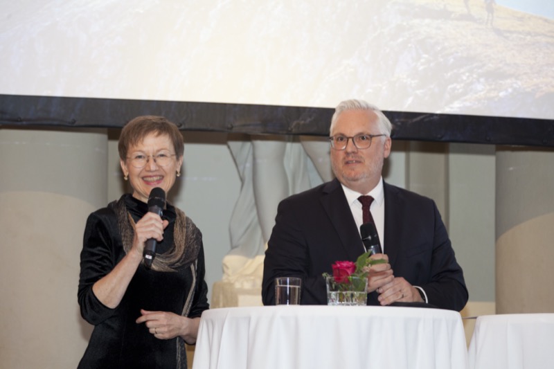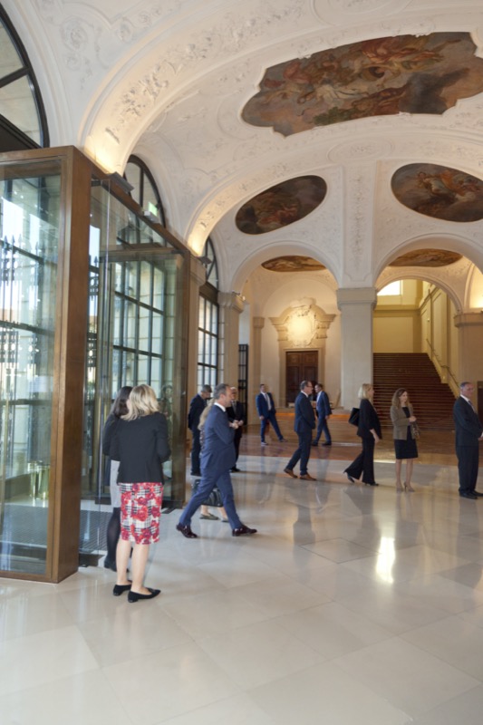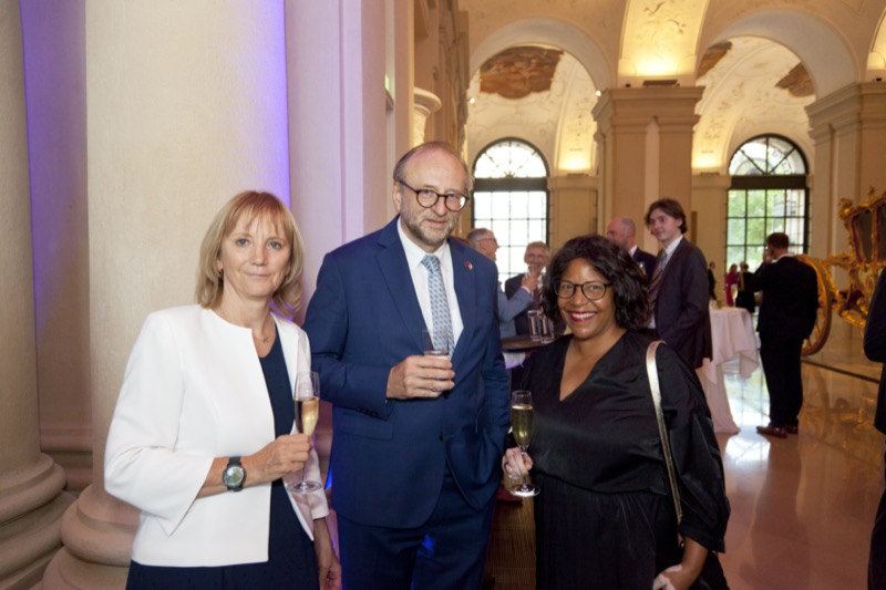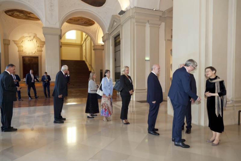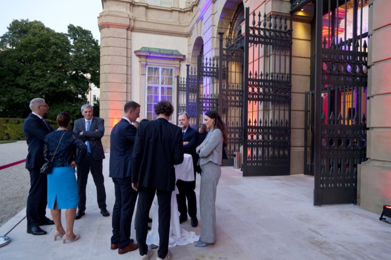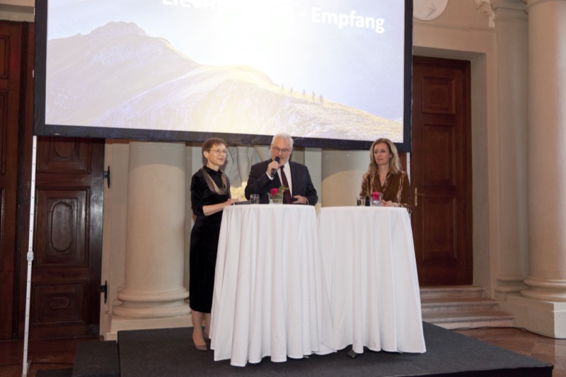 Der Botschafter des Fürstentums Liechtenstein in Österreich, S.E. Simon Arthur Biedermann, lud zu einem Empfang in das Gartenpalais Liechtenstein. Ehrengäste waren Brigitte Haas, Regierungschefin von Liechtenstein, und Sabine Monauni, stellvertretende Regierungschefin. Im Anschluss an die Begrüssungsworte und Ansprachen gab es eine Führung durch das Gartenpalais Liechtenstein.
