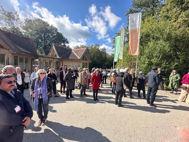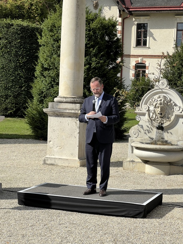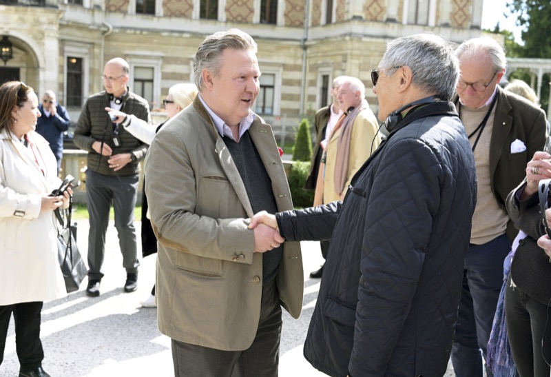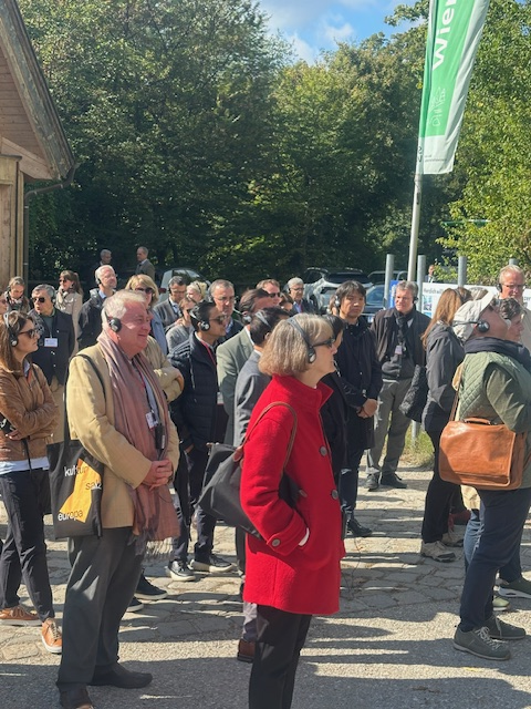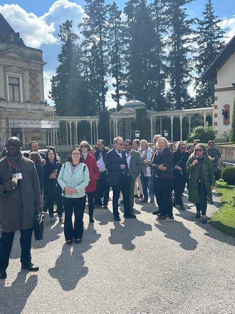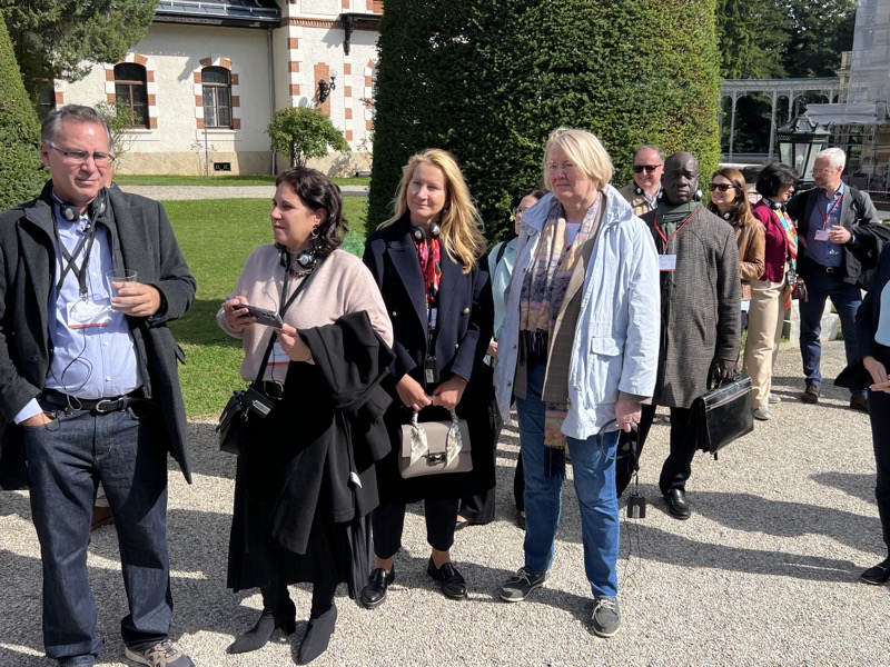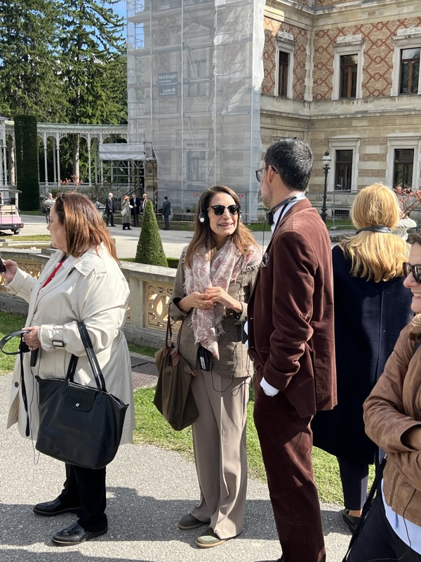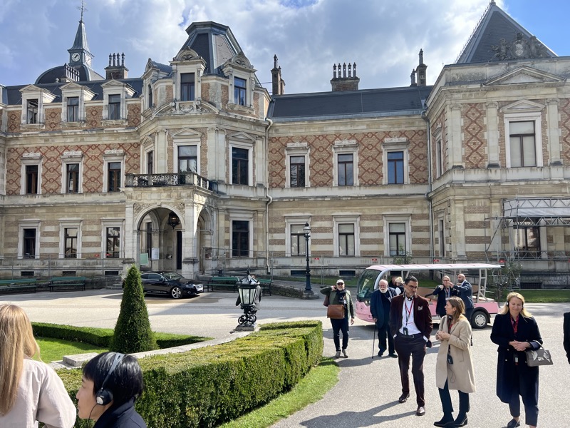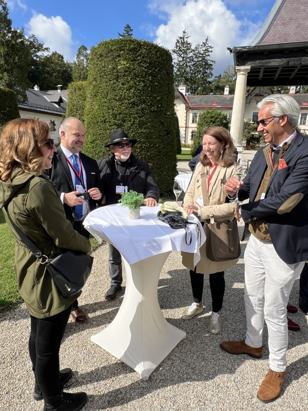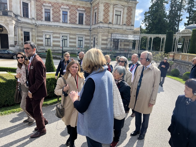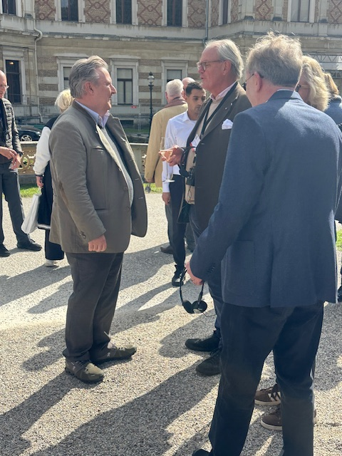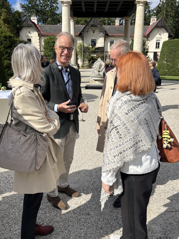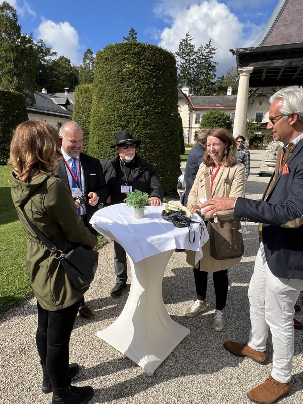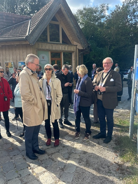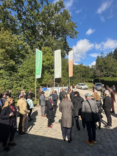 Nach Besichtigungen des Wasserturms bzw. der Biotop City Wienerberg ging es in den Lainzer Tiergarten, wo die Teilnehmer nach einem kurzen Spaziergang, geführt von Petra Wagner, Forstdirektorin der Stadt Wien, bei der Hermesvilla eintrafen. Nach der Begrüßung durch den Wiener Landeshauptmann und Bürgermeister Michael Ludwig sowie Staatssekretär Sepp Schellhorn sowie einer launigen Ansprache des Apostolischen Nuntius, S.E. Herr Erzbischof Pedro LOPEZ QUINTANA, ging es zum Mittagessen.