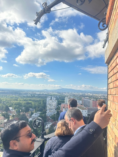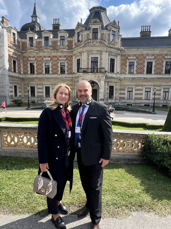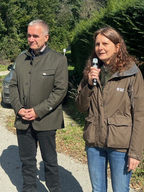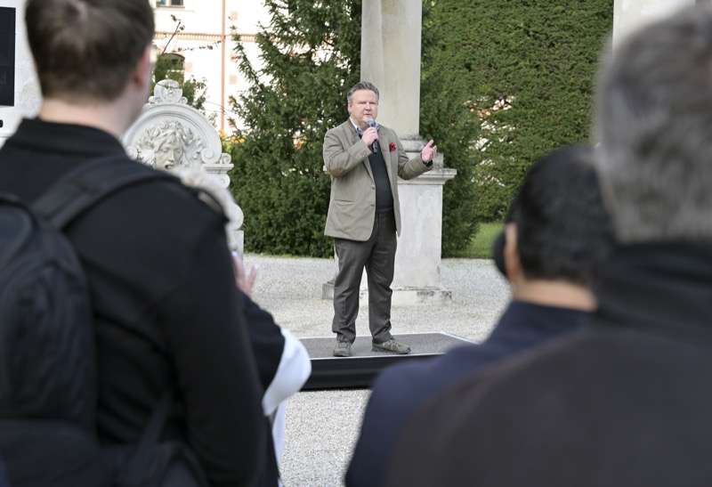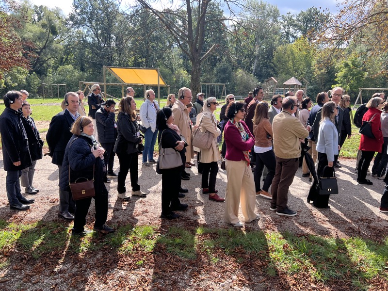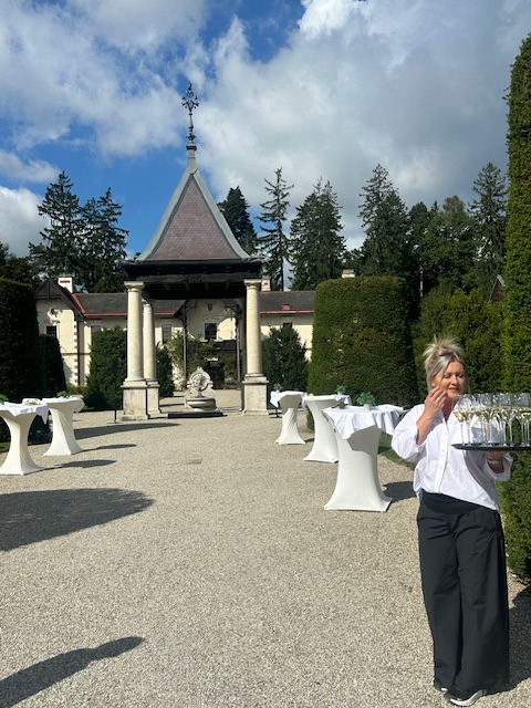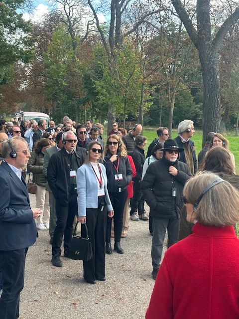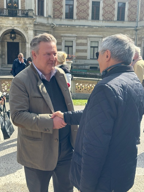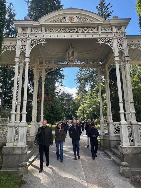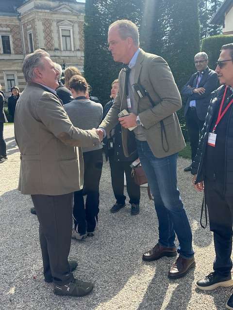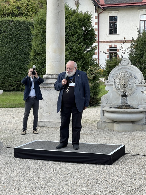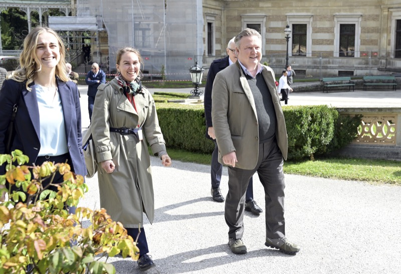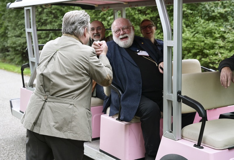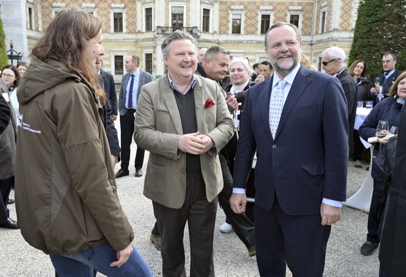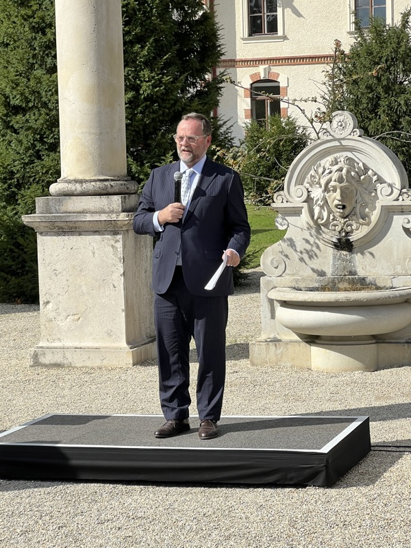 Nach Besichtigungen des Wasserturms bzw. der Biotop City Wienerberg ging es in den Lainzer Tiergarten, wo die Teilnehmer nach einem kurzen Spaziergang, geführt von Petra Wagner, Forstdirektorin der Stadt Wien, bei der Hermesvilla eintrafen. Nach der Begrüßung durch den Wiener Landeshauptmann und Bürgermeister Michael Ludwig sowie Staatssekretär Sepp Schellhorn sowie einer launigen Ansprache des Apostolischen Nuntius, S.E. Herr Erzbischof Pedro LOPEZ QUINTANA, ging es zum Mittagessen.