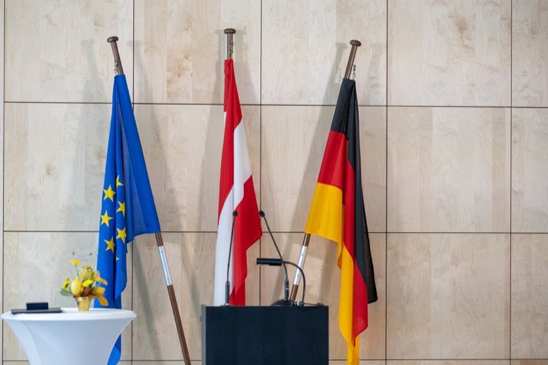 Der Botschafter der Bundesrepublik Deutschland in Österreich, S.E. Vito Cecere, die Botschafterin bei der OSZE, I.E. Susanne Schütz, und der Botschafter bei den Vereinten Nationen, S.E. Rüdiger Bohn, luden anlässlich der Eröffnung der Deutschen Botschaft durch den Präsidenten der Bundesrepublik Deutschland Frank-Walter Steinmeier und von Frau Elke Büdenbender, zu einem Empfang in die Botschaft.