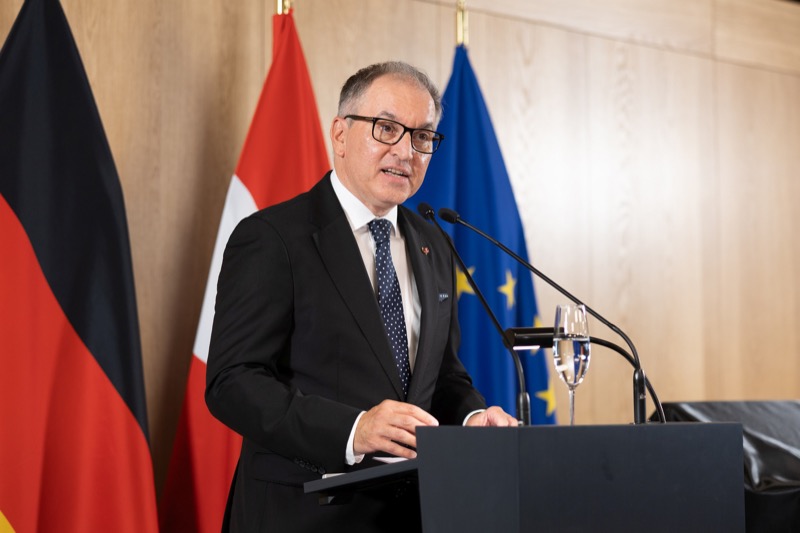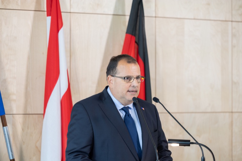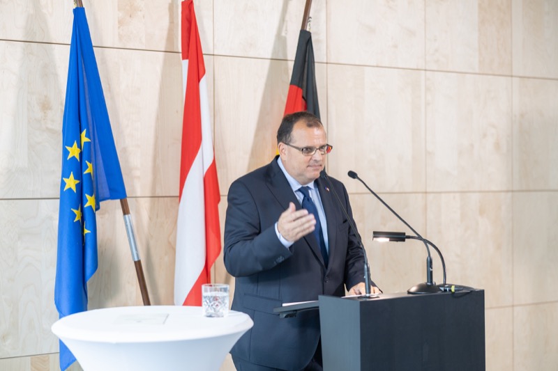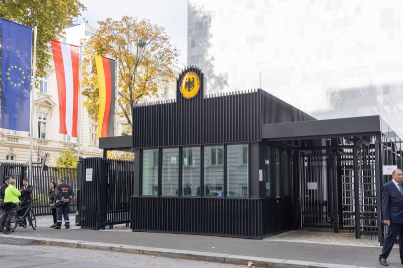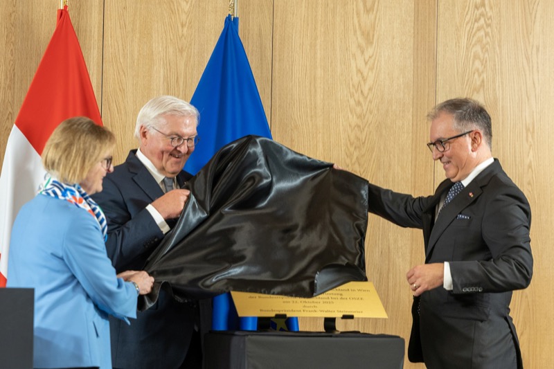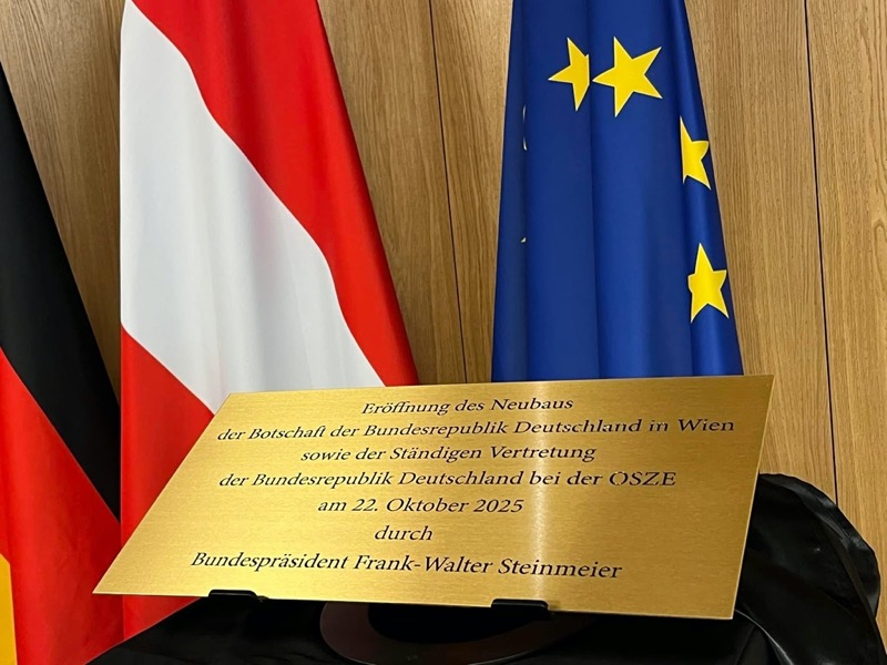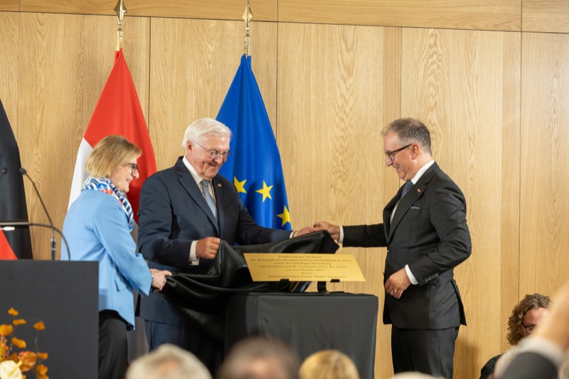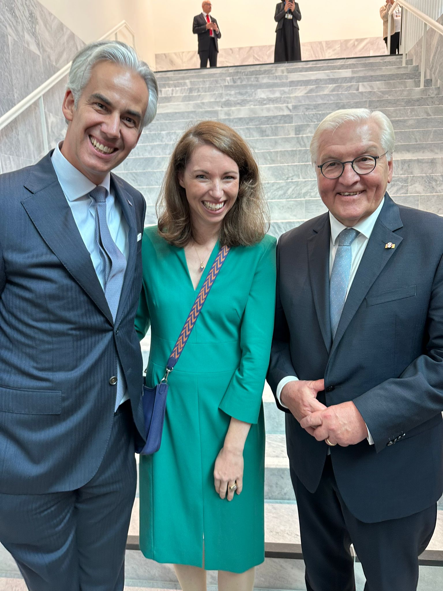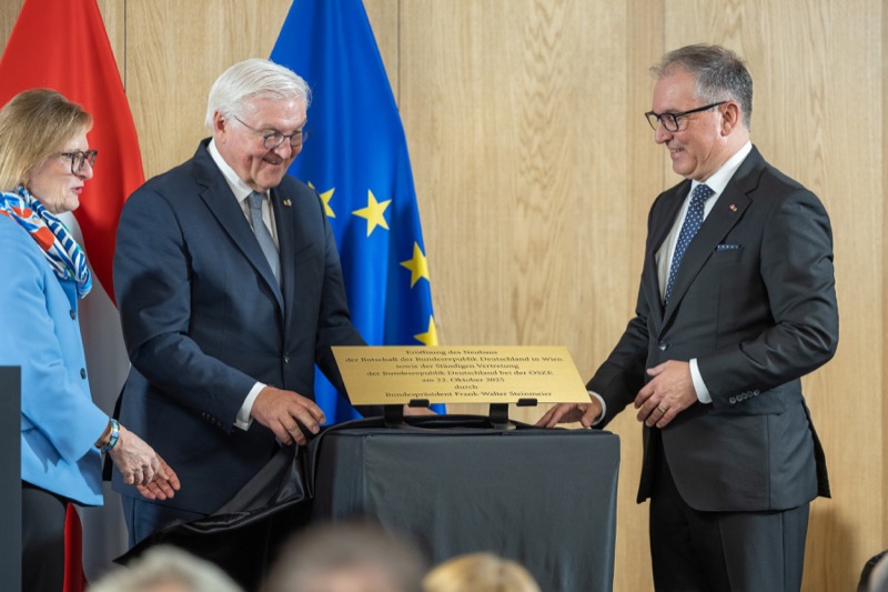 Der Botschafter der Bundesrepublik Deutschland in Österreich, S.E. Vito Cecere, die Botschafterin bei der OSZE, I.E. Susanne Schütz, und der Botschafter bei den Vereinten Nationen, S.E. Rüdiger Bohn, luden anlässlich der Eröffnung der Deutschen Botschaft durch den Präsidenten der Bundesrepublik Deutschland Frank-Walter Steinmeier und von Frau Elke Büdenbender, zu einem Empfang in die Botschaft. CERCLE DIPLOMATIQUE mit der aktuellen Coverstory Bundesrepublik Deutschland wird an die hochkarätigen Gäste ausgeteilt.