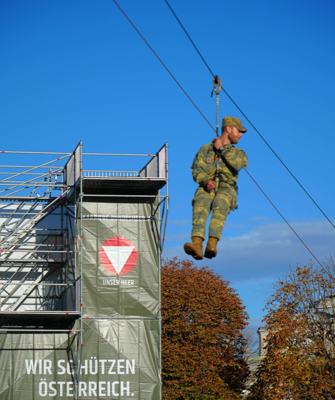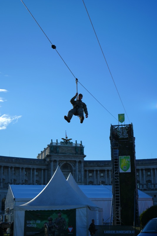 Anschließend feierte das Bundesheer den Nationalfeiertag mit einer großen Leistungsschau in der Wiener Innenstadt. Auf dem Heldenplatz und an weiteren Standorten zeigten Soldaten modernstes Gerät, Einsatzbereitschaft und neue interaktive Angebote. Höhepunkt war die feierliche Angelobung von über 1.000 Rekruten vor den Ehrengästen und tausenden Besuchern.