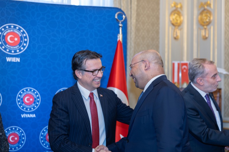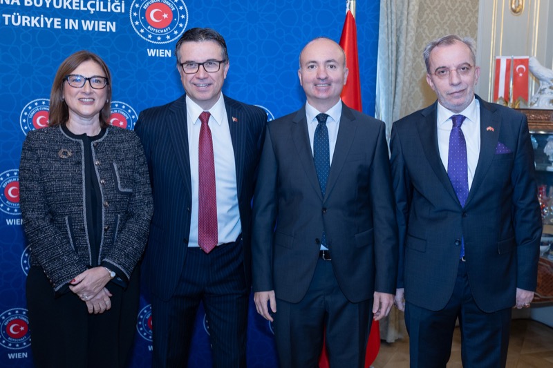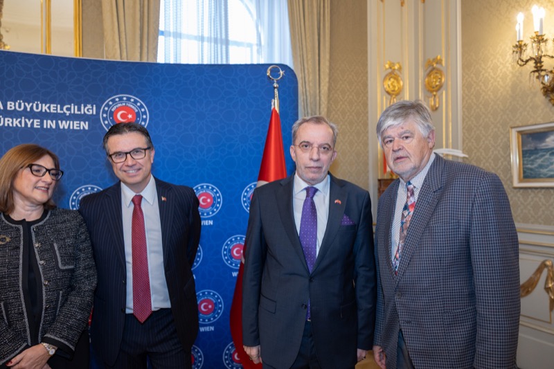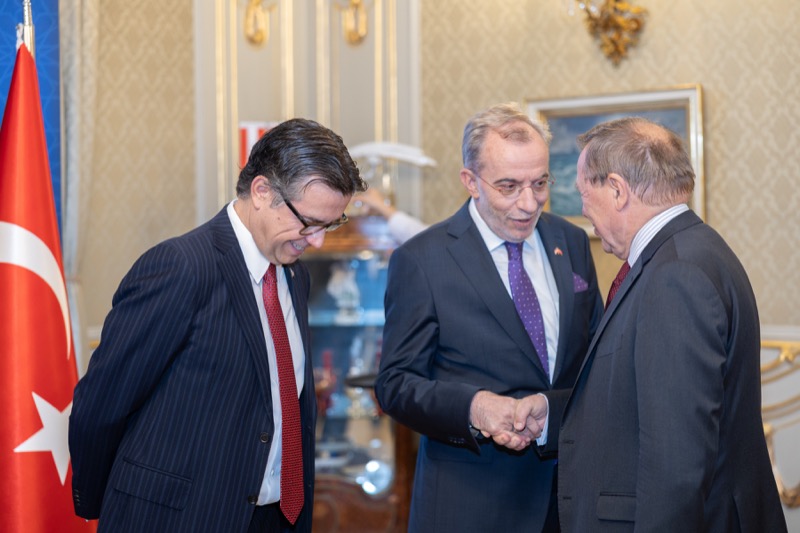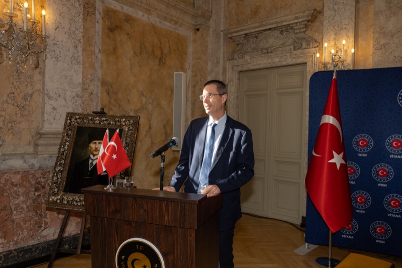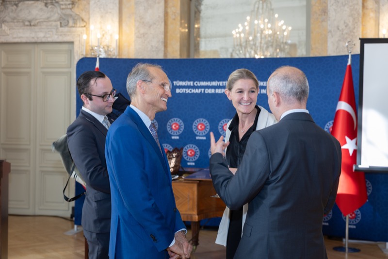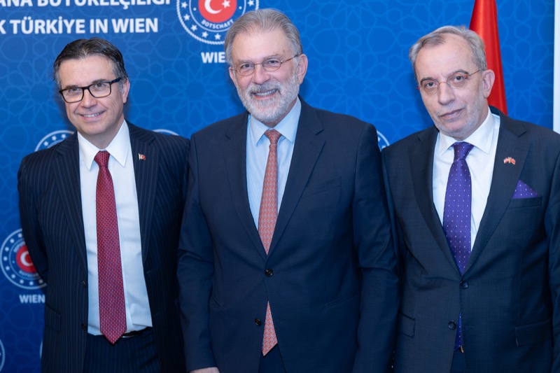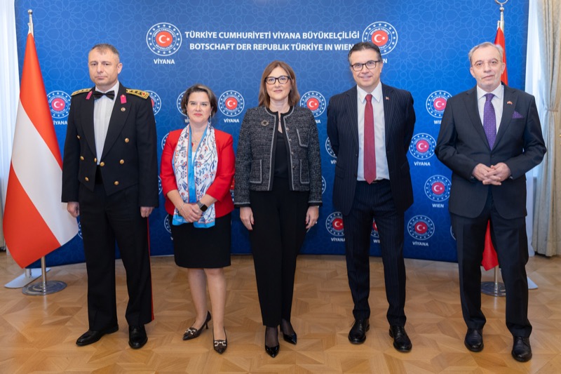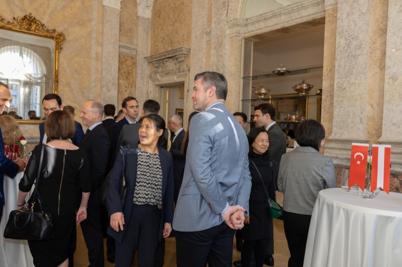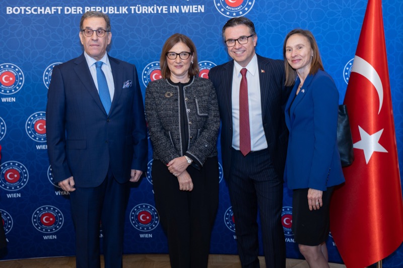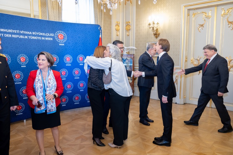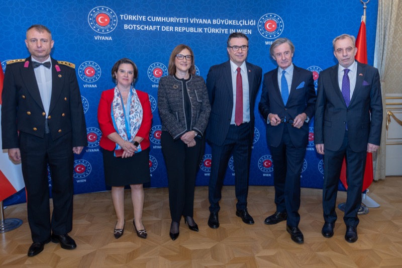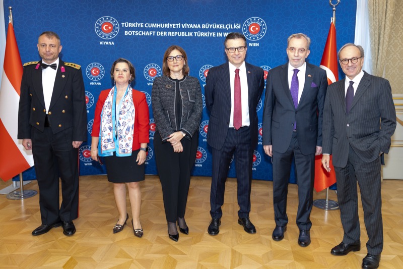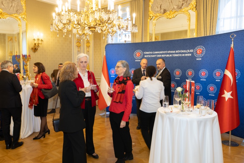 Der Botschafter der Republik Türkiye in Österreich, S.E. Gürsel Dönmez, der ständige Vertreter der Republik Türkiye bei den Vereinten Nationen, S.E. Levent Eler, und die ständige Vertreterin bei der OSCE, I.E. Zeynep Kiziltan, luden anlässlich des Nationalfeiertages der Republik Türkiye zu einem Empfang in die Botschaft.