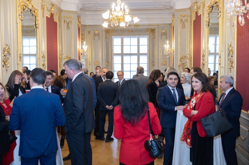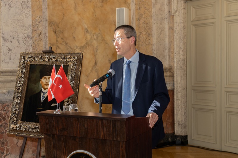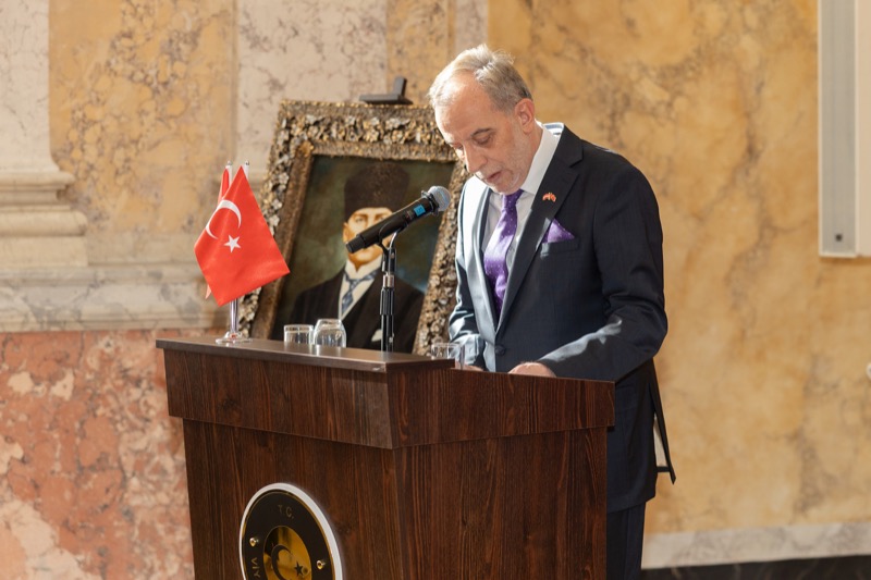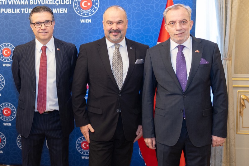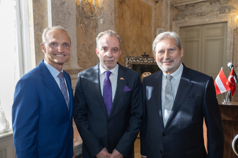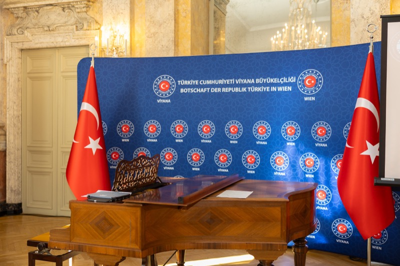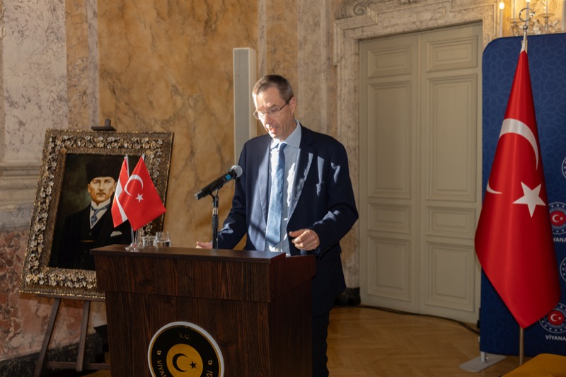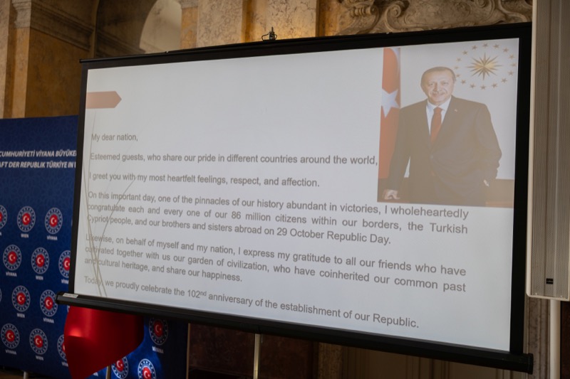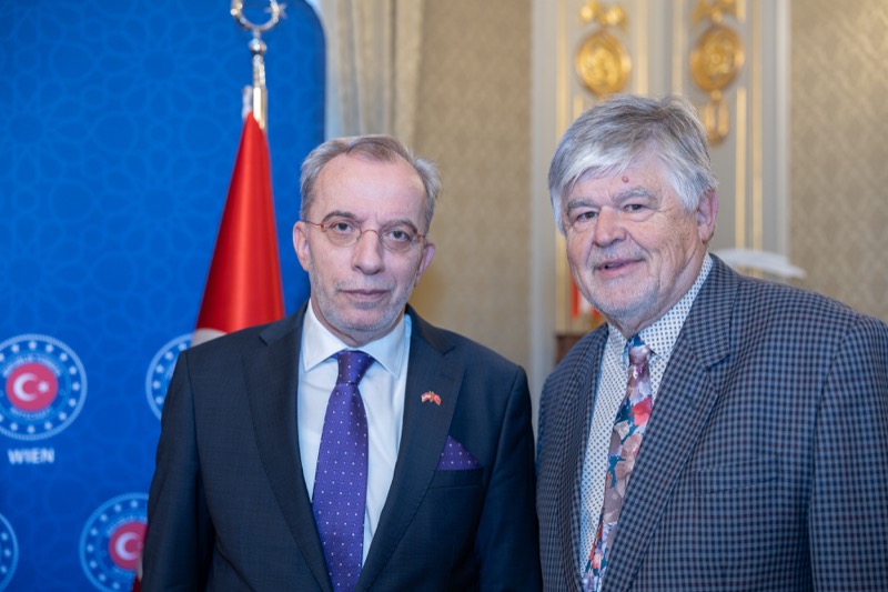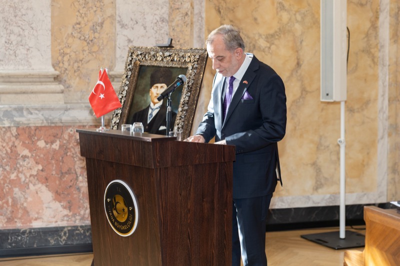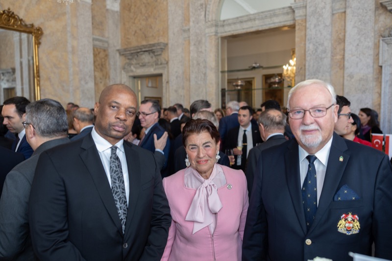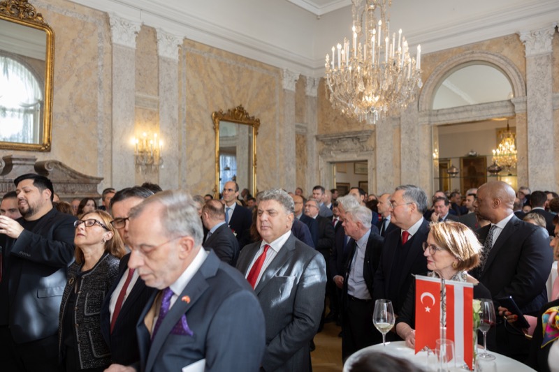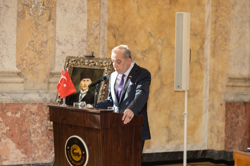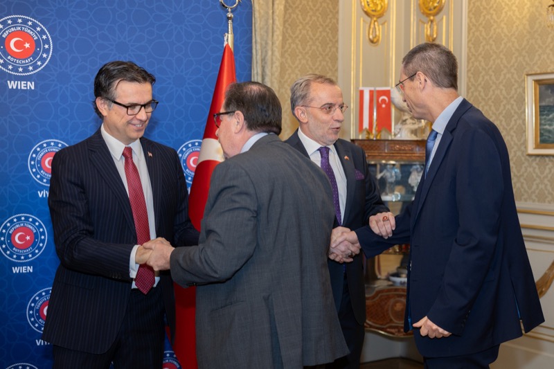 Der Botschafter der Republik Türkiye in Österreich, S.E. Gürsel Dönmez, der ständige Vertreter der Republik Türkiye bei den Vereinten Nationen, S.E. Levent Eler, und die ständige Vertreterin bei der OSCE, I.E. Zeynep Kiziltan, luden anlässlich des Nationalfeiertages der Republik Türkiye zu einem Empfang in die Botschaft.