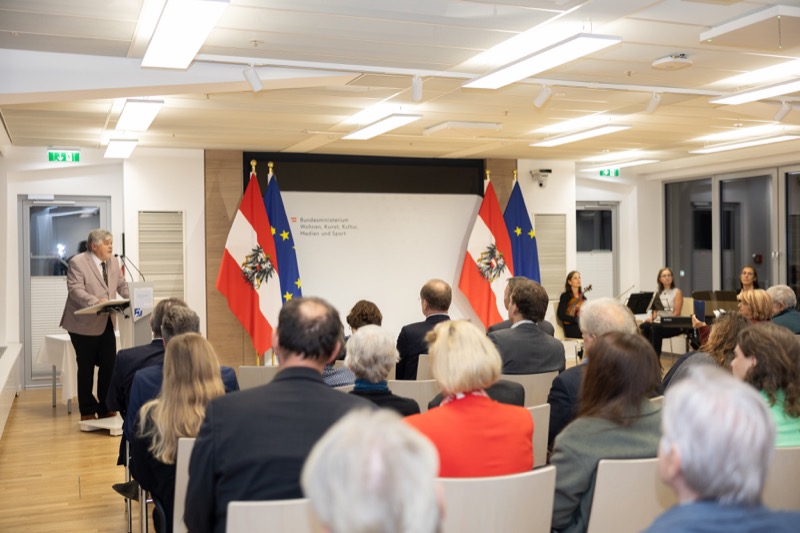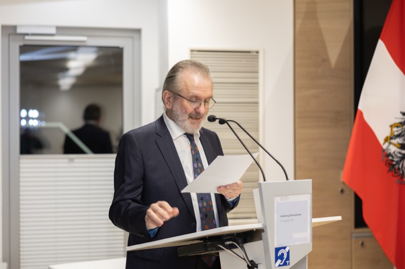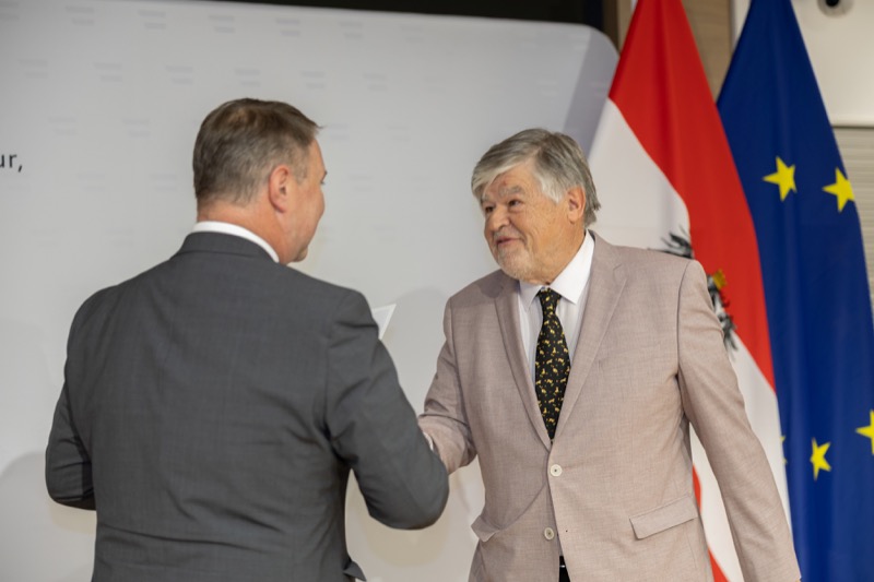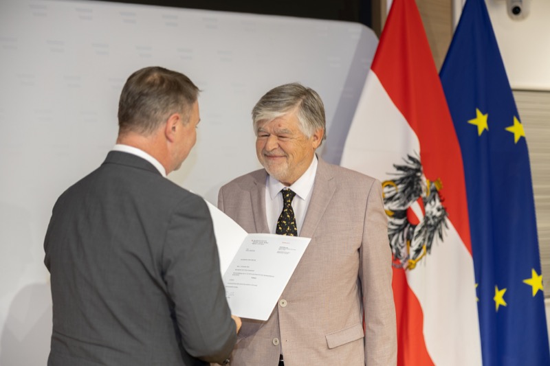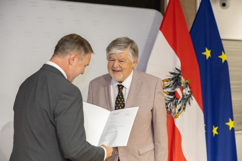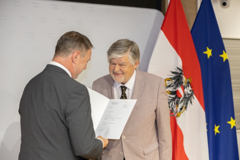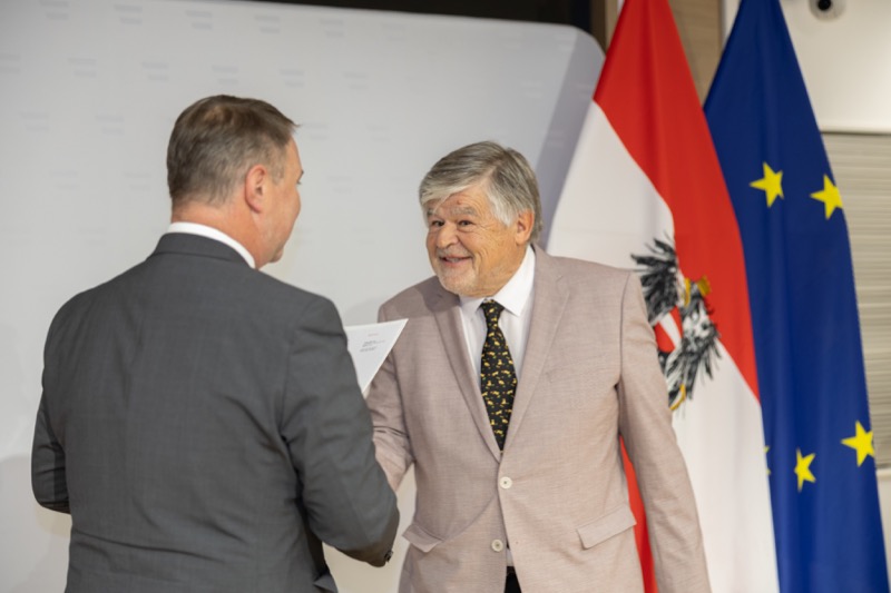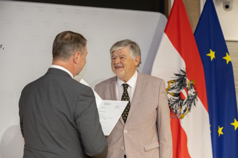 "Sie haben Österreich über lange Zeit einem sehr breiten Publikum Europa erklären müssen", würdigte Vizekanzler und Medienminister Andreas Babler Lahodynskys Engagement bei einem Festakt in Wien.