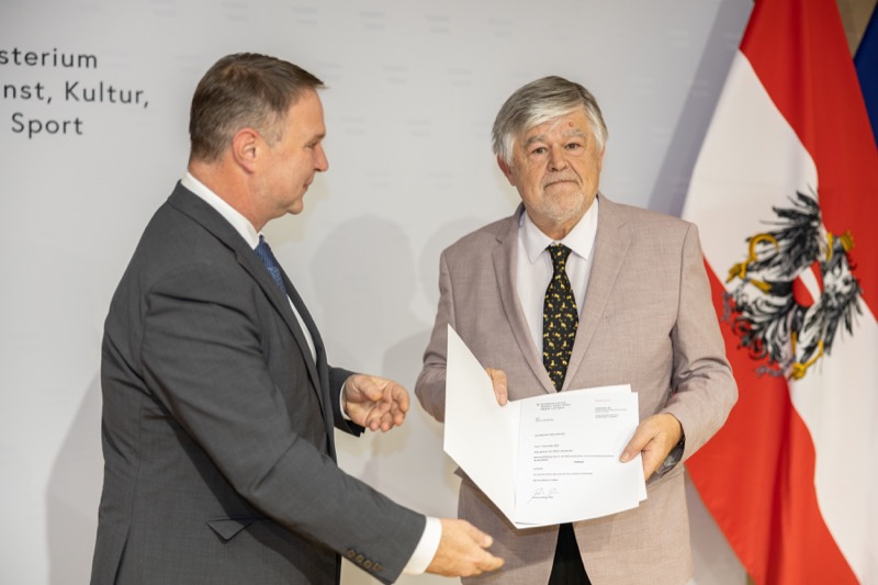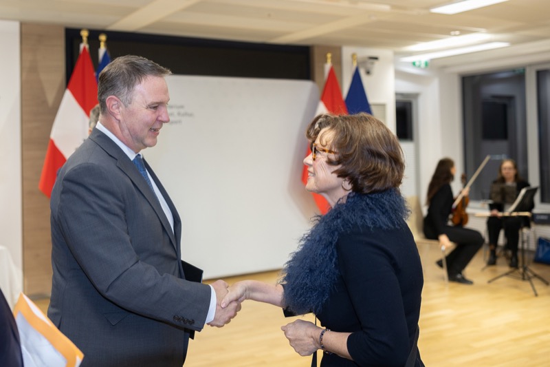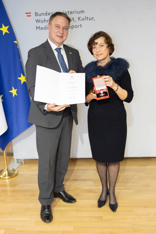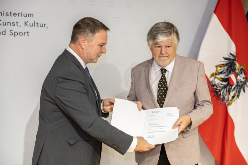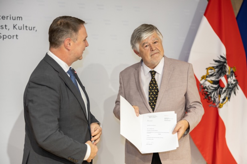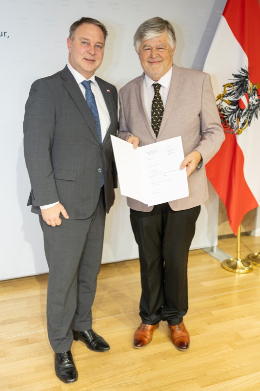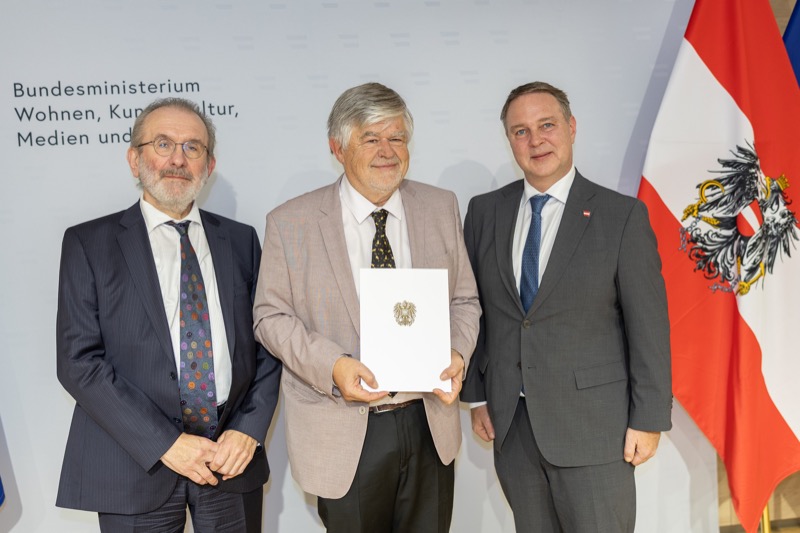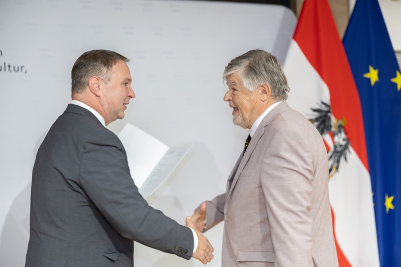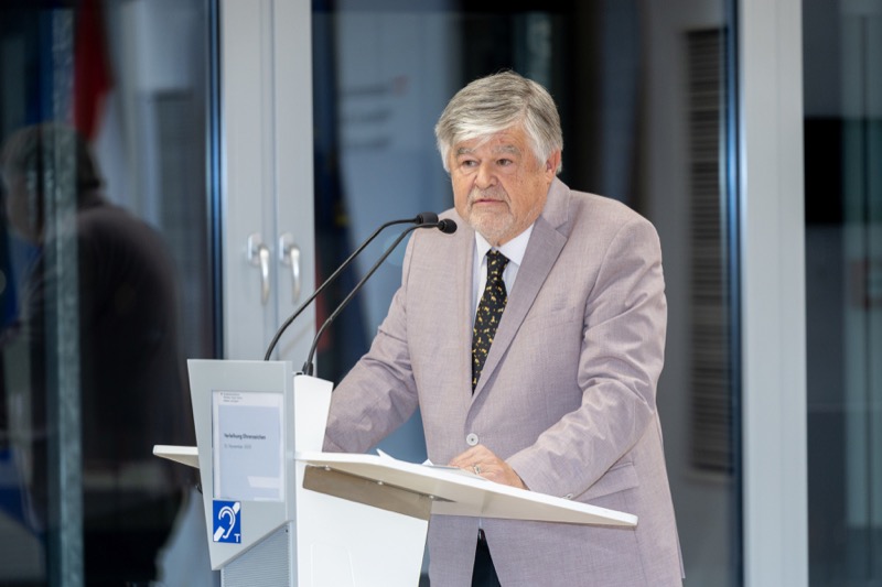"Sie haben Österreich über lange Zeit einem sehr breiten Publikum Europa erklären müssen", würdigte Vizekanzler und Medienminister Andreas Babler Lahodynskys Engagement bei einem Festakt in Wien.