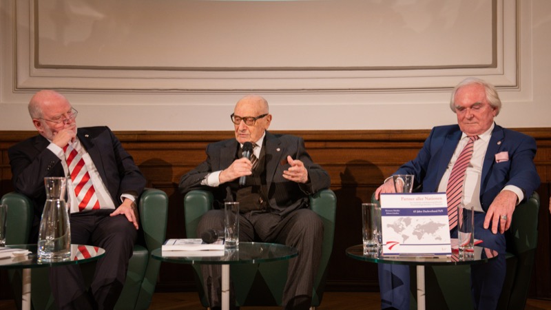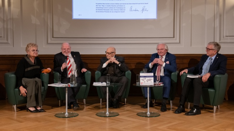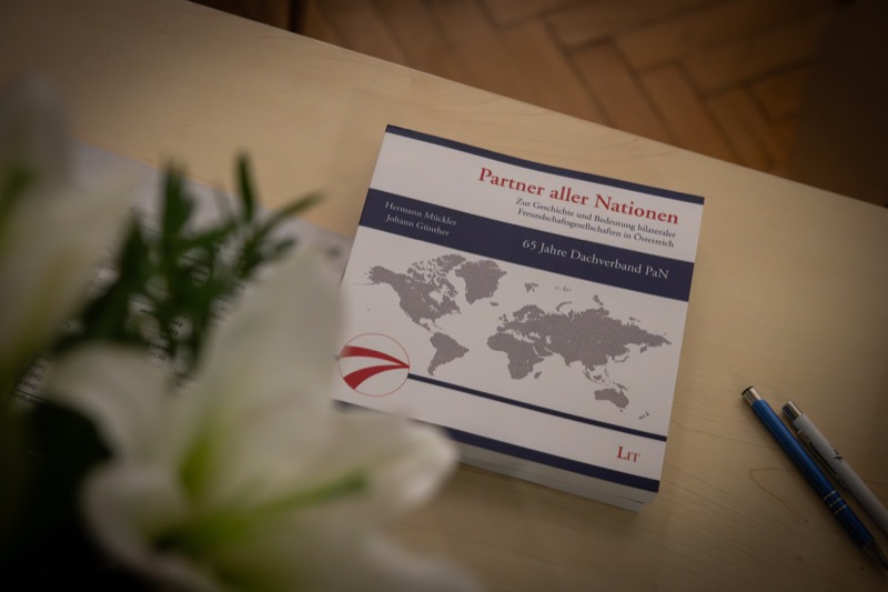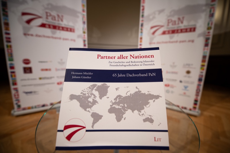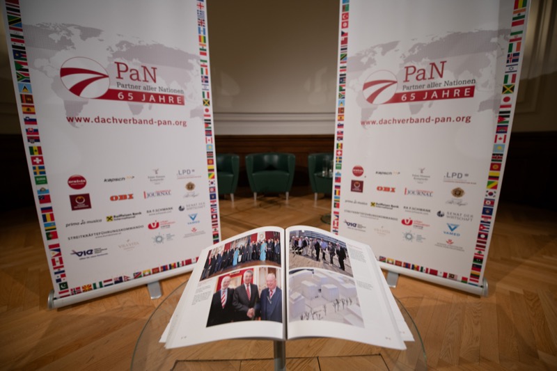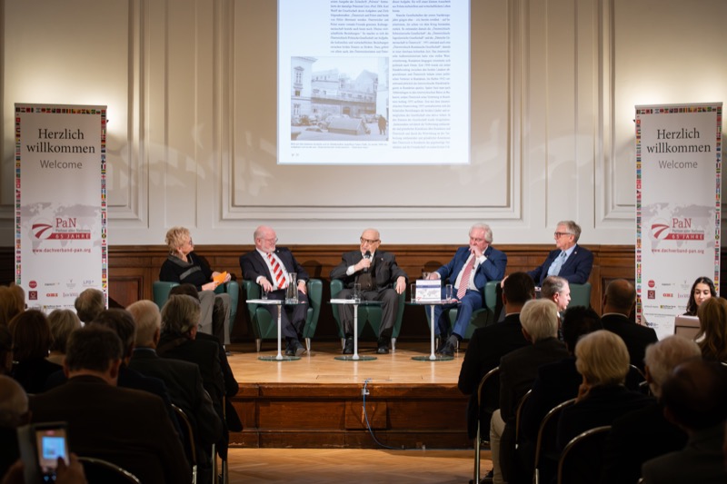 Der Dachverband aller österreichisch-ausländischen Gesellschaften – PaN lud zur Präsentation der PaN-Chronik »65 Jahre Dachverband-PaN« in die Albert Hall in Wien mit den Autoren PaN-Präsident Univ.-Prof. Dr. Hermann Mückler und Prof. Dr. Johann Günther sowie dem Zeitzeugen der Gründung Prof. Dr. Theodor Kanitzer, jahrzehntelanger Präsident der Österreichisch-Polnischen Gesellschaft, moderiert von der ehemaligen ORF-Burgenland-Moderatorin Doris Wagner.