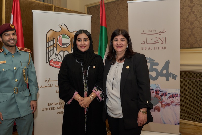 Anlässlich des 54. Eid Al Etihad der Vereinigten Arabischen Emirate, das dieses Jahr unter dem Motto „United“ gefeiert wird, lud die Chargé d'Affaires a.i. der Botschaft der Vereinigten Arabischen Emirate in Wien, Frau Shaikha Alkaabi, zu einem Empfang in das Grand Hotel Wien. Die sieben Emirate schlossen sich am 2. Dezember 1971 unter einer Flagge zu den Vereinigten Arabischen Emiraten zusammen.